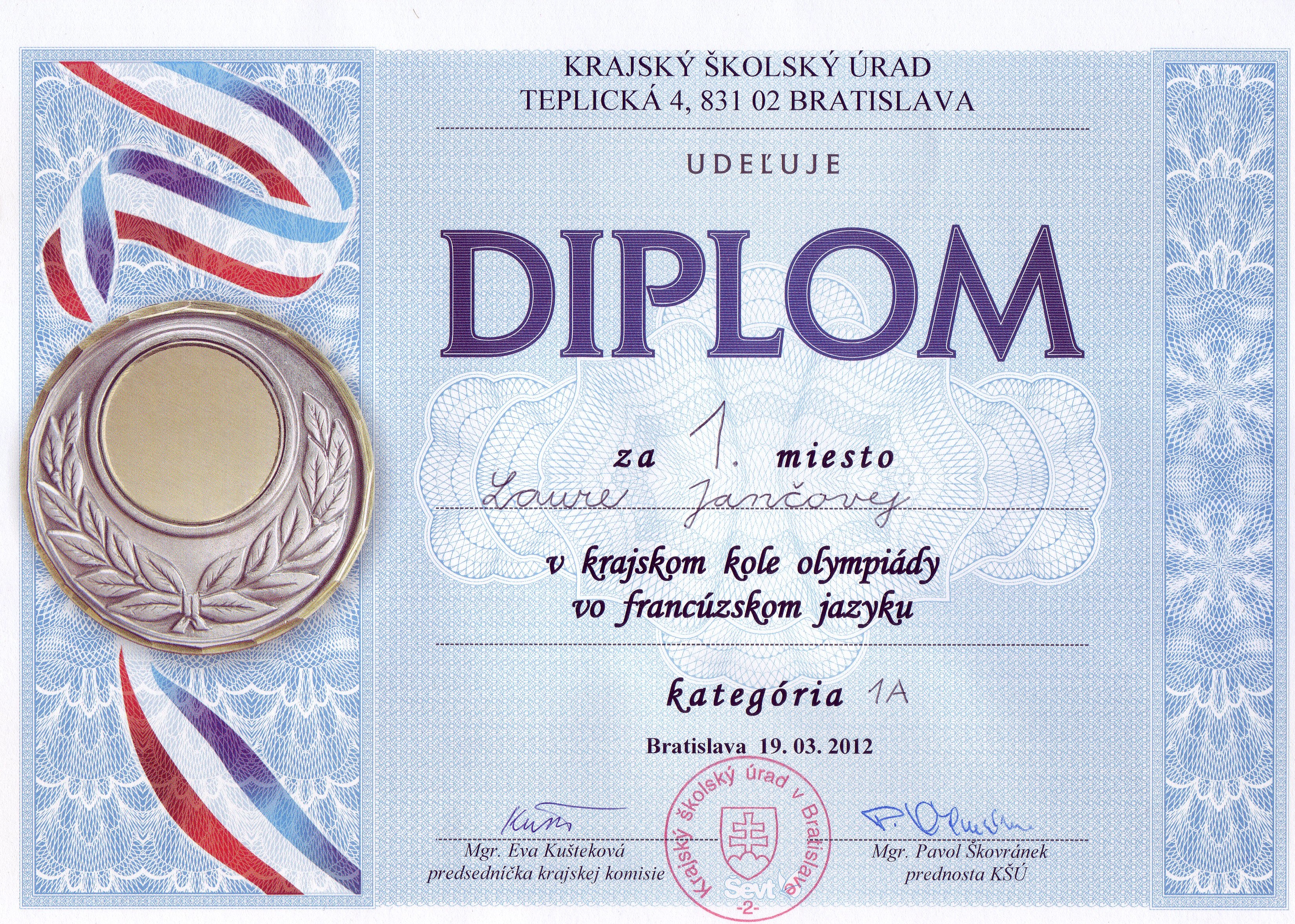 Úspechy Nezaradené 12. 12. 2016Školské kolo Olympiády vo francúzskom jazyku sa uskutočnilo v posledný predvianočný týždeň. Žiaci súťažili v 3 kategóriách.Výsledky: 1. miesto v kategórii 1A - Sofia Anna Šebestová, 1. miesto v kategórii 1 B - Alona Rubanová, 1. miesto v kategórii 1 C - Hadrien De Jaegher. Víťazi postupujú do krajského kola, ktoré ... čítať ďalej