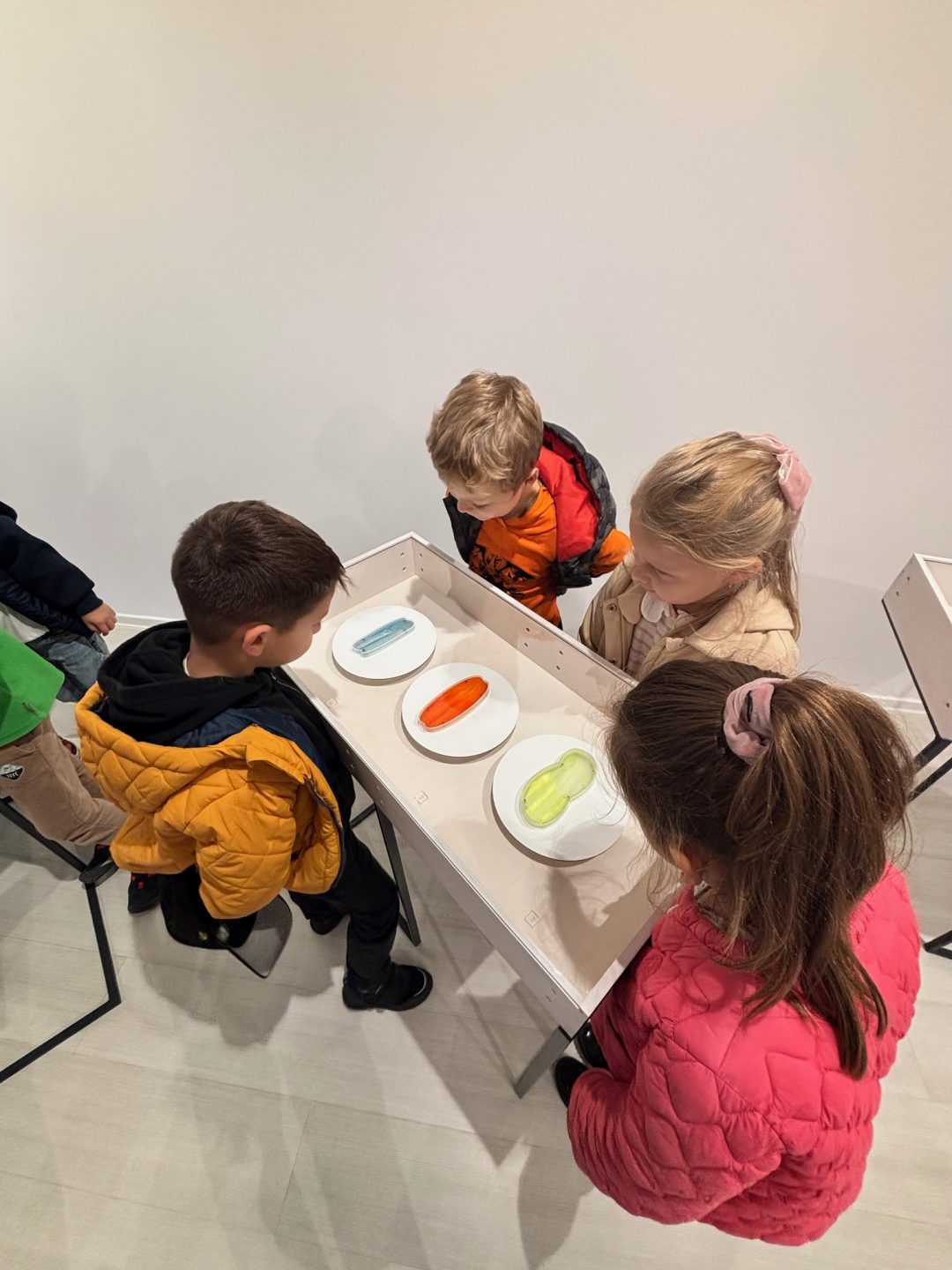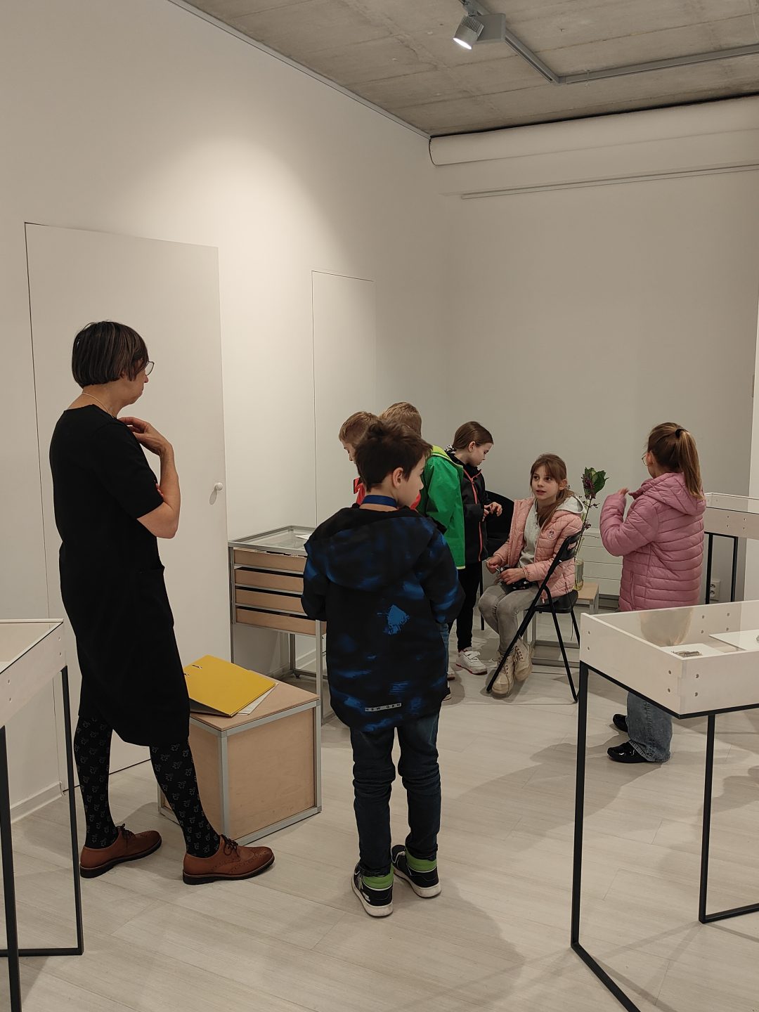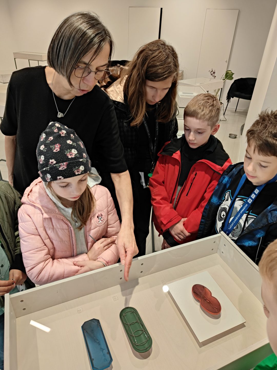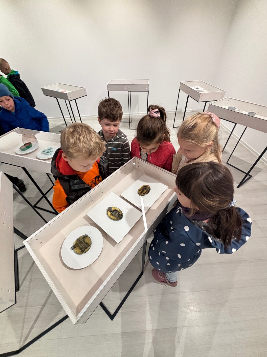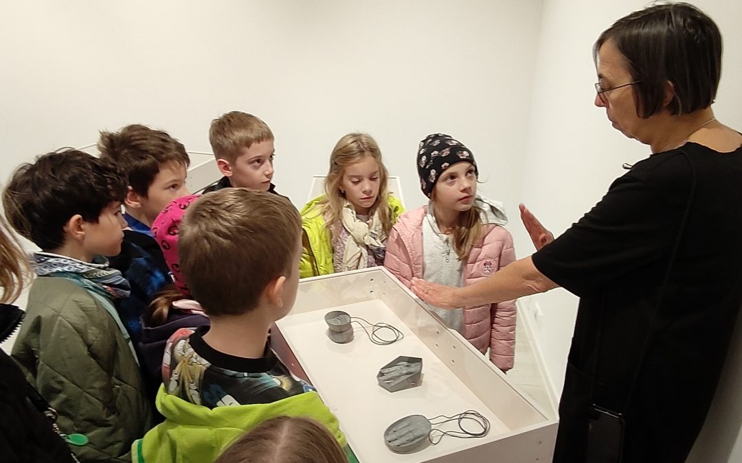 Podujatie najprv 17.10.2024 navštívili žiaci z krúžku Malí a veľkí umelci, ktorí okrem prehliadky absolvovali aj prednášku o vystavených objektoch, použitých materiáloch a technikách.