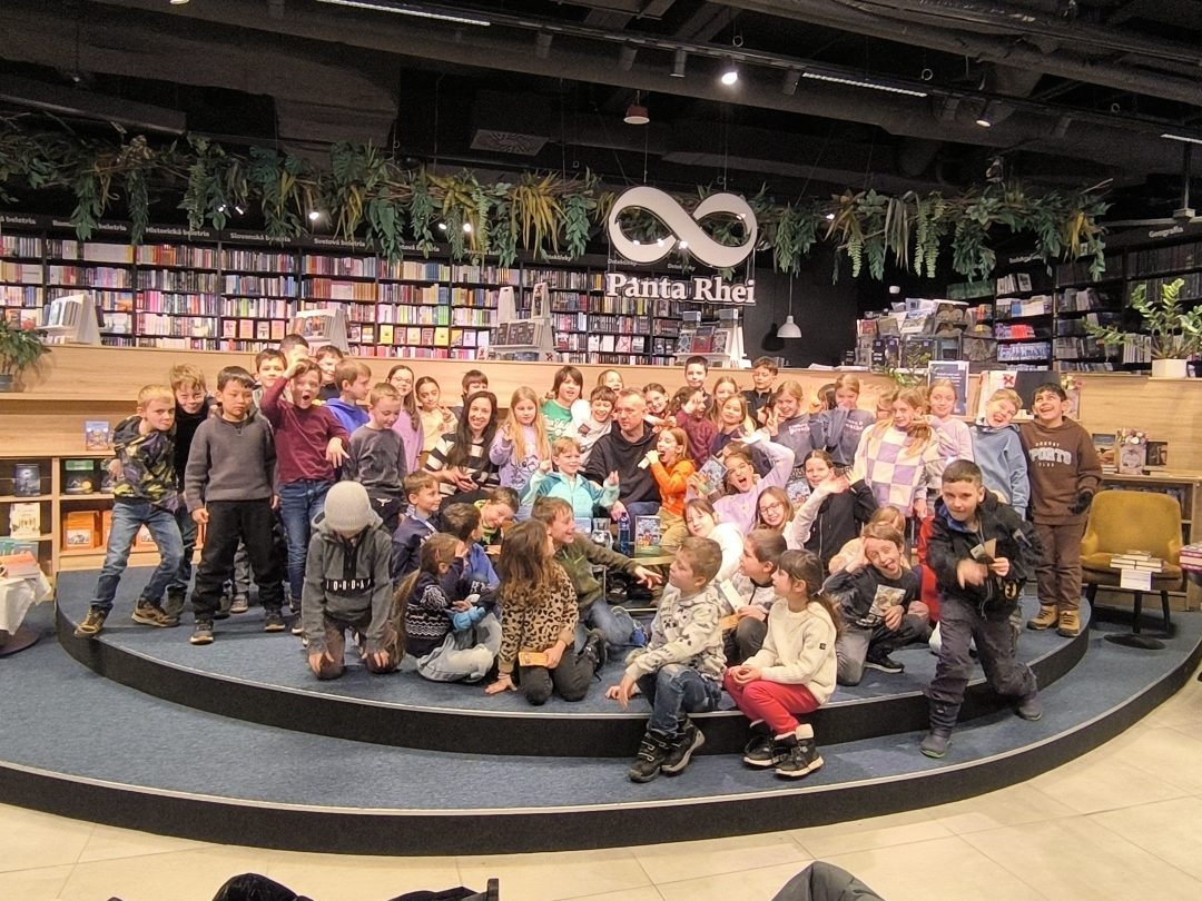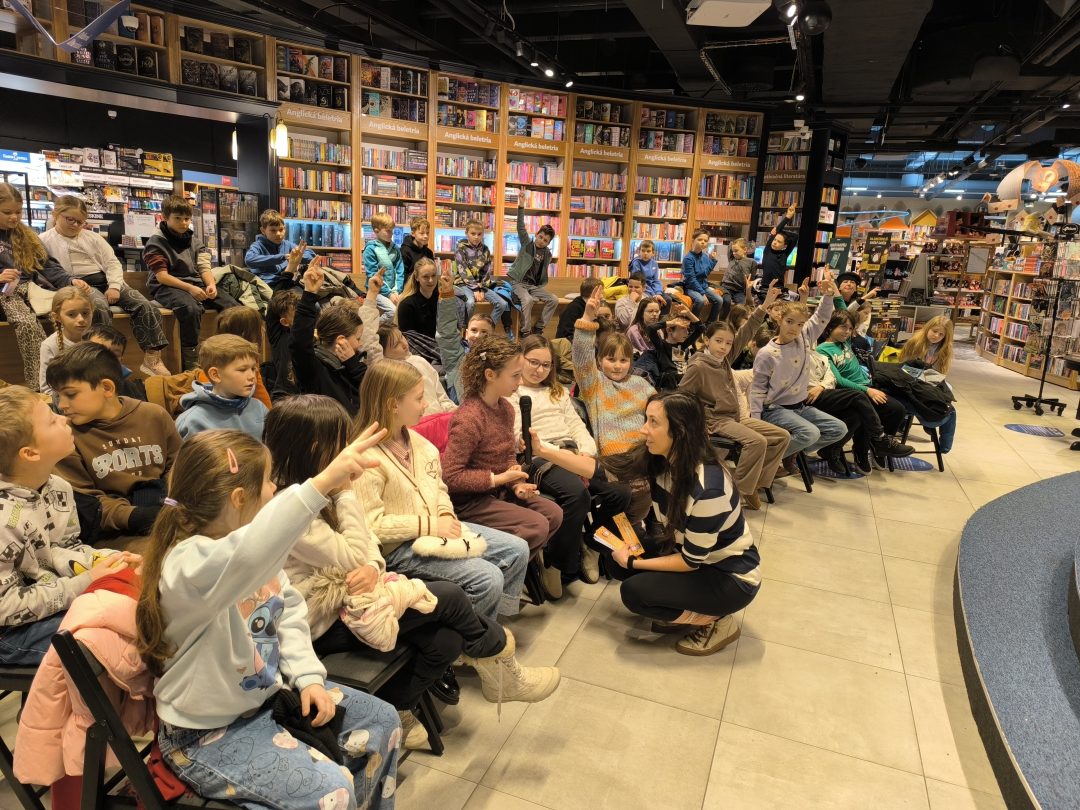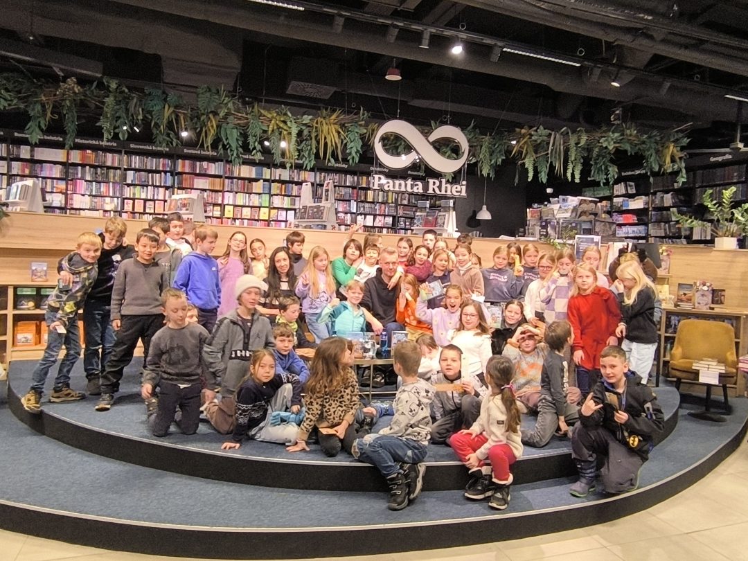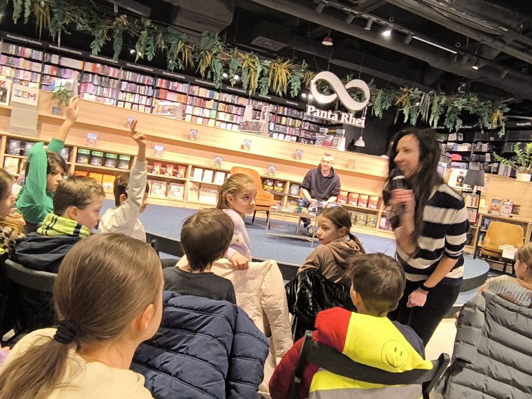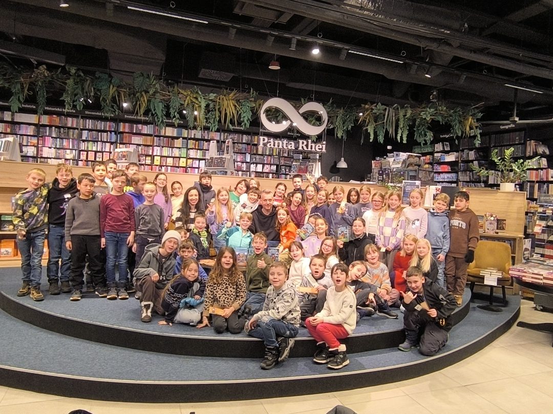 V stredu, 21.1.2026, sa tretiaci a druháci zúčastnili v Panta Rhei v Auparku na besede s pánom vychovávateľom. Besedu moderovala Veronika Sebechlebská a dávala mu otázky o tom, ako vznikal príbeh a kde čerpal inšpiráciu.