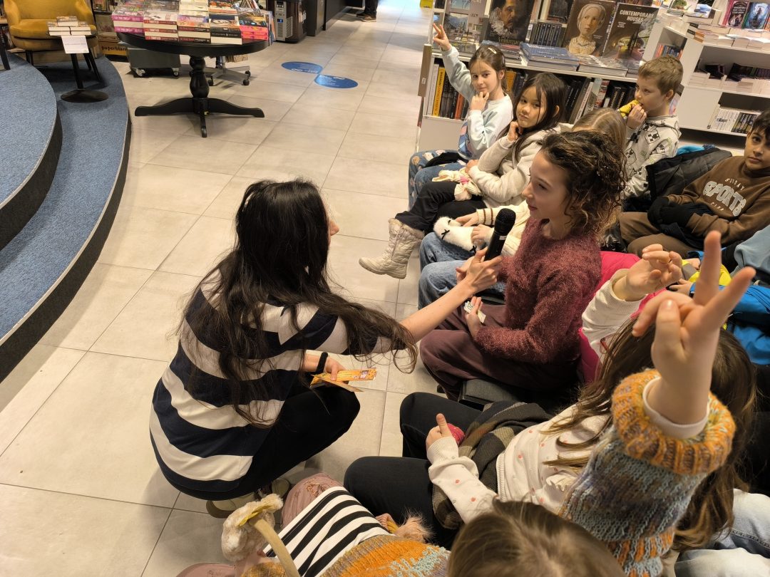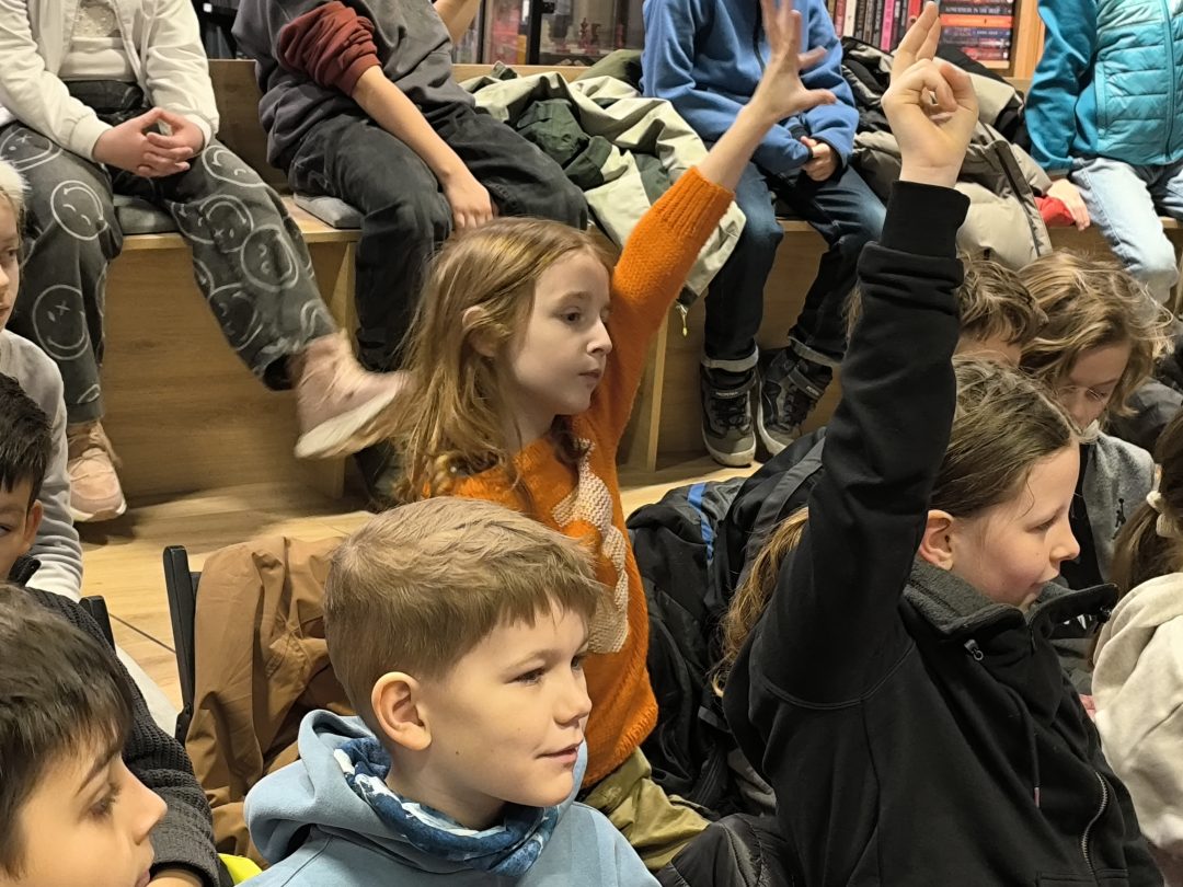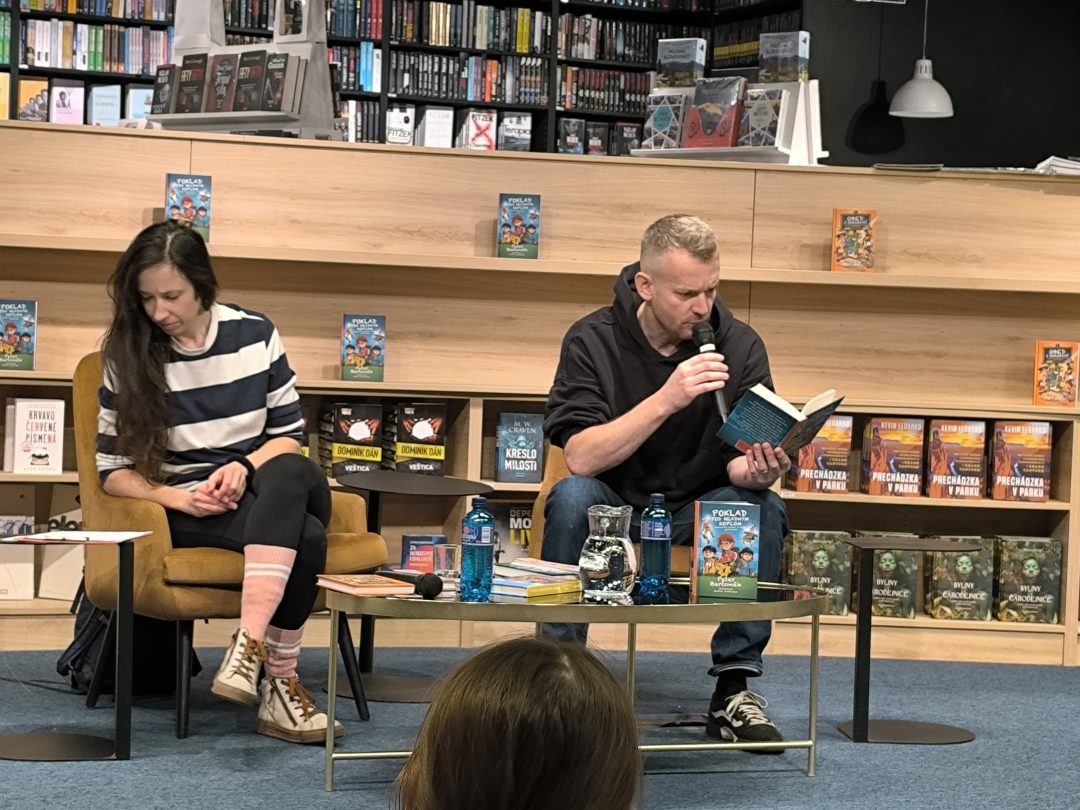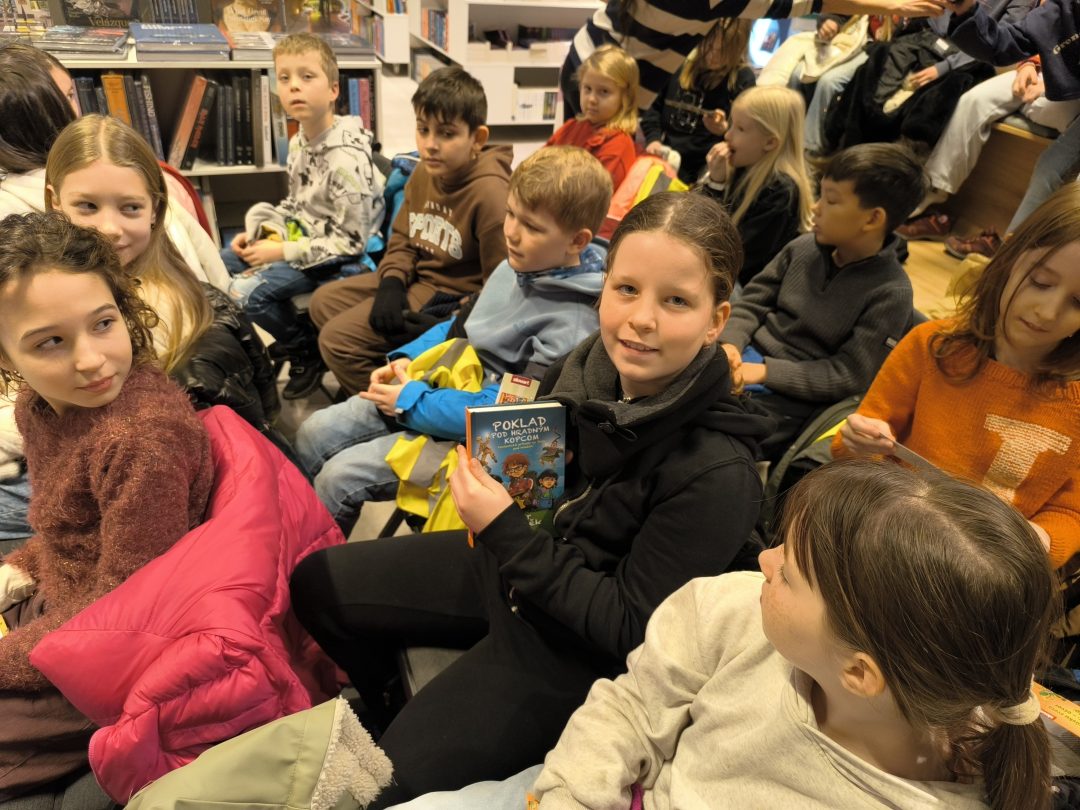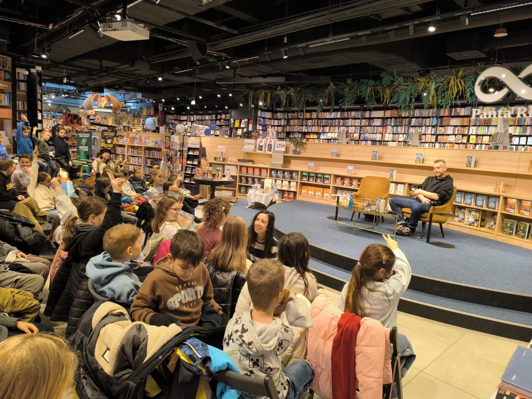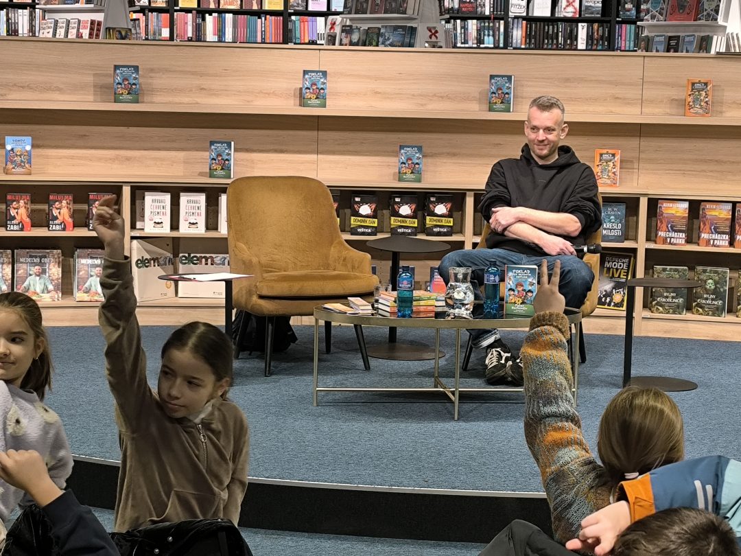 V stredu, 21.1.2026, sa tretiaci a druháci zúčastnili v Panta Rhei v Auparku na besede s pánom vychovávateľom. Besedu moderovala Veronika Sebechlebská a dávala mu otázky o tom, ako vznikal príbeh a kde čerpal inšpiráciu.