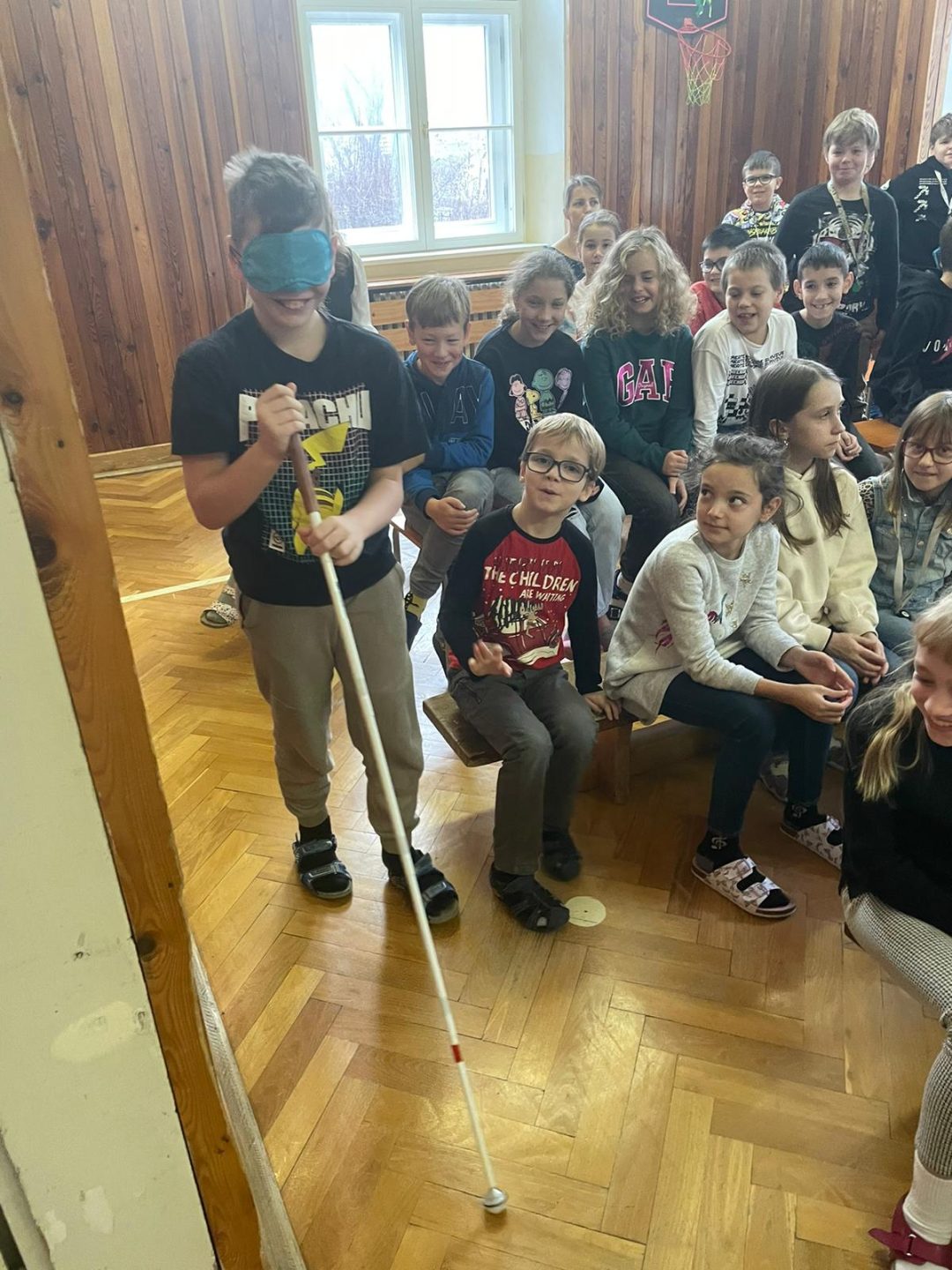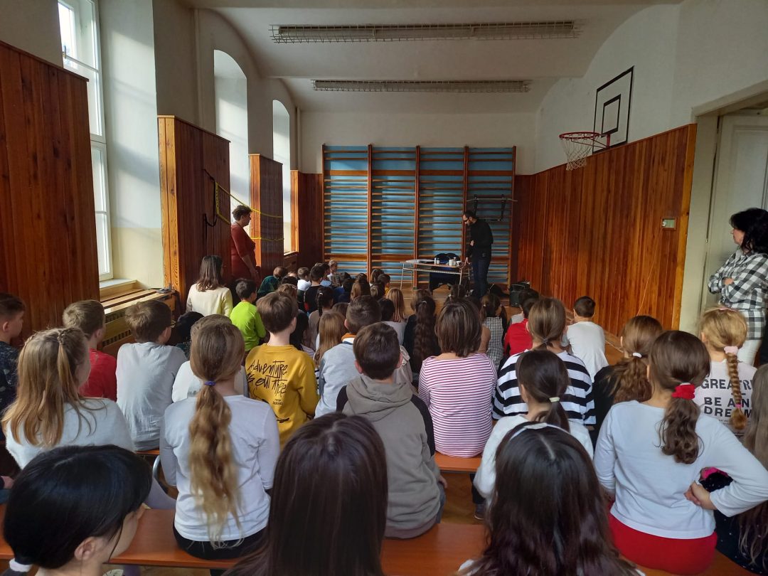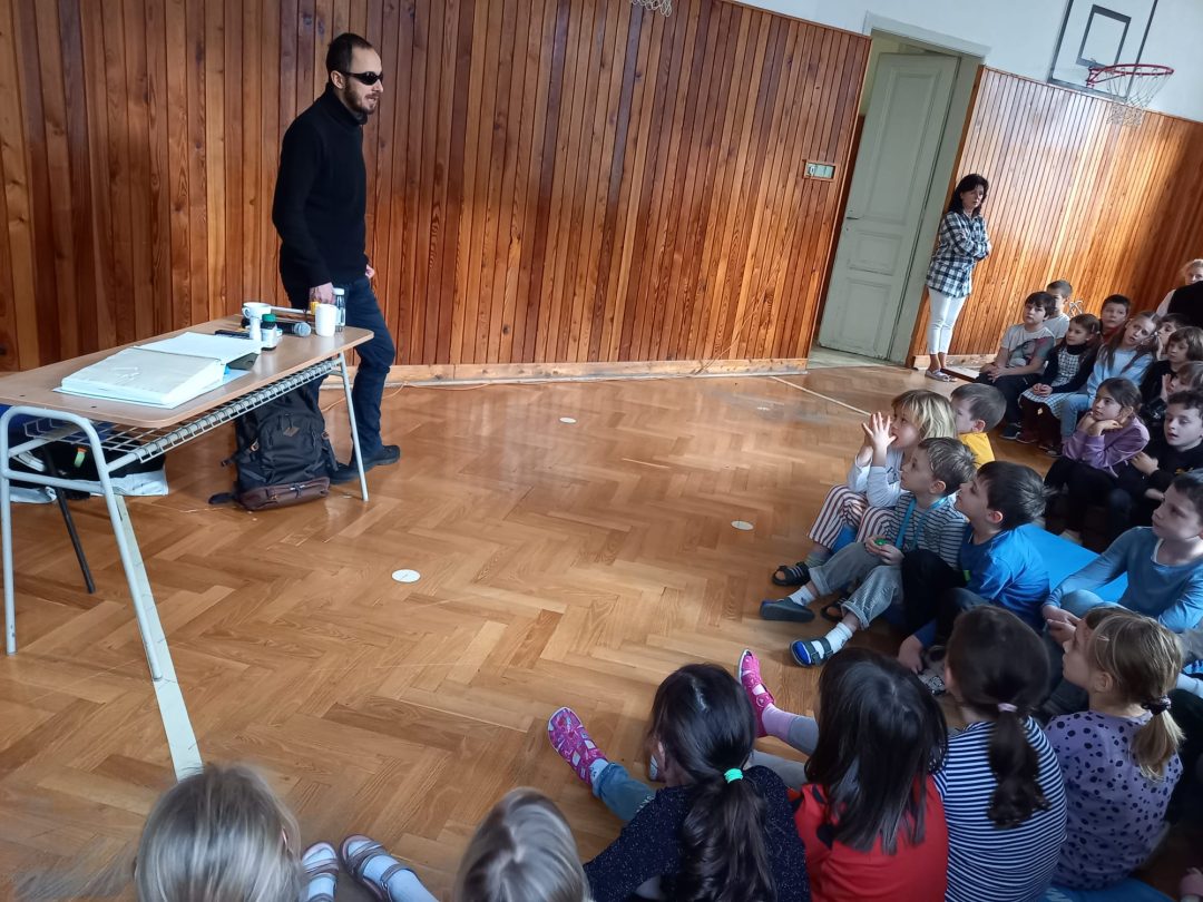 Deti na 1. stupni navštívil nevidiaci pán Juraj Páger aj so svojim psíkom Lukym, ktorý, ako pán Práger povedal, je jeho očami. Vysvetlil deťom základné pojmy, ukázal im rôzne kompenzačné pomôcky, ktoré uľahčujú nevidiacim a slabozrakým život. Deti si vyskúšali orientovať sa bez pomoci zraku a naučili sa, ako sa majú správať k nevidiacim ľuďom. Najviac ich zaujala ukážka práce s vodiacim psíkom Lukym.