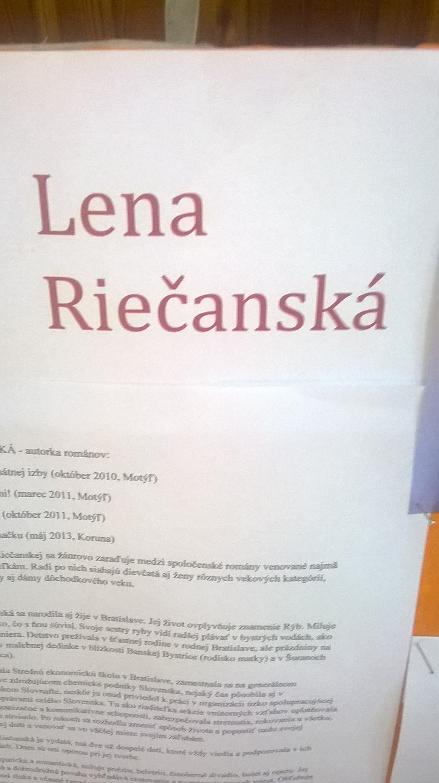 V rámci školského projektu na I. stupni ZŠ Náš spisovateľ sme si pozvali na besedu Lenu Riečanskú.