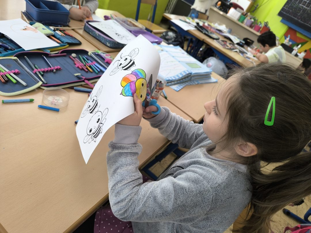 Na druhý deň si deti spoločne na výtvarnej výchove vyrobili vlastný jarný úľ, ktorý hýri farbami a najlepšie na ňom je, že vznikol ako produkt tímovej práce všetkých detí.