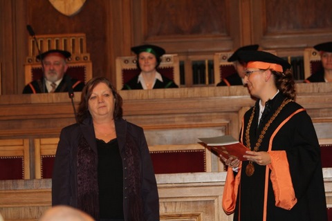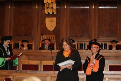 Okrem toho dostali ocenenie od dekana Pedagogickej fakulty aj naši dvaja učitelia – pani Irena Čechovičová za spoluprácu pri príprave študentov a za lektorstvo učebníc prírodovedy pre 1. stupeň ZŠ a pán Roman Penkala za dlhoročnú spoluprácu s PF pri príprave študentov v oblasti pedagogickej a odbornej praxe. Svojich triednych učiteľov prišli podporiť triedy III.B a IX.A. Našu školu reprezentovala aj žiačka III.B, laureátka celoslovenskej súťaže Slávik Slovenska Viktória Belayová, ktorá na záver slávnostného programu zaspievala ľudovú pesničku a očarila svojím hláskom a šarmom všetkých prítomných.