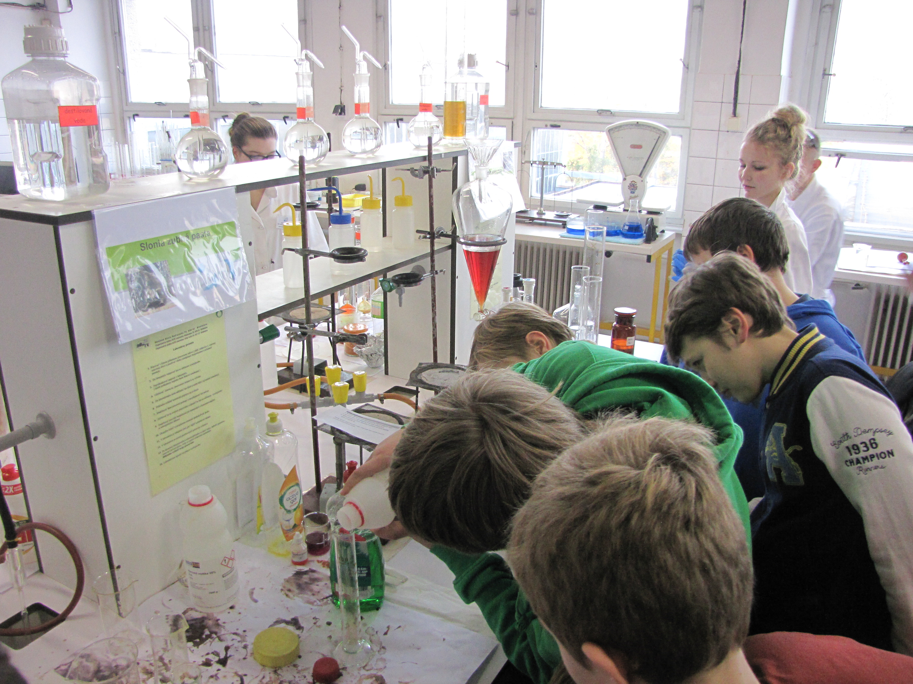 Žiaci zaujímajúci sa o chémiu, navštívili strednú odbornú školu chemickú v Bratislave. Prezreli si laboratória a vyskúšali si niektoré zaujímavé pokusy.