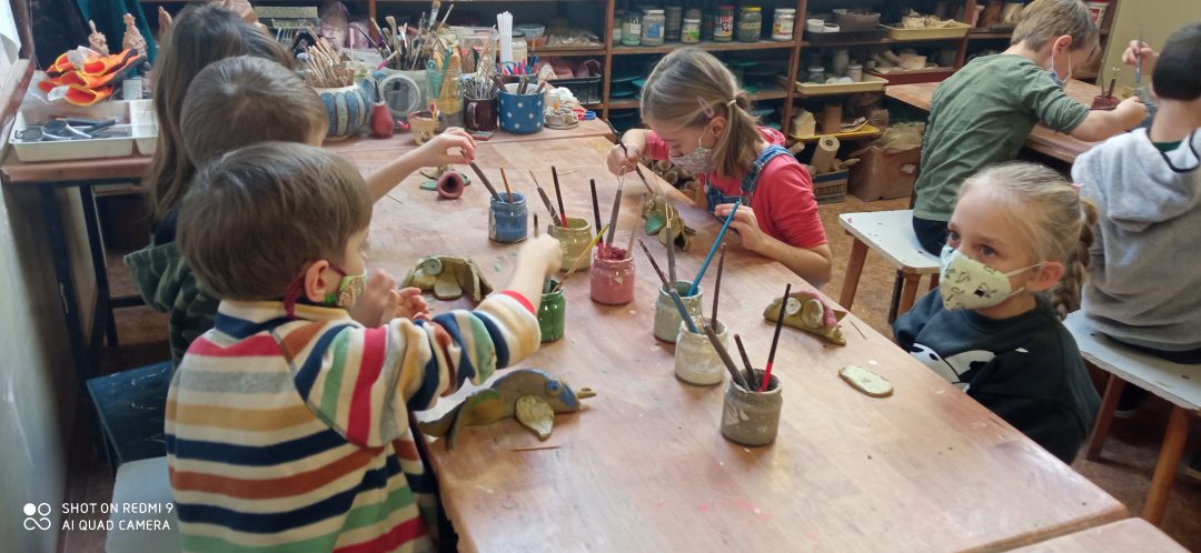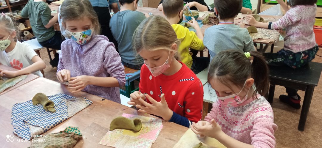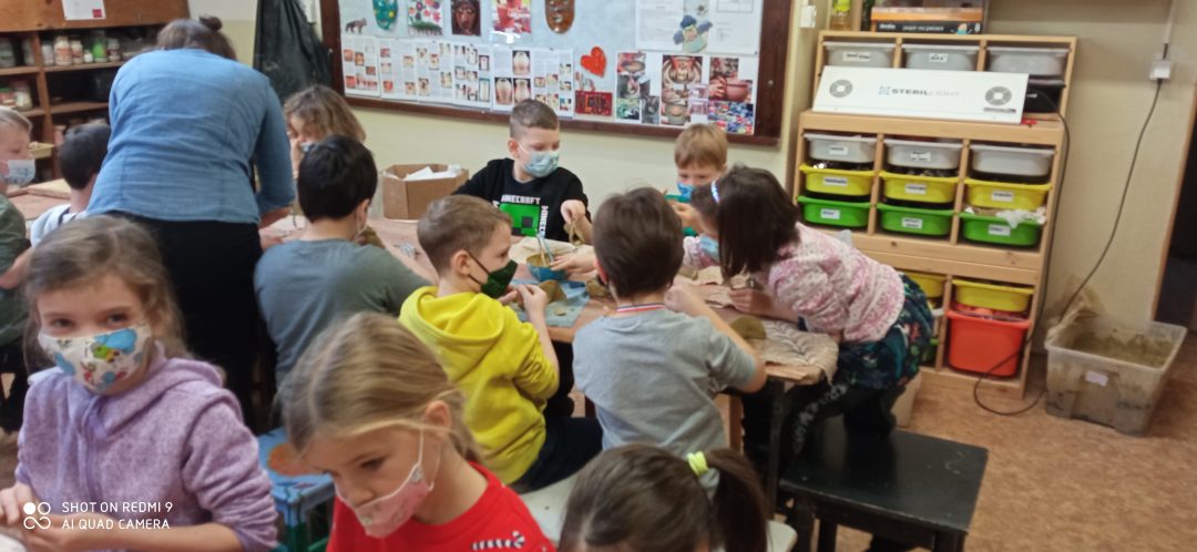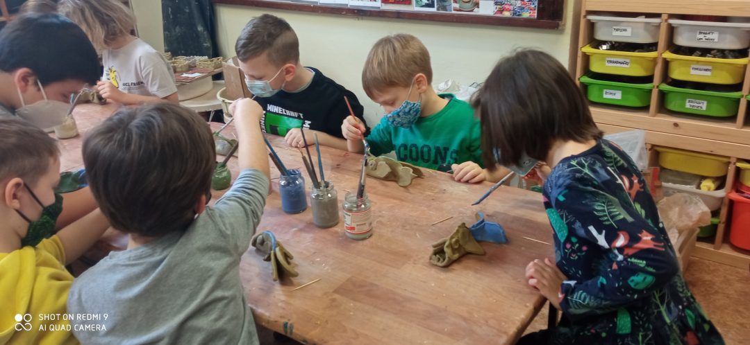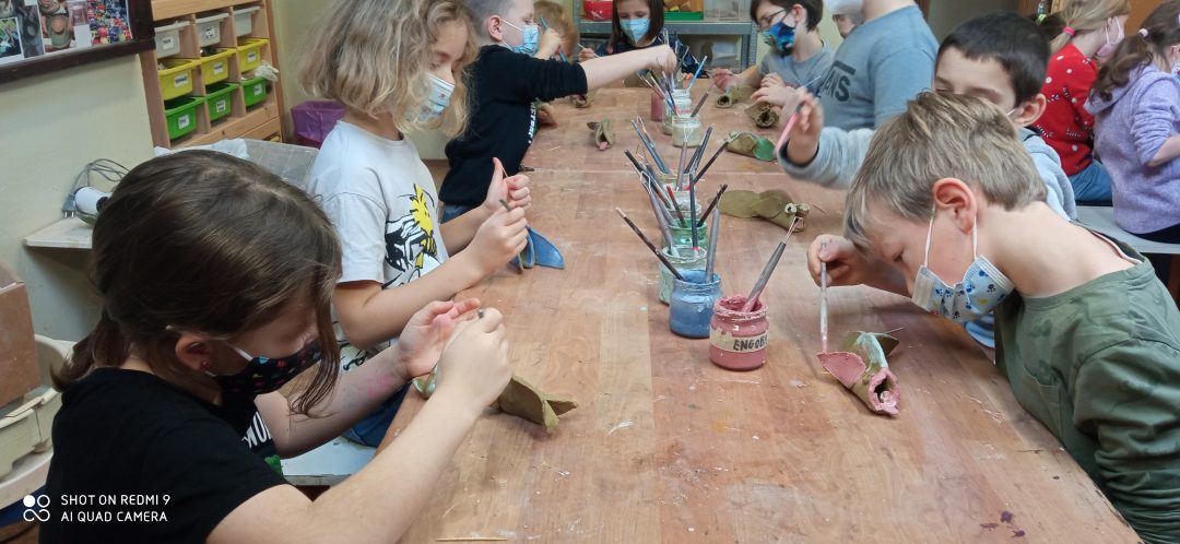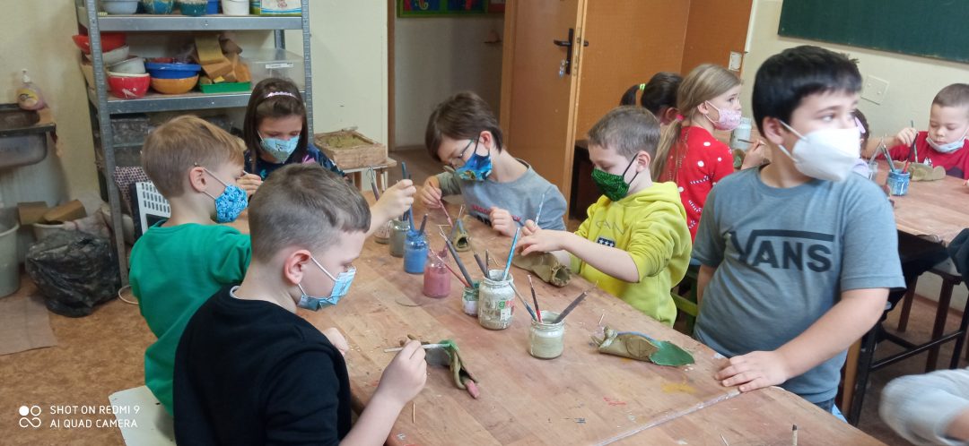 Prváci si prišli vyrobiť kapra z hliny. Každý bol iný, ale žiadnemu nechýbal chvost, žiabre, či papuľka s fúzikmi. Po vyvaľkaní, vyrezaní a prilepení všetkých častí ho namaľovali. Aby si deti mohli odnieť výrobky domov, musia ich ešte pani učiteľky z centra vypáliť v keramickej peci. To chvíľočku trvá, ale o to väčšiu radosť máme z hotových výtvorov.