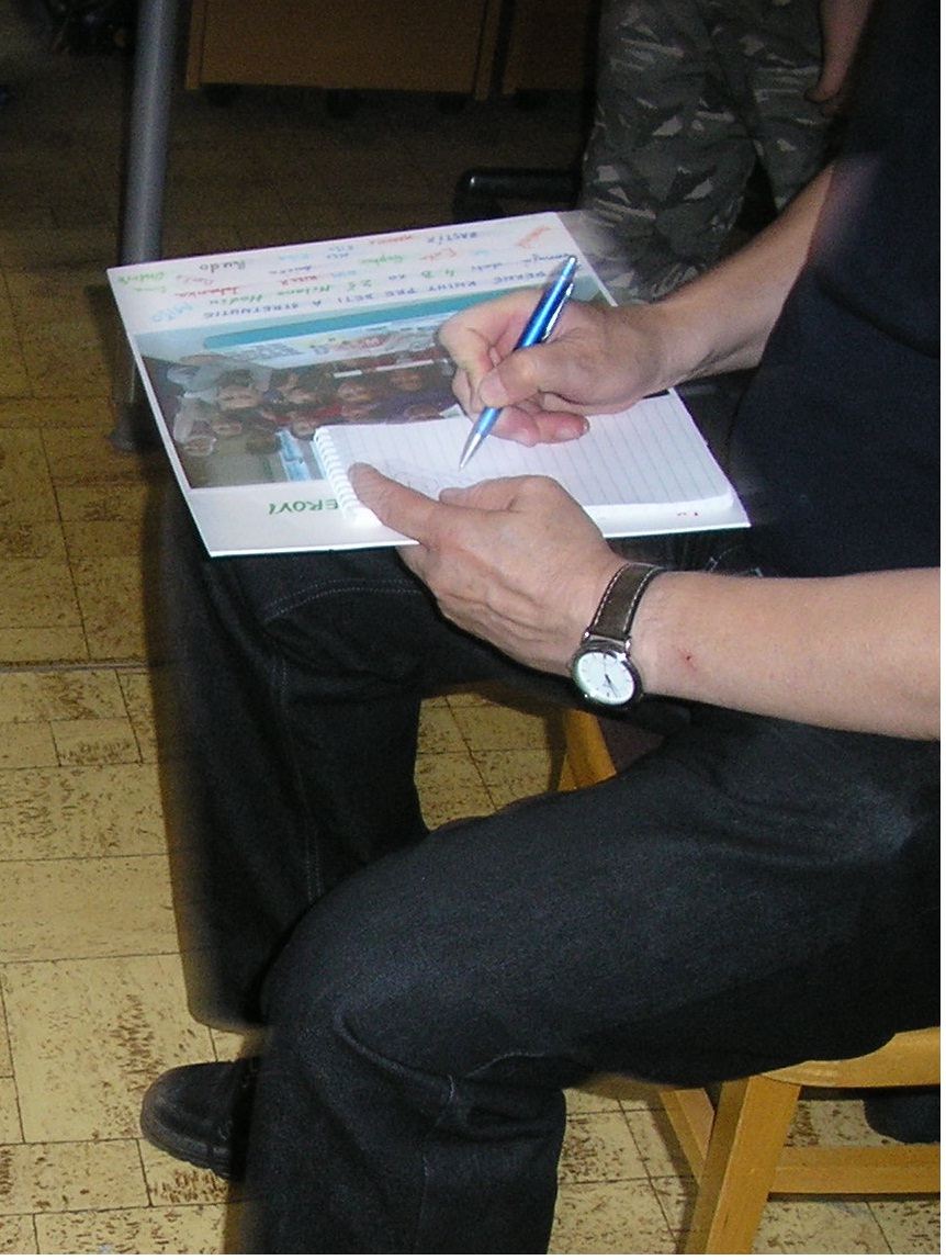 Veľmi pútavo hovoril o psíkovi Konorovi, ktorého sme si  obľúbili a sme vďační za ďalšie príbehy o ňom, ktoré neboli v knižke. V priateľskej atmosfére sme s ním hovorili o ostatných knihách, čo ho inšpirovalo k ich napísaniu, ktoré sa mu písali najľahšie… Dozvedeli  sme sa , že kniha s názvom Krajina  AGORD  je o drogách, pretože AGORD  je odzadu DROGA. Predstavil nám aj ďalšie nové knihy, na ktoré sa už teraz tešíme – napríklad Tajný život dažďových kvapiek a  Ktoviečikovia.  Keď  sme si mysleli, že sa naše stretnutie pomaly končí, nastalo veľké prekvapenie. Daniel  Hevier nám ponúkol spoluprácu. Budeme spolu  s ním písať knihu a plniť rôzne úlohy, ktoré nám bude zadávať.  Staneme sa spoluautormi  novej knihy. Hurááá!