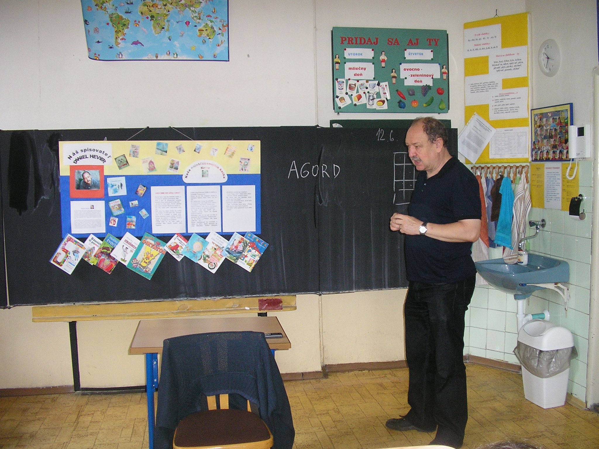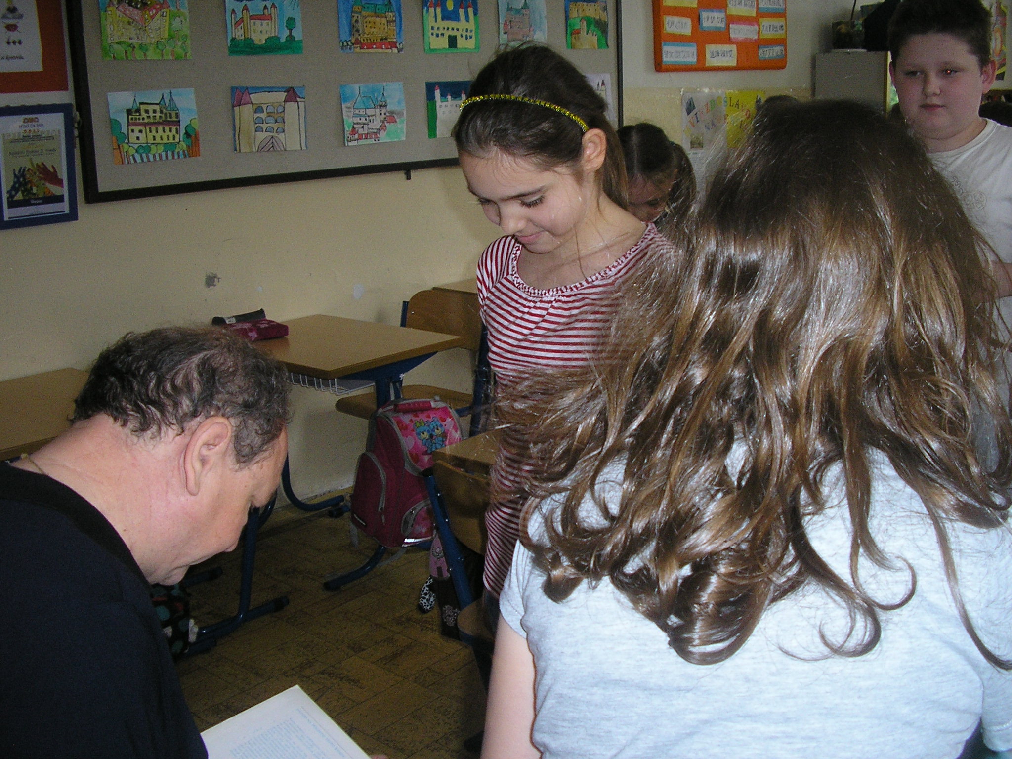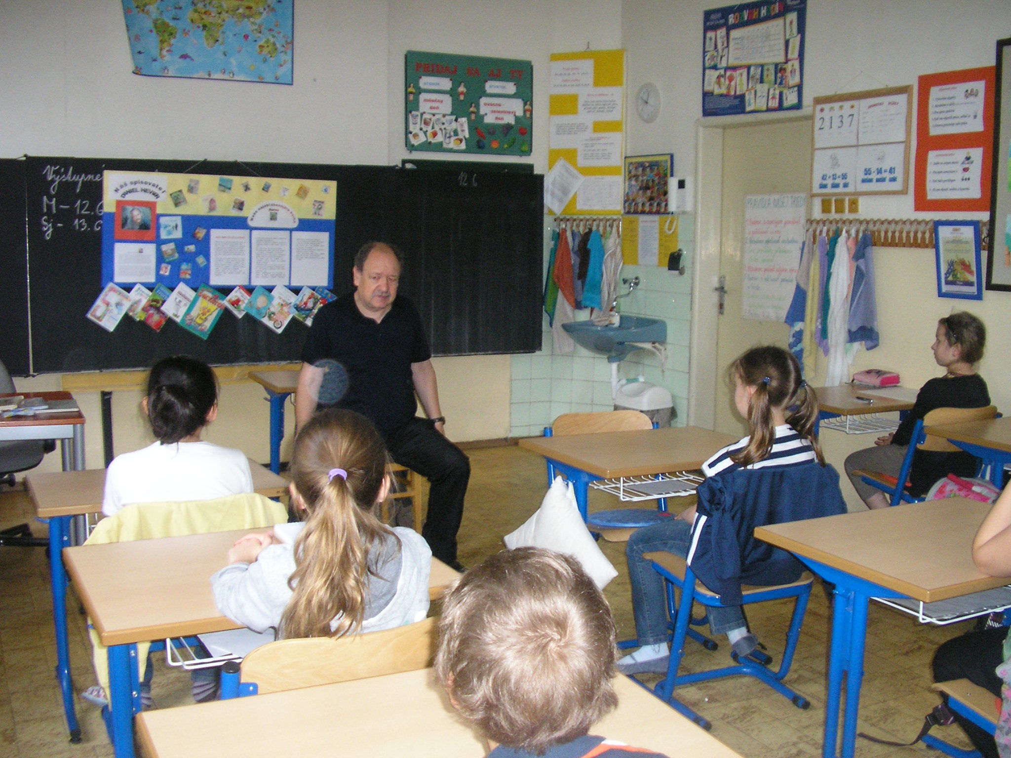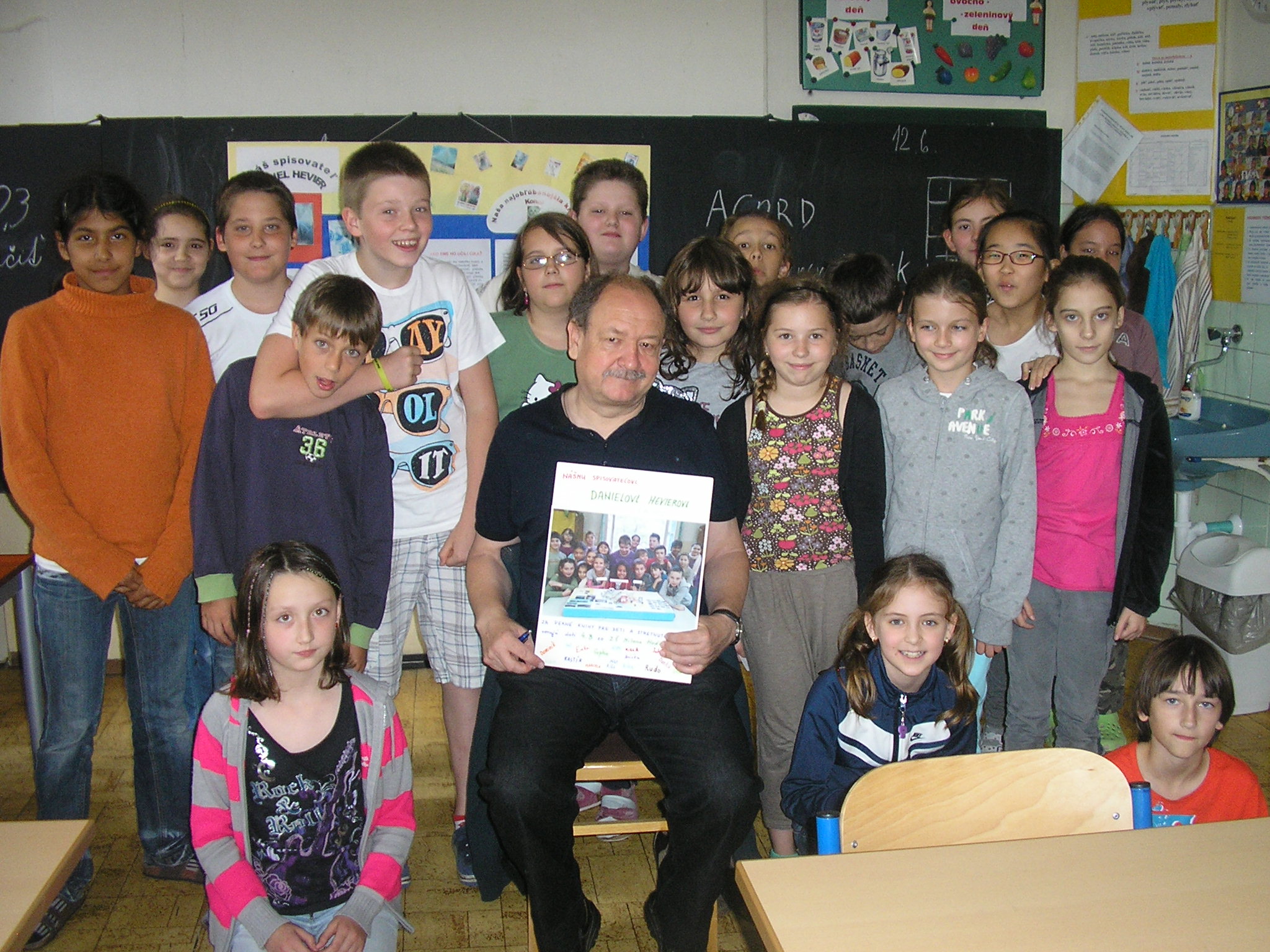 Stretli sme sa s naším spisovateľom Danielom Hevierom. Keď sme mu porozprávali o projekte „Náš spisovateľ“ , o našich pravidelných návštevách Mestskej knižnice a o vynikajúcich čitároch v našej triede, bol z toho nadšený.