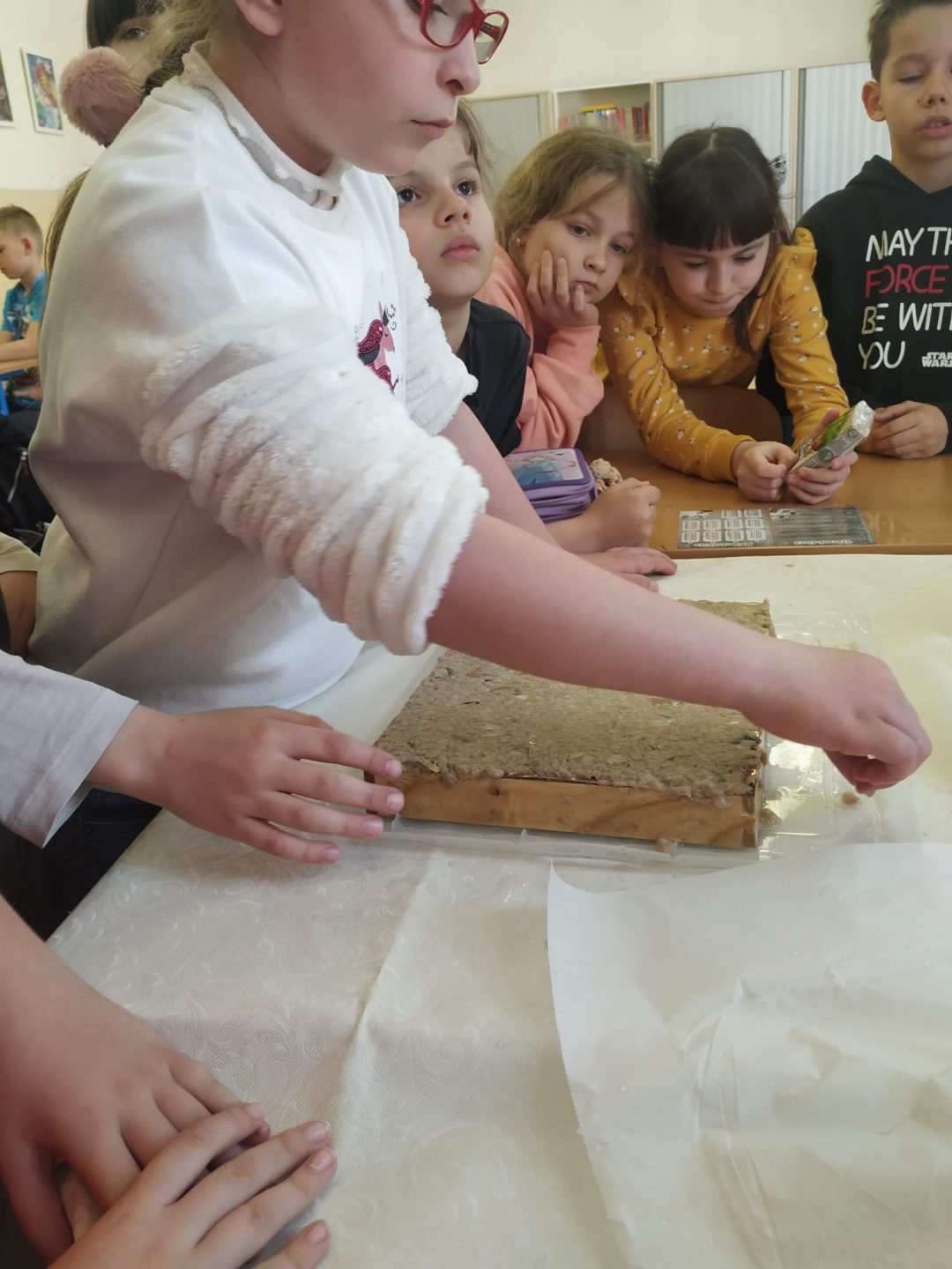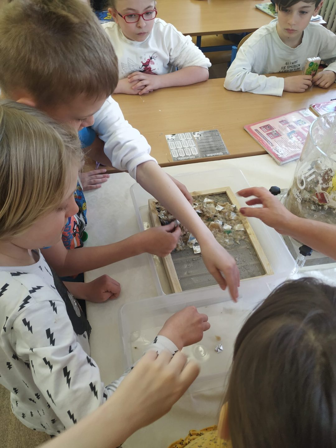 Dňa 25.4. sa v triede 3.B konal workshop s tetrapakmi. Pani Ivona Urbanová z firmy Circular Shields do triedy priniesla mnoho pomôcok, prostredníctvom ktorých nám ukázala, ako sa recyklujú tetrapaky. Deti mali za úlohu priniesť zopár obalov z domu. Rozstrihali ich a nechali v špeciálnom zariadení miešať asi pol hodiny. Za tento čas sa kúsky tetrapaku rozložili na tri časti a úlohou detí ich bolo roztriediť. Jednu časť tvoril papier, ktorý vyberali na špeciálne sitko a po vyschnutí vznikol nový papier. Popri pozorovaní tohto pokusu pani Urbanová deťom ukázala aj konkrétne výrobky, ktoré ich firma z tetrapakov vyrába (vreckovky, papierové utierky, toaletný papier). Na pamiatku a za pomoc dostalo každé dieťa jedny vreckovky. Po tomto workshope budú naši tretiaci motivovaní recyklovať tetrapaky, čím určite pomôžu našej planéte s odpadom.