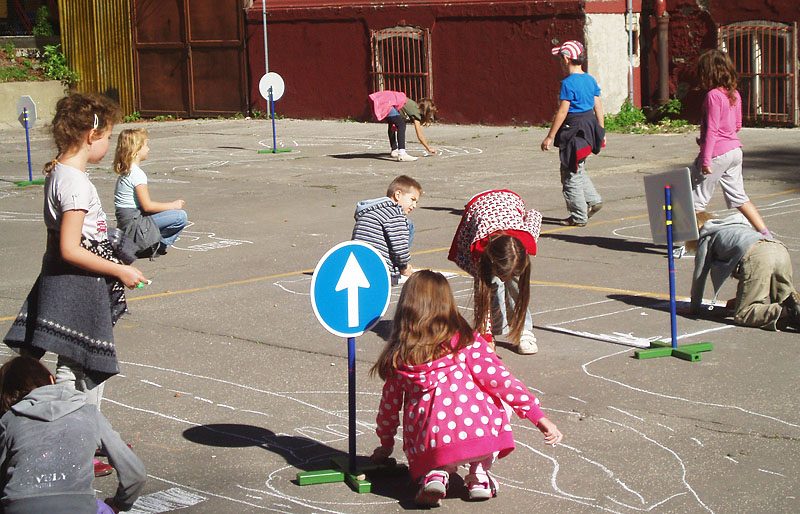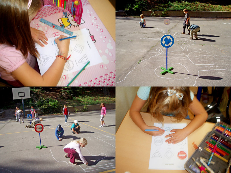 Pri aktivitách sme využili detskú hravosť a záujem o súťaženie. Rozprávali sme sa o pravidlách cestnej premávky, o dopravných značkách a kreslili obrázky k danej téme. Takto vyzbrojení vedomosťami sme na školskom dvore vytvorili improvizované dopravné ihrisko a vyskúšali sme si to, čo sme sa dozvedeli. Na záver sme si vlastnoručne vyrobili modely veľkých áut.