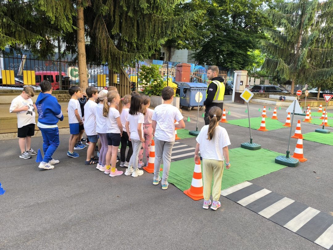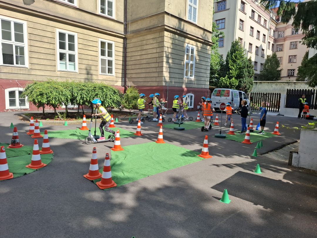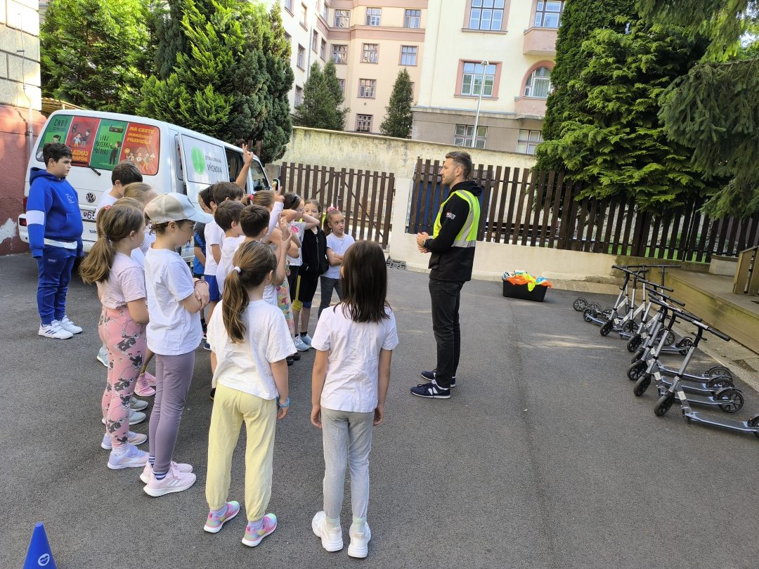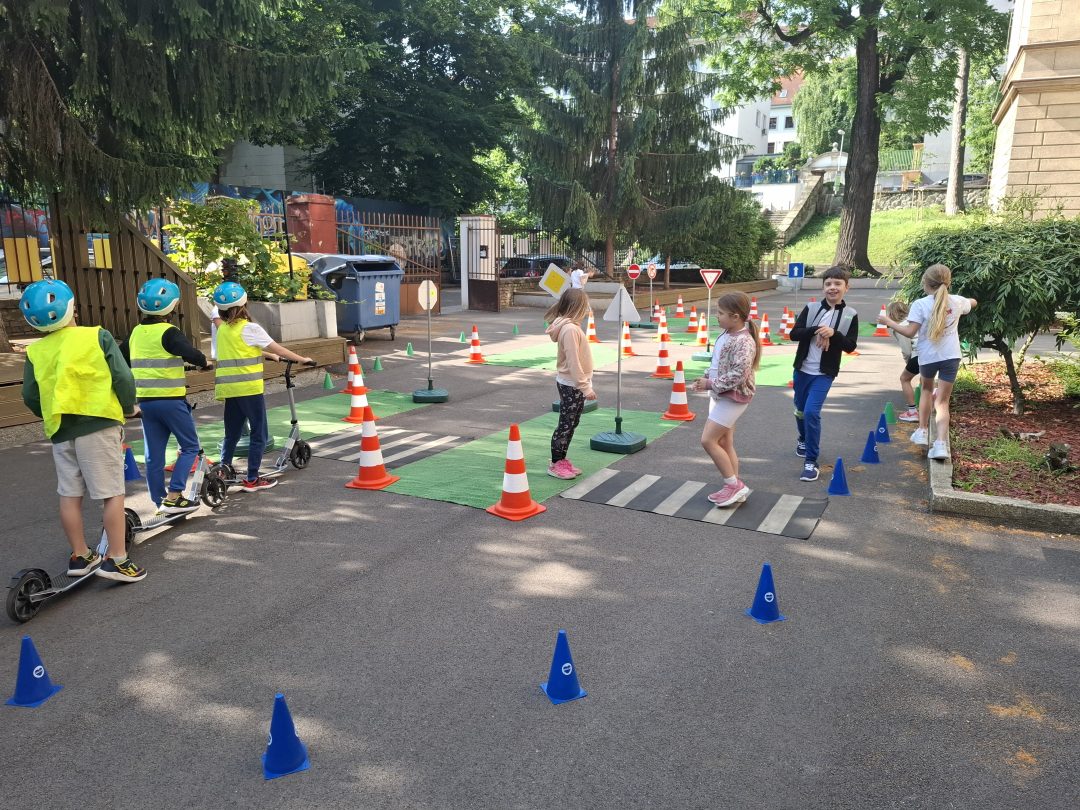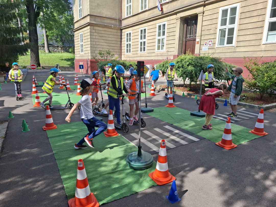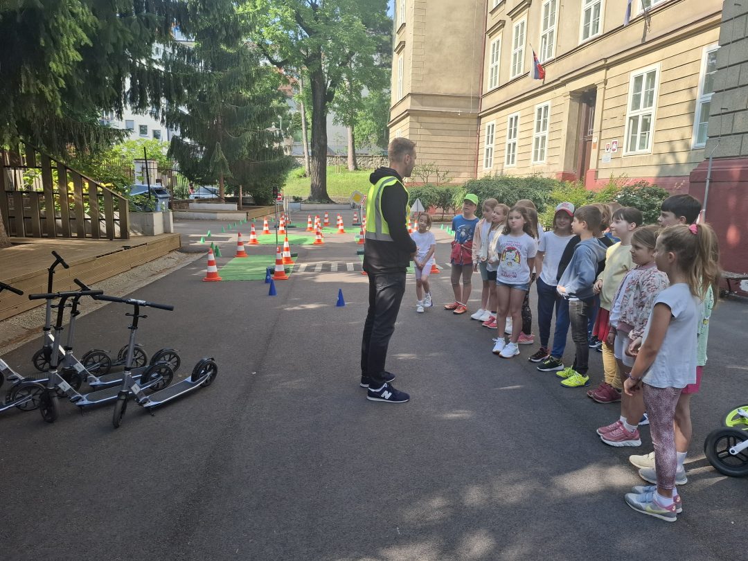 Strávili dopoludnie na dopravnom ihrisku, ktoré prišlo priamo za nimi, na školsý dvor. Výcvik bol rozdelený na teoretickú a praktickú časť. V teoretickej časti sa deti učili spoznávať dopravné značky a ich rozdelenie. Hľadali správne riešenia rôznych dopravných situácií. V praktickej časti si obliekli reflexné vesty, pripravili kolobežky a helmy. Rozdelili sa na skupinu chodcov a cyklistov a v praxi si vyskúšali teoretické vedomosti. Mali z výcviku pekný zážitok.