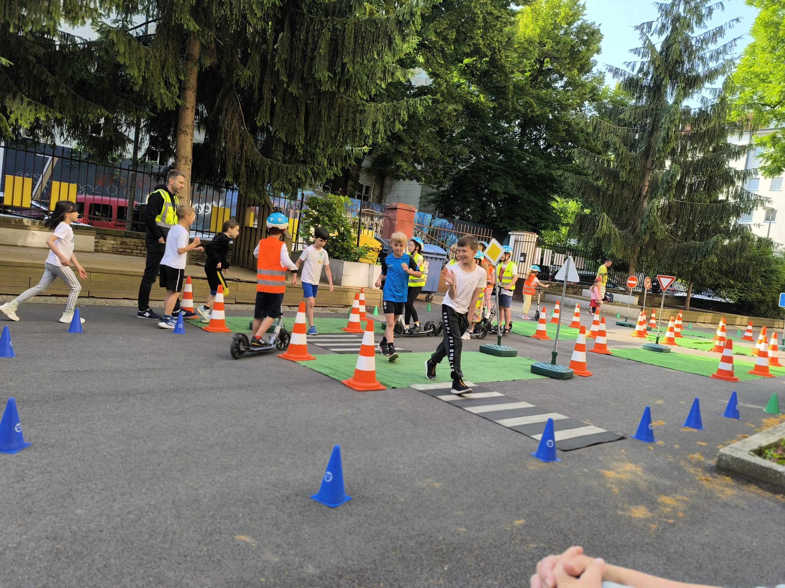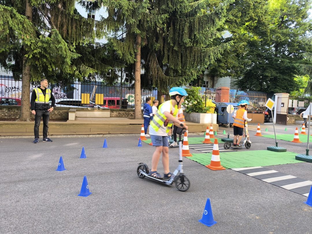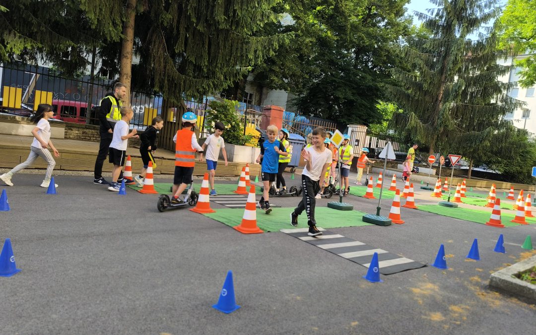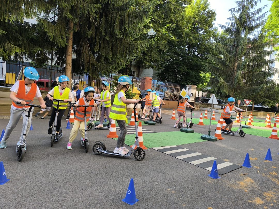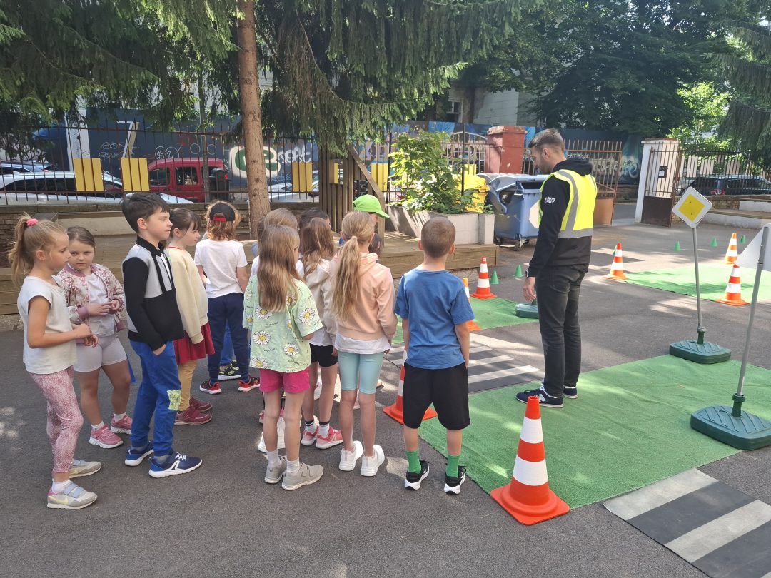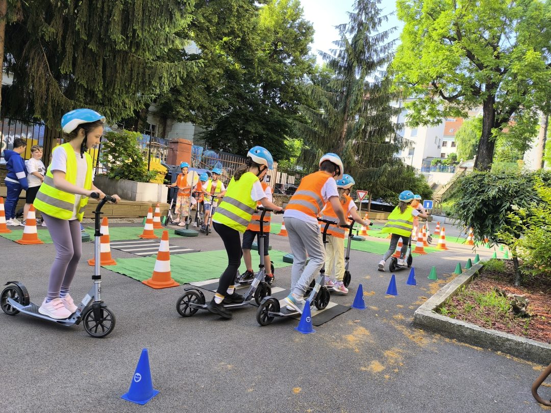 Strávili dopoludnie na dopravnom ihrisku, ktoré prišlo priamo za nimi, na školsý dvor. Výcvik bol rozdelený na teoretickú a praktickú časť. V teoretickej časti sa deti učili spoznávať dopravné značky a ich rozdelenie. Hľadali správne riešenia rôznych dopravných situácií. V praktickej časti si obliekli reflexné vesty, pripravili kolobežky a helmy. Rozdelili sa na skupinu chodcov a cyklistov a v praxi si vyskúšali teoretické vedomosti. Mali z výcviku pekný zážitok.
