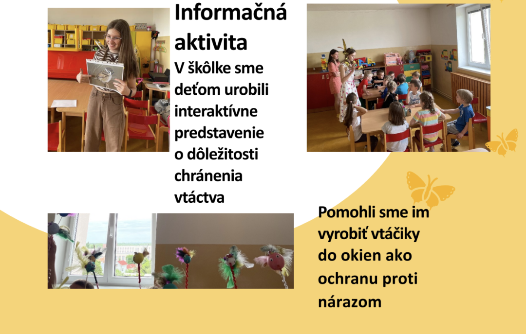 živočíšstva a k podpore a zachovaniu biodiverzity. Skladala sa z dvoch častí, praktickej a vedomostnej. V praktickej časti dievčatá tvorili opatrenia proti narazeniu vtákov do sklenných okien. O ochrane vtáctva išli potom porozprávať do materskej školy. Vedomostná časť prebiehala v Zemianskej Olči. Tento rok sa nám nepodarilo umiestniť na prvých pozíciách, uniklo nám to iba o kúsok. Napriek tomu bol pobyt v environmentálnom stredisku veľmi príjemný a obohacujúci.