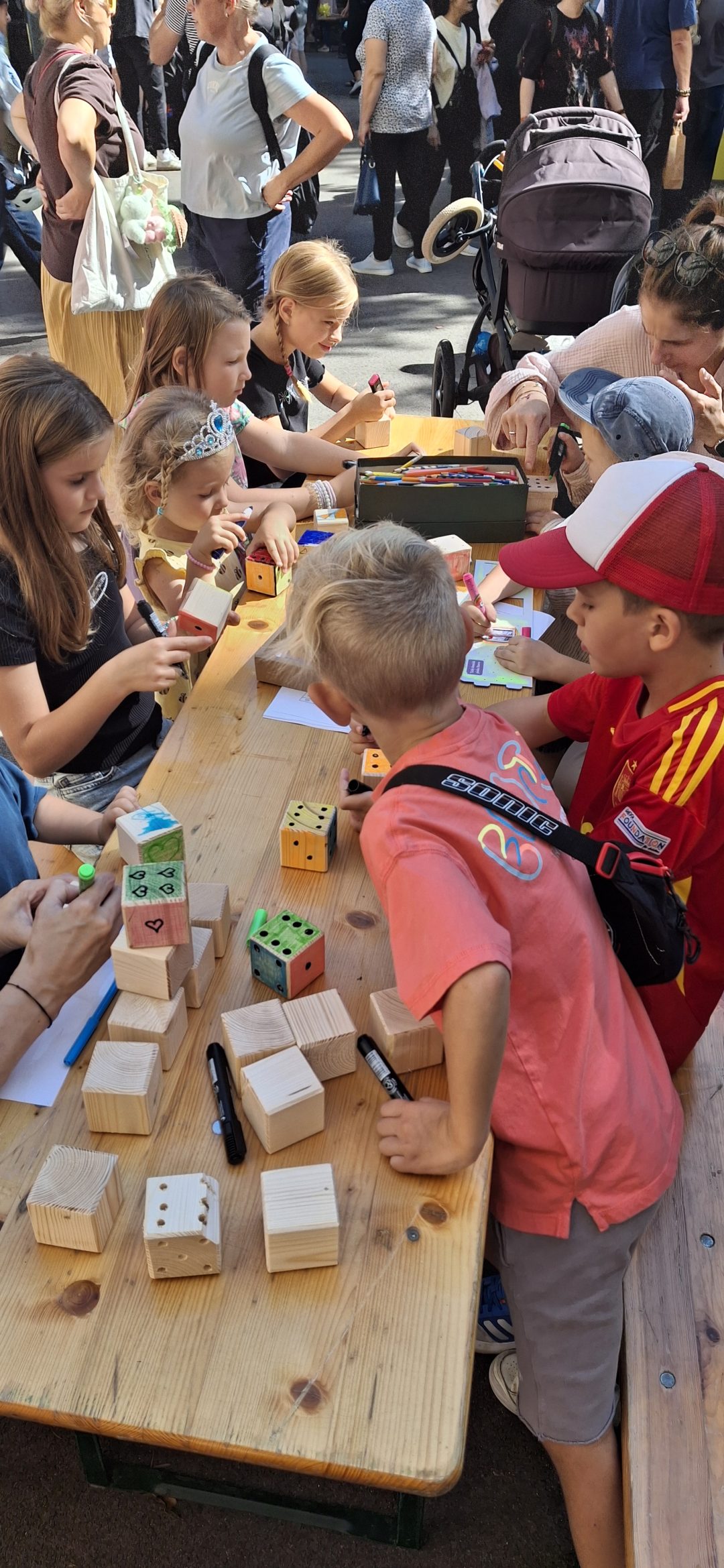 V areáli 1. stupňa našej ZŠ prebiehal Detský trh. Okrem nákupu drobností a maškŕt u detských predajcov mali návštevníci možnosť zapojiť sa do rôznych aktivít, otestovať svoju šikovnosť alebo prejaviť kreativitu pri školskom stánku a vyrobiť si drevenú hraciu kocku. Bohatý bol aj kultúrny program, na javisku sa vystriedalo čítanie rozprávok, bábkové divadlo aj vydarené hudobné čísla.