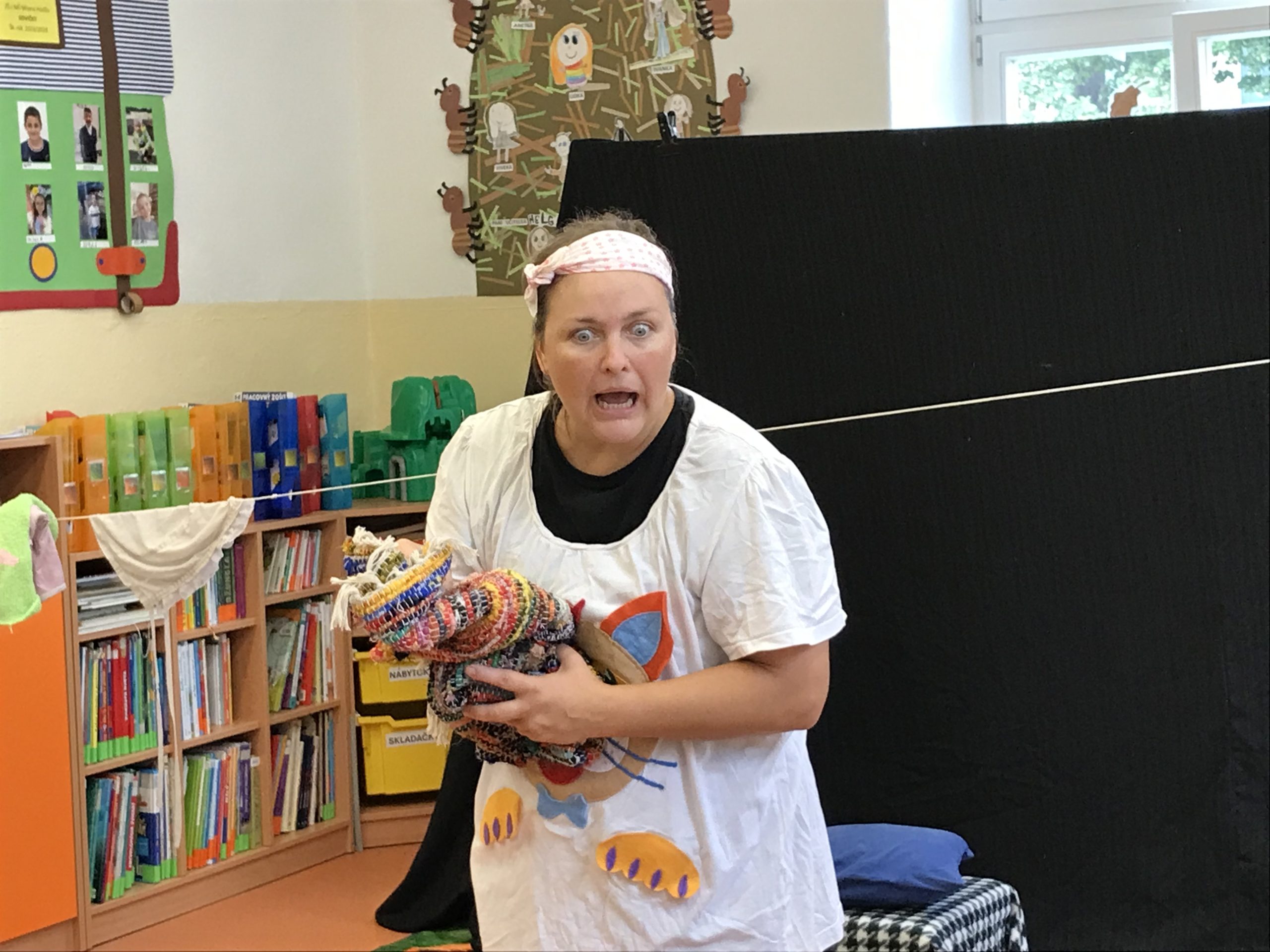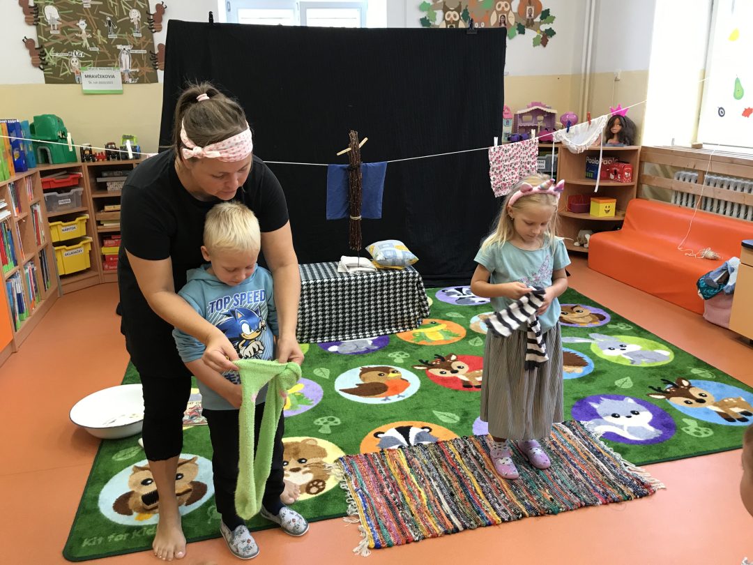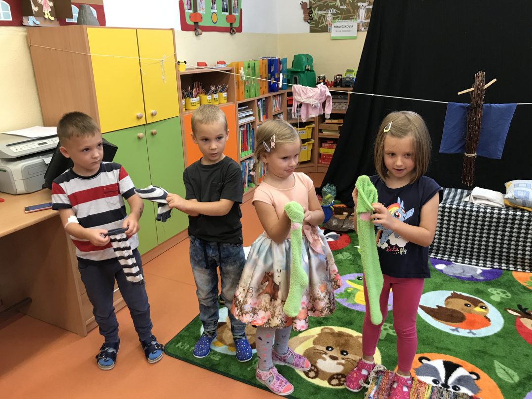 Že Vás názov nášho prvého škôlkarskeho príspevku zaskočil? Nevyhrnuli sme si s deťmi rukávy, aspoň nie naozaj, ale sa pohodlne usadili a nechali sa vtiahnuť do interaktívneho predstavenia Divadla Zábavka s týmto názvom. Bežné predmety v ňom ožívali, zo štipcov sa stali vtáčatká. Pani herečka nás počas predstavenia hravou formou zoznámila s hlavnými postavami niektorých diel pani spisovateľky Ľudmily Podjavorinskej, a tak sme sa skamarátili napríklad so Žabiatkom či vrabčekom Čimom. Na záver predstavenia si deti tie rukávy predsa len vyhrnuli a spoznali, že upratovanie je nielen užitočné, ale môže byť aj zábavné.