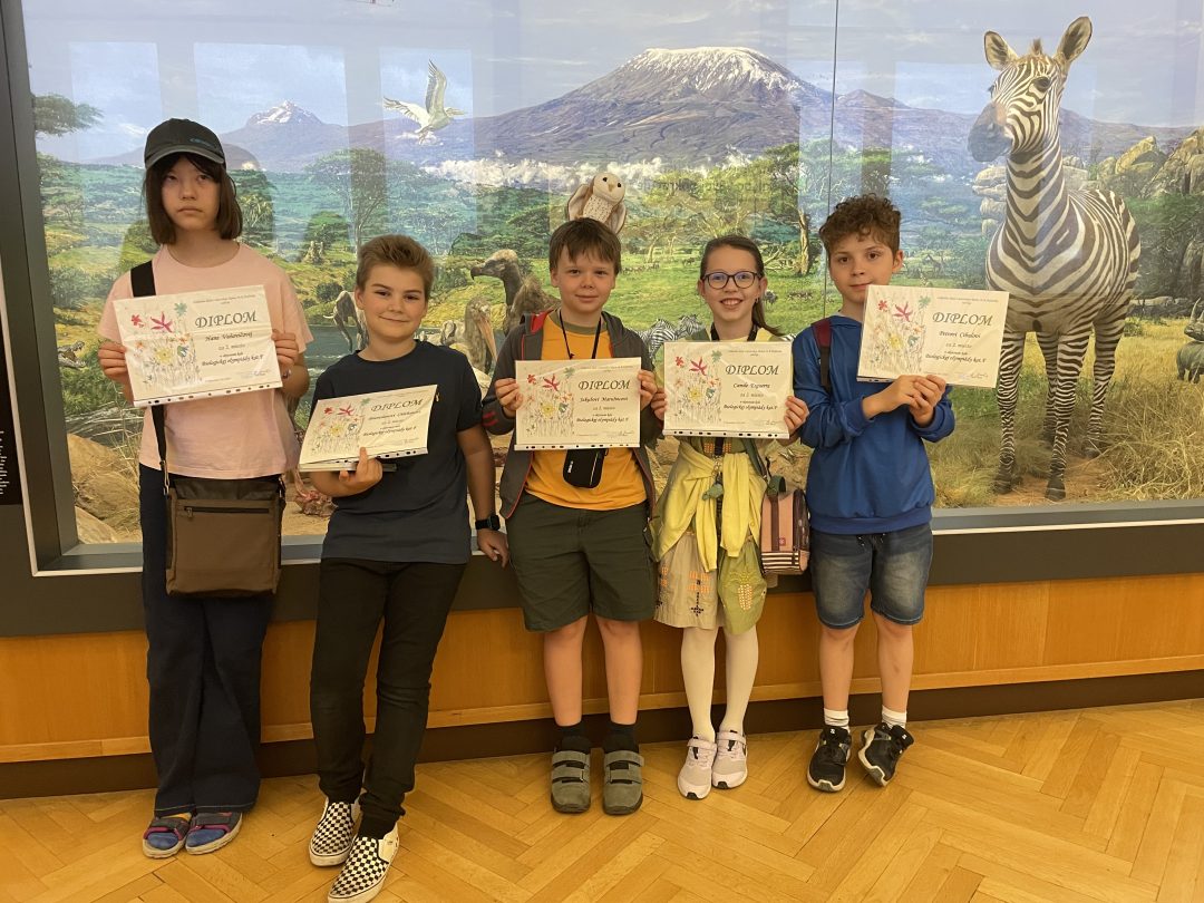 Koncom mája sme sa so žiakmi vybrali do Slovenského národného múzea, kde prebiehalo vyhodnotenie okresného kola všetkých kategórií Biologickej olympiády. Naši piataci (Peter Cibula, Camila Esguerra, Branislav Chlebana, Jakub Marušinec a Hana Vaňovičová) pracovali ako tím pod názvom Plamienky driemavé, kde celý rok plnili rôzne úlohy aj v teréne. Umiestnili sa na krásnom 2. mieste.