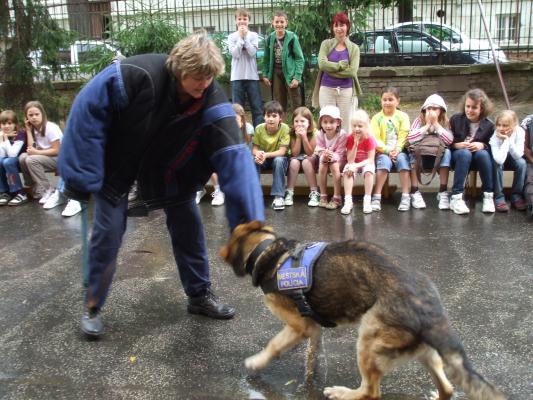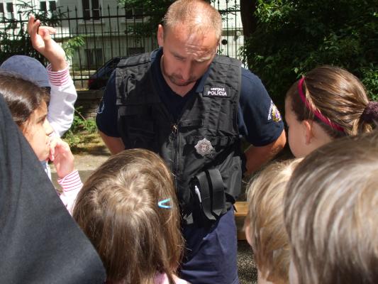 Ktoré dieťa by nechcelo psa? Alebo poznáte chlapca, ktorý by neobdivoval prácu policajtov? Veru neviem, či by ste také deti našli. I tie naše sa potešili, keď medzi nás zavítali členovia Mestskej polície i so svojimi štvornohými kamarátmi a zároveň spoľahlivými spolupracovníkmi. Ukázali nám poslušnosť svojich vlčiakov aj ich schopnosť pomáhať pri dolapení páchateľov. Lúčili sme sa so sľubom, že sa znovu stretneme.