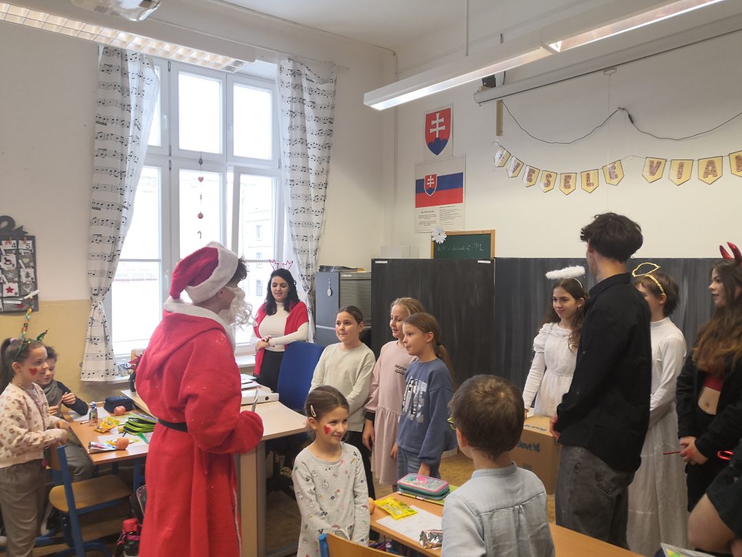 Mikuláš na nás nezabudol a prišiel do našej školy potešiť aj malých, aj veľkých. Túžobne sme ho všetci očakávali a radosť v našich očiach sa prejavila naplno, keď sa zjavil vo dverách. Žiaci si pripravili rôzne riekanky a vianočné pesničky, ktorými potešili Mikuláša a jeho sprievod. Za svoje mini vystúpenia si vyslúžili aj sladkú odmenu. Čerti sa porozprávali aj s nezbedníkmi a anjeli vyčarili deťom úsmev na tvári malými drobnosťami.
