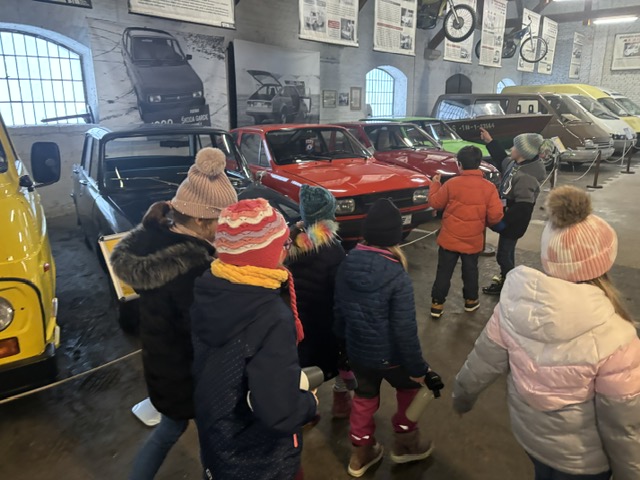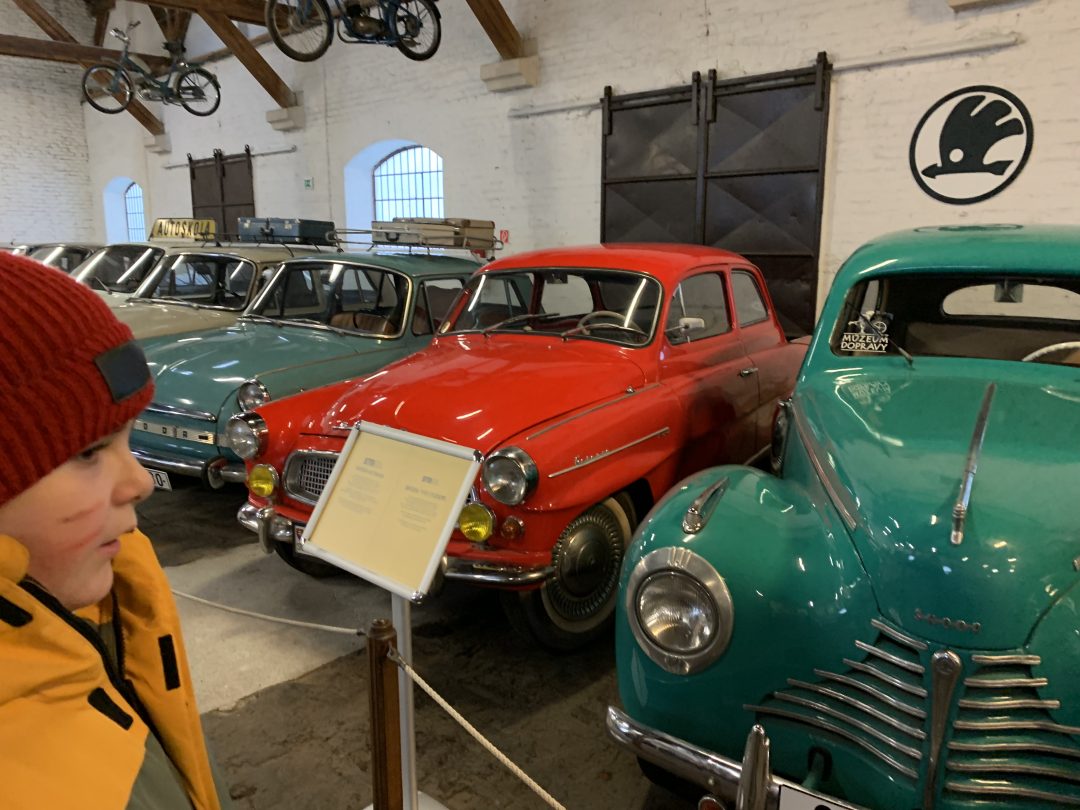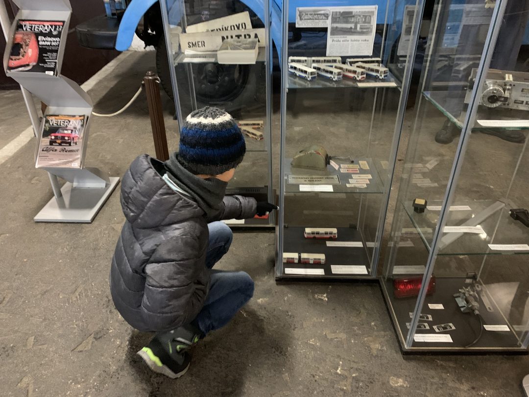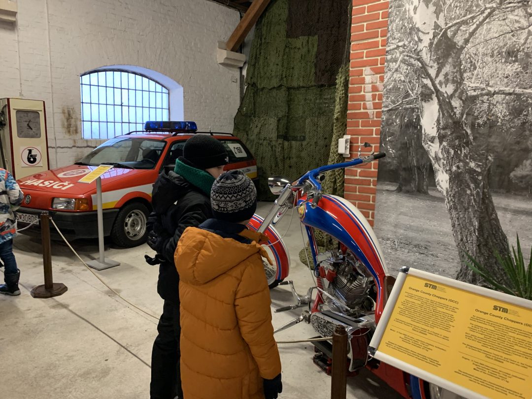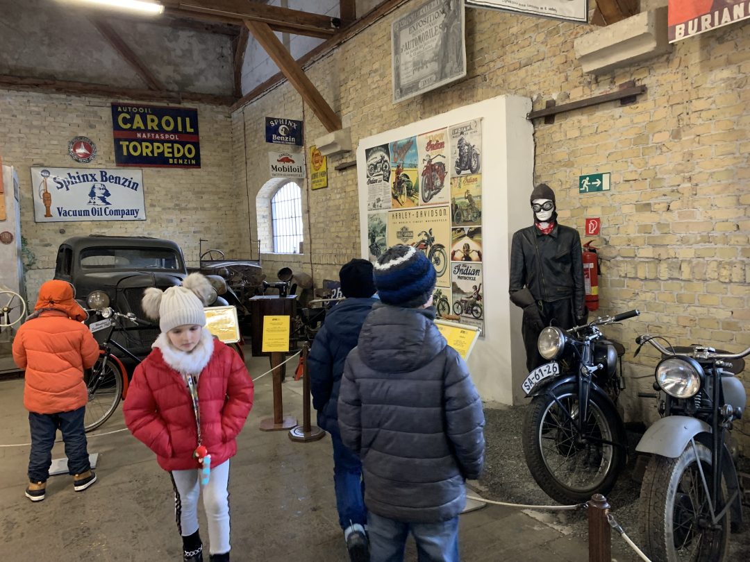 V múzeu nás čakala prehliadka historických automobilov a motocyklov, deti potešil najmä funkčný model železnice vo vstupnej hale múzea a pokračovanie do expozície histórie železníc.