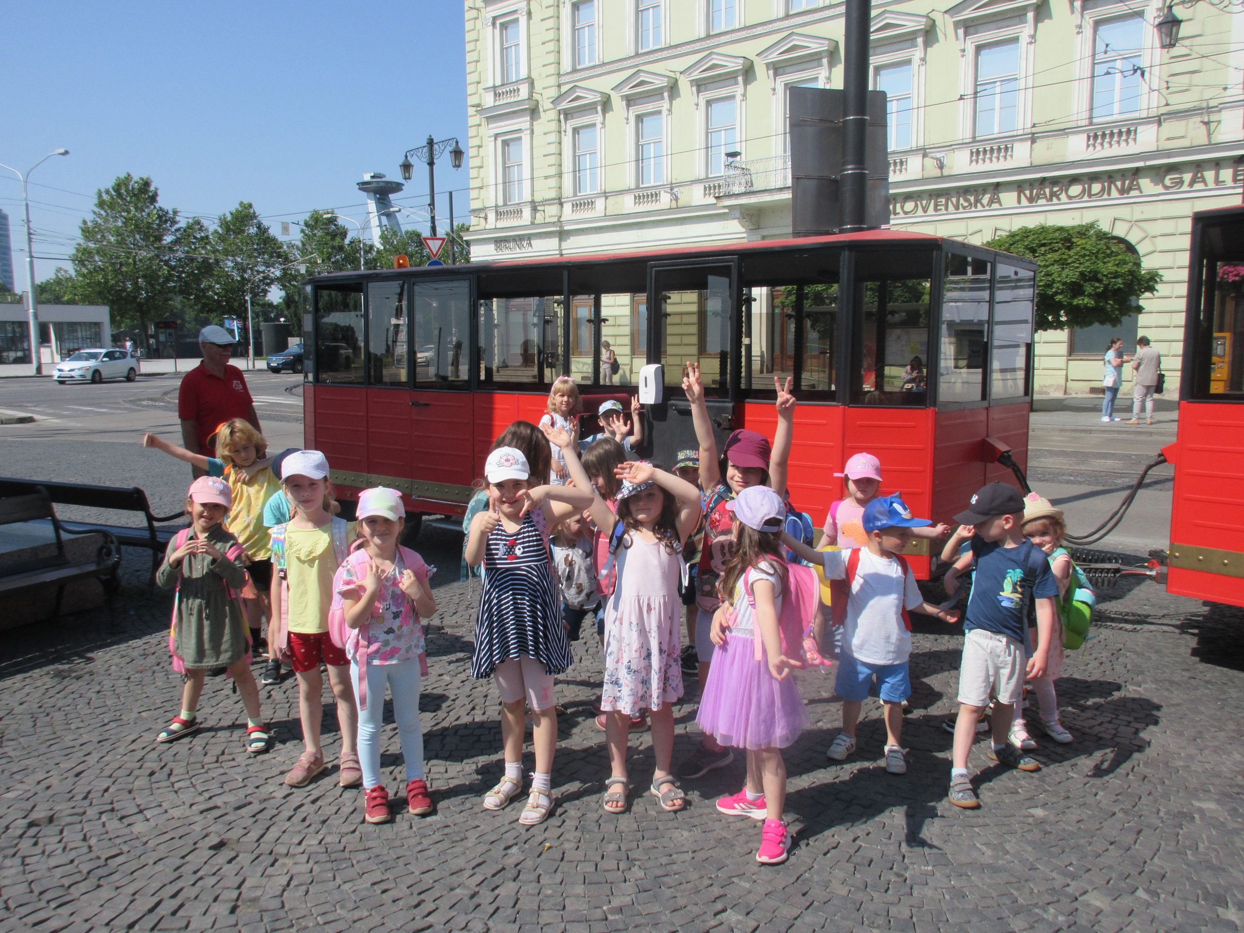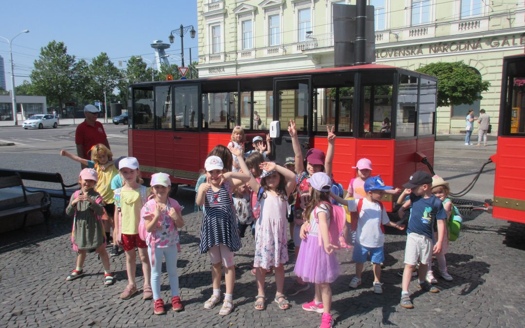 V polovici júna si naši škôlkari vychutnali jazdu Vláčikom Blaváčikom. Počas veľkého okruhu po Starom Meste pomenovávali známe stavby a zaspomínali si aj na aprílové lokálne turistické vychádzky s pátračom Timom. Počas prestávky sa prešli k Bratislavského hradu, na ktorého nádvorí sa posilnili a vybrali sa späť k vláčiku.