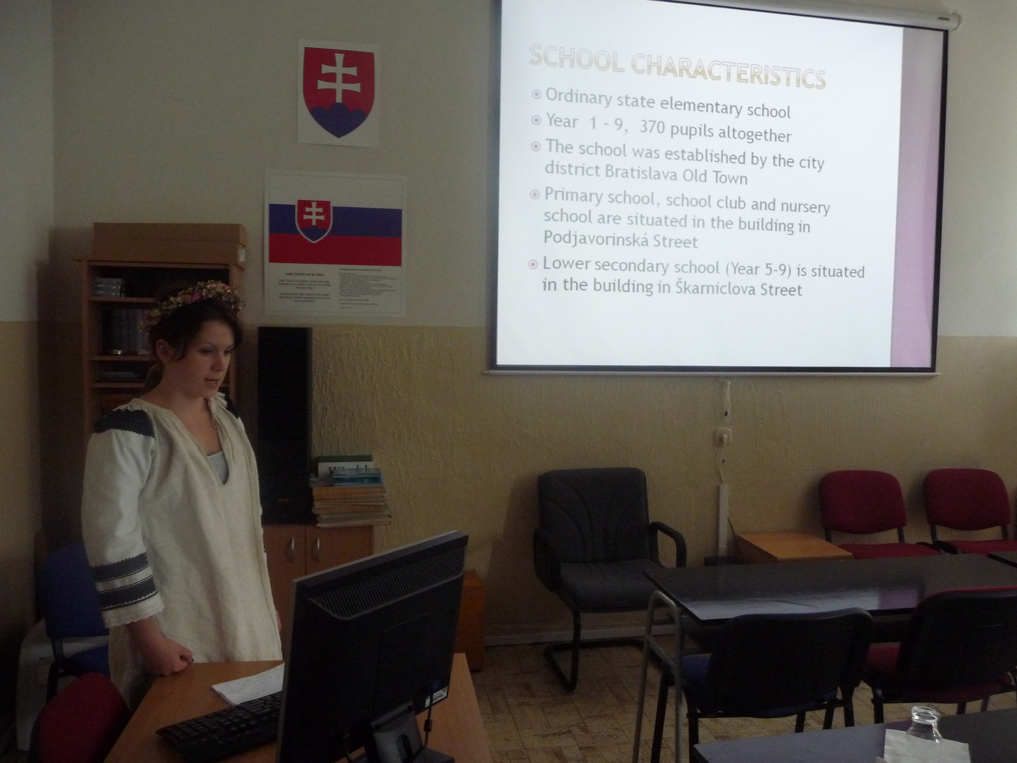 Medzinárodný projekt INNOTE, celým názvom Induction for Novice Teachers, sa zameriava na začleňovanie začínajúcich učiteľov do praxe. Naša škola, spolu s Univerzitou Komenského – Pedagogickou fakultou, spolupracuje s učiteľmi zo základných a vysokých škôl zo šiestich krajín (Nemecko, Fínsko, Estónsko, Škótsko, Česká republika, Maďarsko). Cieľom projektu je nadobudnúť poznatky o začínajúcich učiteľoch v partnerských krajinách. Zapojené krajiny sa vzájomne obohacujú, vyvíjajú a vytvárajú komplexnú indukciu a školiaci program s dôrazom na výskumne doložené údaje a informácie. Spolupracujú na vytvorení najlepších osvedčených postupov, aktivít pre pomoc pri začleňovaní novo kvalifikovaných učiteľov do školskej komunity s cieľom podporiť ich začiatky pedagogickej kariéry. Jednou z naplánovaných aktivít bola aj prezentácia našej školy, ktorá sa uskutočnila v piatok 10.6.2011. Hostí na začiatok privítali naši dvaja žiaci, Alex Jančová a Adam Wieger, starým slovenským zvykom, chlebom a soľou, ktorí boli oblečení v tradičných krojoch. Pani riaditeľka privítala hostí, jej slová odborne pretlmočila pani učiteľka Holičová do anglického jazyka. Nasledovala prezentácia školy v multimediálnej miestnosti, ktorú s excelentnou angličtinou predniesla Alex Jančová z IX. B. triedy. Nasledovala diskusia s uvádzajúcou učiteľkou p. Bajusovou a začínajúcim učiteľom p. Gerbom. Naši žiaci reprezentovali školu krátkym program: Janka Rajtóková zo VII. B zaspievala pieseň s názvom Padá rosička, Barborka Medveďová, Margarétka Mešková, Viktória Študentová, Lujza Fabiánová a Ninka Belicová zo IV.B zaspievali pieseň Páslo dievča pávy, Filip Toma zo IV. A. zahral na flaute, Danielka Zibb zo VII.A zaspievala anglickú pieseň z muzikálu a nakoniec Viki Belayová z III.B zaspievala dve ľudové piesne. Po programe nasledovala exkurzia školy sprevádzaná množstvom otázok zo strany našich hostí. Hosťom sa v našej škole veľmi páčilo, skonštatovali, že tu vládne vľúdna a priateľská atmosféra.