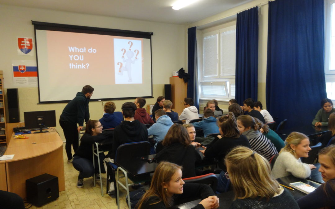 Deviataci a ôsmaci sa zúčastnili na interaktívnej prezentácii o Dánsku, ktorú viedli študenti z tejto severskej krajiny. Okrem zaujímavých informácií o Dánskom kráľovstve mohli žiaci diskutovať o téme osamelosti, ale aj zasúťažiť si o tradičné cukrovinky „Liquorice“. Zúčastnené triedy predviedli výbornú úroveň angličtiny.