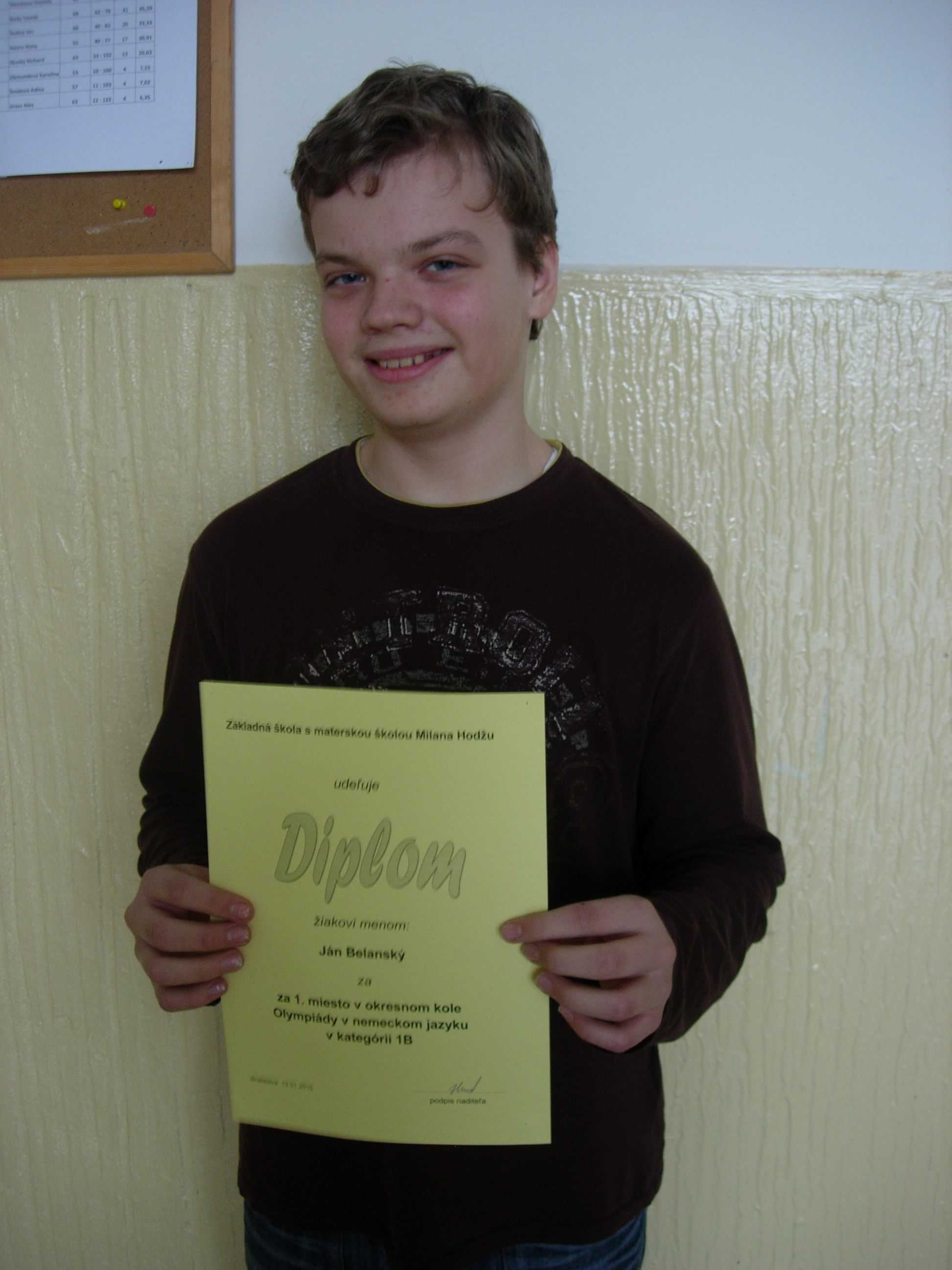 V kategórii 1B (žiaci 8. a 9. ročníka ZŠ a ročníkov tercia a kvarta 8-ných gymnázií) náš žiak JÁN BELANSKÝ z 8.A triedy zvíťazil a s počtom dosiahnutých bodov 90 sa stal úspešným riešiteľom.