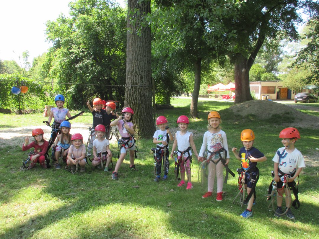 Naši škôlkari oslávili tohtoročný Deň detí v športovom duchu, výletom do Tarzánie v Devínskej Novej Vsi. S prilbou na hlave a lezeckým istením, posúvali hranice svojej odvahy a zdolávali lanovku i viaceré prekážky. Odmenou im bolo nielen sladké prekvapenie od pani z miestneho bufetu, ale predovšetkým radosť a dobrý pocit z netradične stráveného dopoludnia.