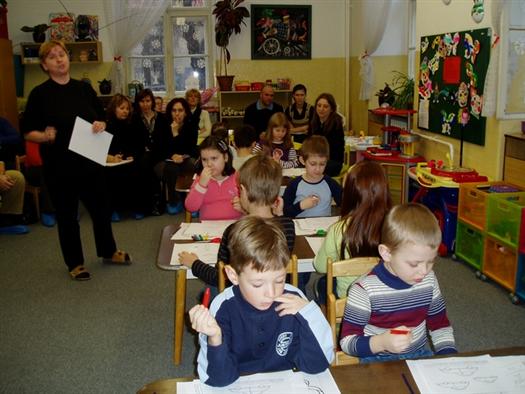 Na otvorenej hodine sa zúčastnila aj pani učiteľka 1. ročníka Mgr. Polonyová a psychologička Mgr. Beutelhauserová. Pani psychologička oboznámila rodičov so zrelosťou detí pred nástupom do ZŠ. Deti predviedli rodičom prácu s pracovnými listami i nožnicami.