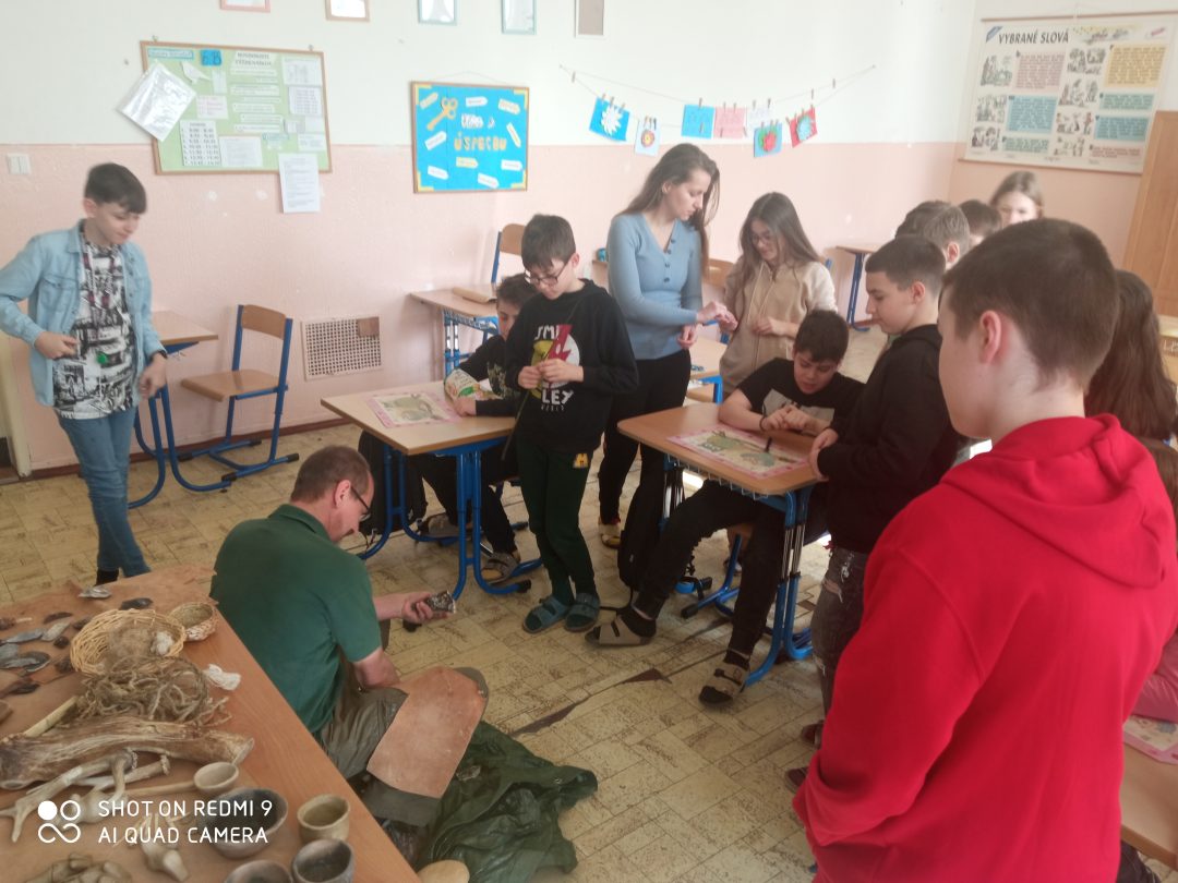 Počas tvorivého dopoludnia si mali žiaci možnosť vyskúšať spriadanie textilného vlákna, výrobu kamenných nástrojov a keramiky, ale aj založenie ohňa a výrobu a hádzanie oštepu.