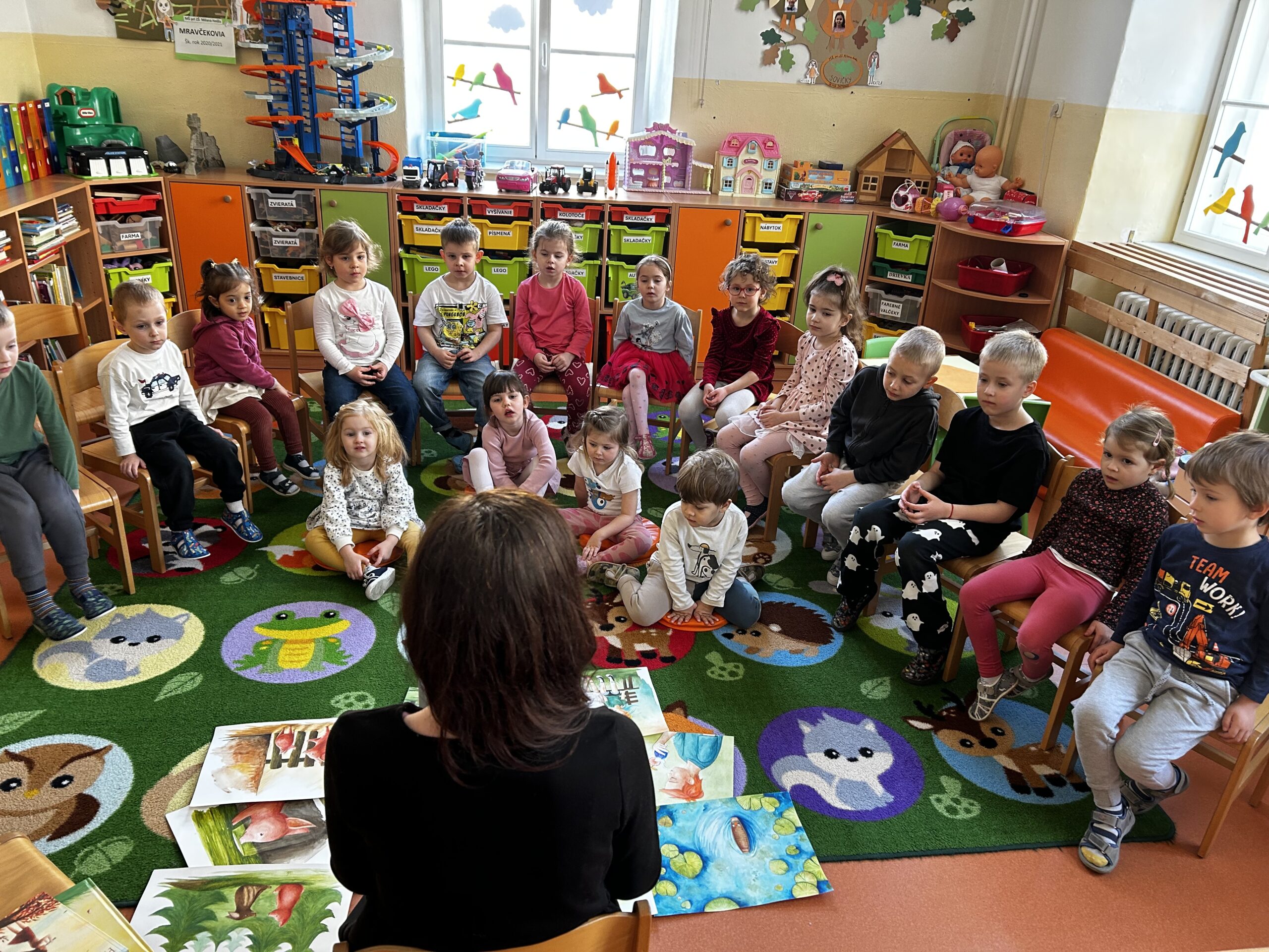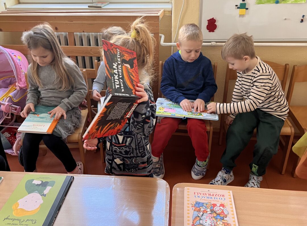 Aj tento rok bol marec v našej materskej škole predovšetkým mesiacom knihy. So Sovičkami i Žabkami sme navštívili Staromestskú knižnicu, kde na nás čakala lektorovaná prehliadka a pútavé čítania. O svojej knižke nám prišla porozprávať pani Lucia Grejtáková, ktorá deti zaujala príbehom O Hnevkovi a Láske. Deti sa tiež veľmi potešili návšteve maminy našej Emily, ktorá deťom predniesla rozprávku Haló, haló, paní Kočko! od Ľuboslava Paľa. Zatiaľ netradičným podujatím v našej materskej škole bola knižná burza, z ktorej si deti formou výmeny priniesli domov knižky. Spolu s deťmi sme však pamätali aj na deti s Downovým syndrómom a na znak spolupatričnosti sa pri príležitosti Svetového dňa Downovho syndrómu zapojili do ponožkovej výzvy.