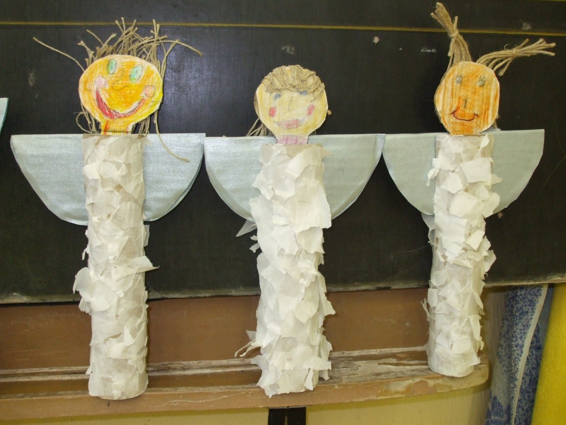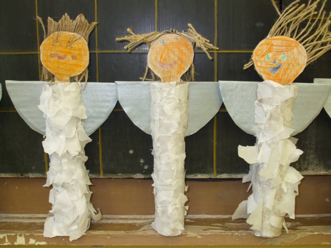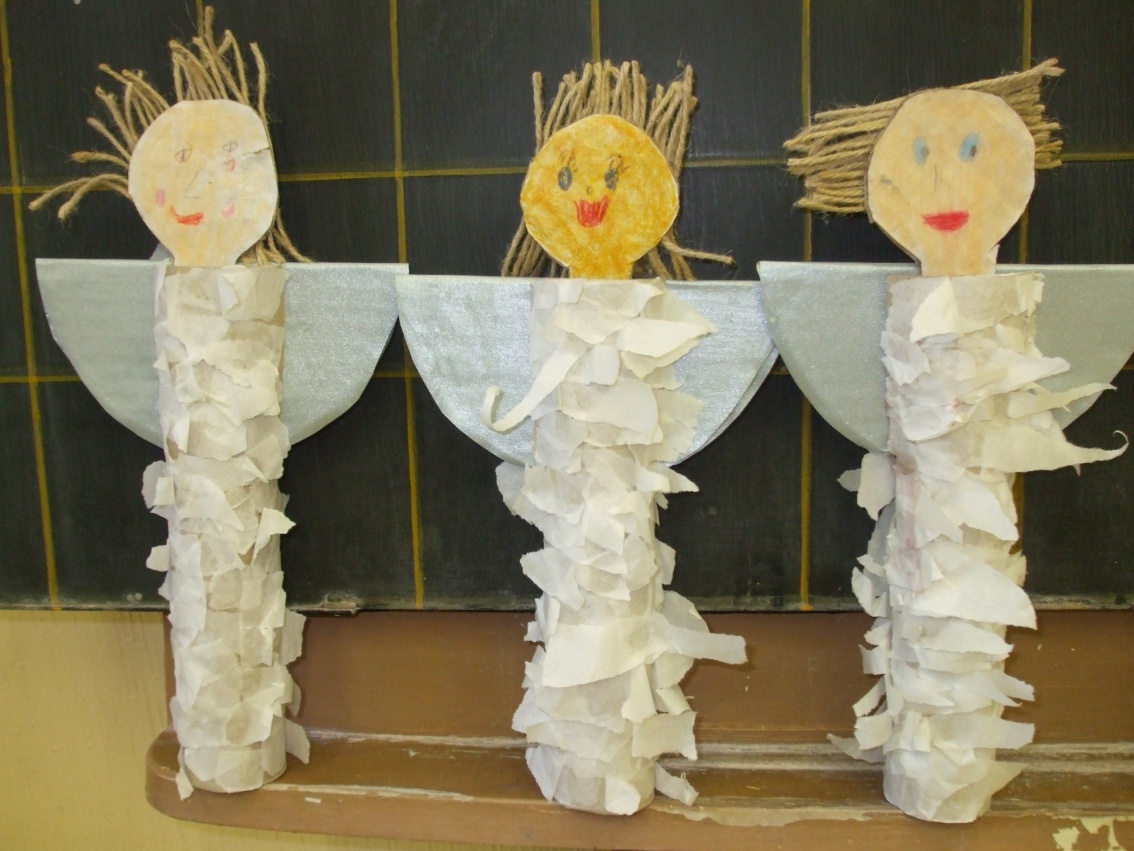 Jeden deň sme hľadali odpoveď na otázku, prečo máme v zime snehovú perinku? Dala nám ju rozprávka Anjelská perinka. Druhý deň to boli farební, šantiví i uletení anjelikovia, ktorých sme si vyčarovali pomocou farbičiek. Tretí deň to boli anjelikovia – strážničkovia pri našom stromčeku. Na ich tvorbu sme potrebovali lepidlo, špagát, papier a hlavne naše šikovné pršteky.