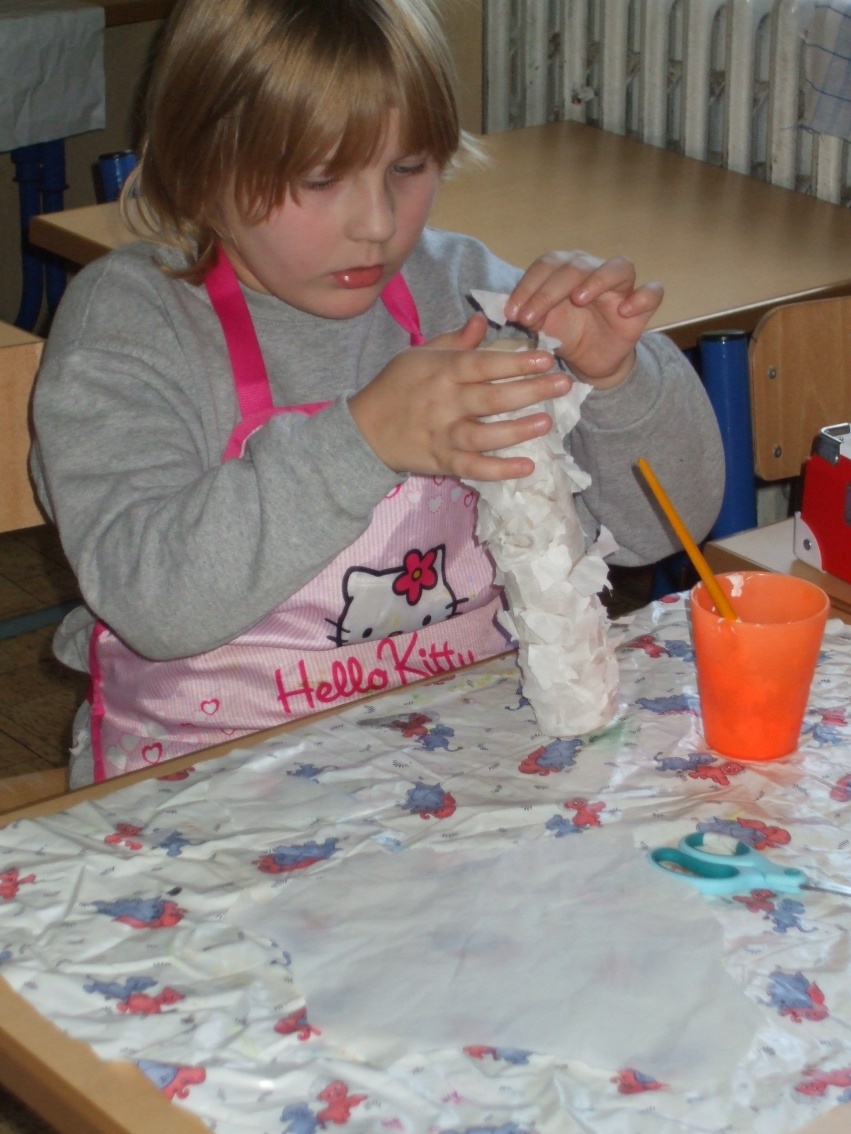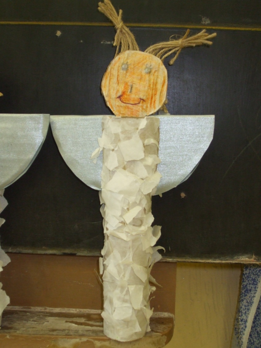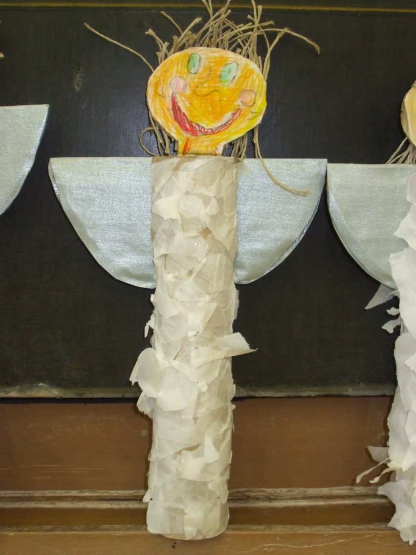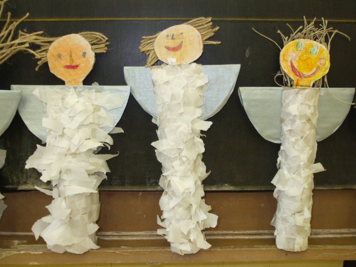 Jeden deň sme hľadali odpoveď na otázku, prečo máme v zime snehovú perinku? Dala nám ju rozprávka Anjelská perinka. Druhý deň to boli farební, šantiví i uletení anjelikovia, ktorých sme si vyčarovali pomocou farbičiek. Tretí deň to boli anjelikovia – strážničkovia pri našom stromčeku. Na ich tvorbu sme potrebovali lepidlo, špagát, papier a hlavne naše šikovné pršteky.