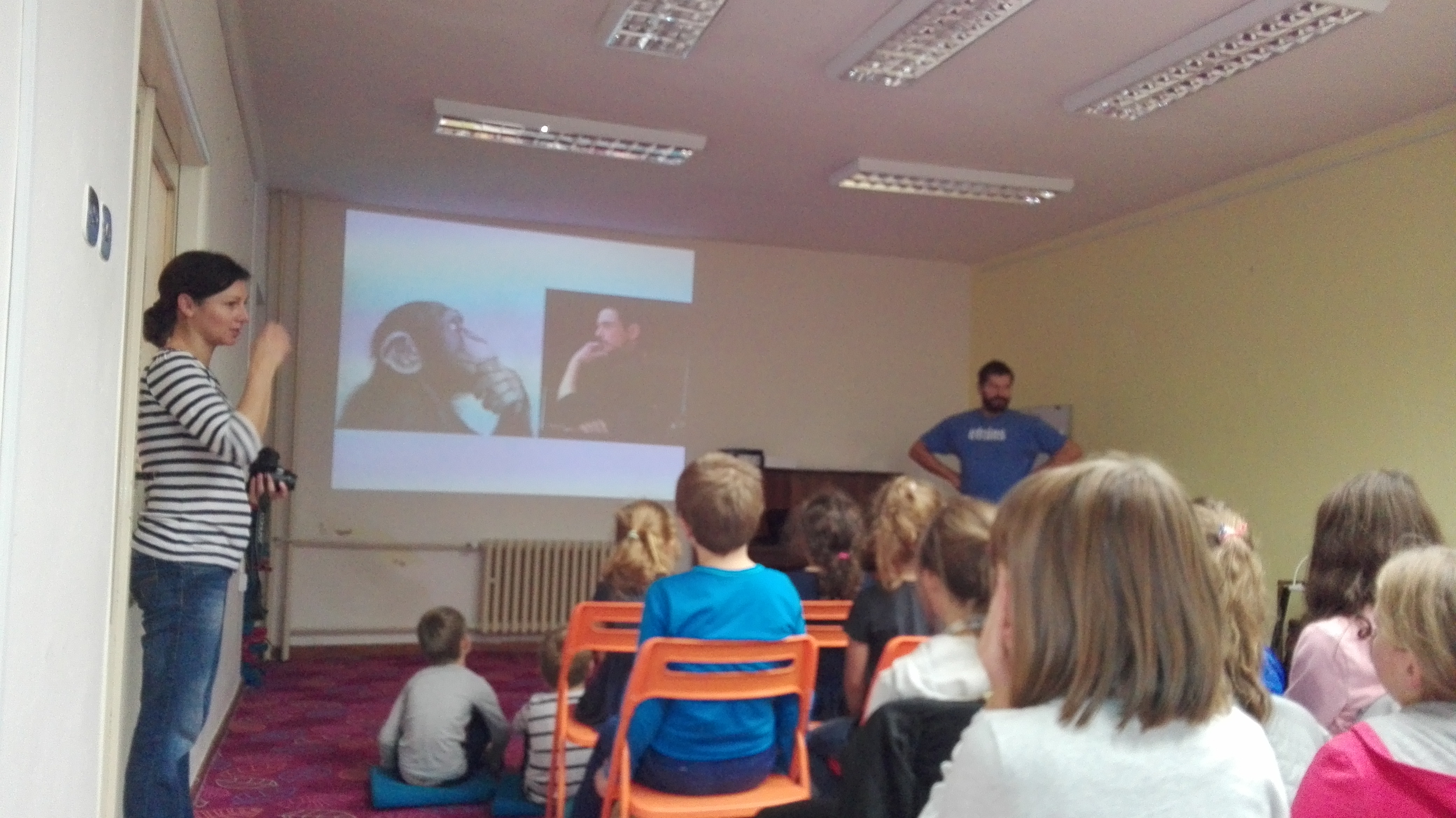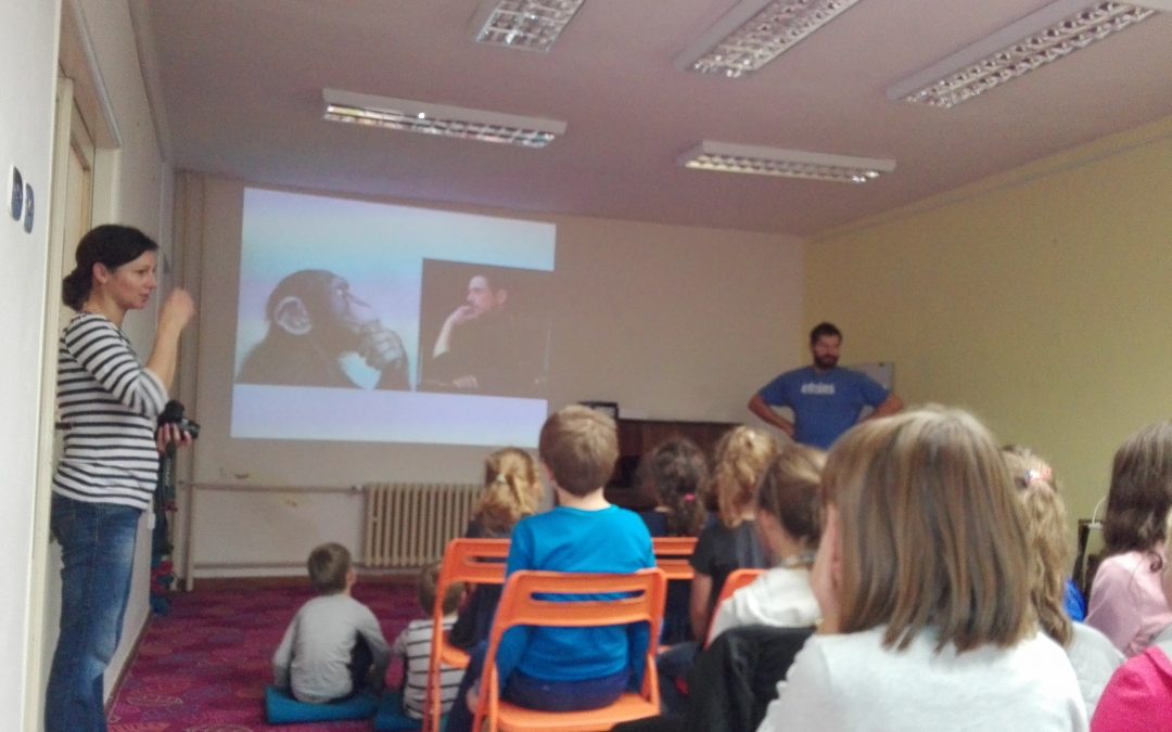 Prváci z I.A a z I.B sa zúčastnili na podujatí v Mestskej knižnici. Bola to prírodovedná prednáška s názvom Inteligencia u zvierat – Rozprávanie o neobyčajných schopnostiach zvierat. Viedol ju zoológ Mgr. Juraj Čačaný, ktorý pracuje ako kurátor v Prírodovednom múzeu v Bratislave a má niekoľkoročné skúsenosti so vzdelávaním detí a mládeže v oblasti spoznávania prírody.