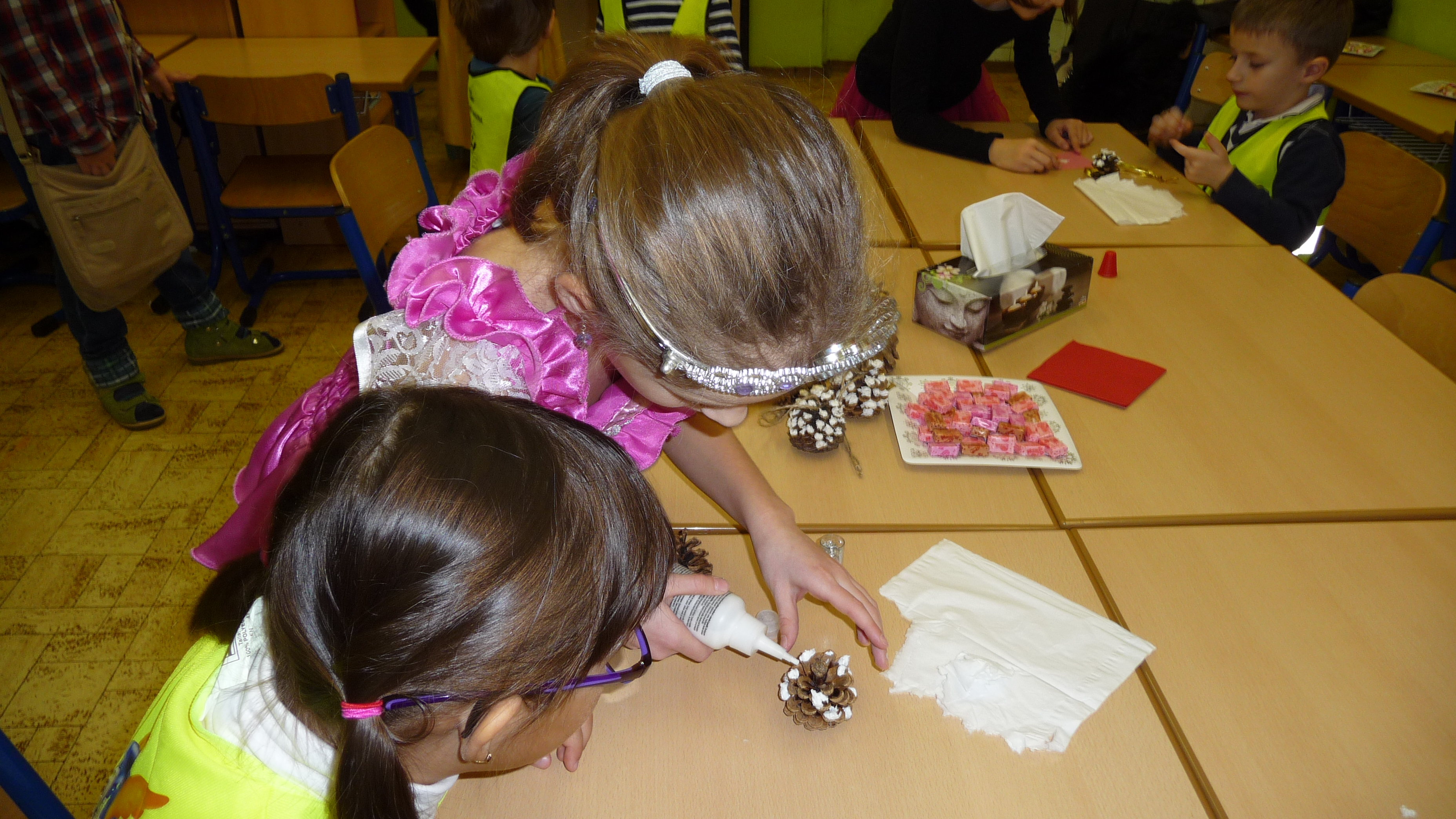 Akoby mávnutím čarovného prútika, sa všetky triedy zmenili na zázračné krajiny a žiaci v nich na rozprávkové bytosti. Malí škôlkári putovali z krajiny do krajiny. Pripravili sme pre nich vianočné tvorivé dielne, vianočné spievanie a čítanie. Všetci sme sa veľmi dobre cítili v priateľskej atmosfére, ktorú sme spoločne vytvorili. Deti z materských škôl si domov odniesli veľa vlastnoručne vyrobených výrobkov. Pri rozlúčke sme sa s pani učiteľkami malých škôlkárov dohodli, že podobných stretnutí pripravíme v budúcnosti viac.