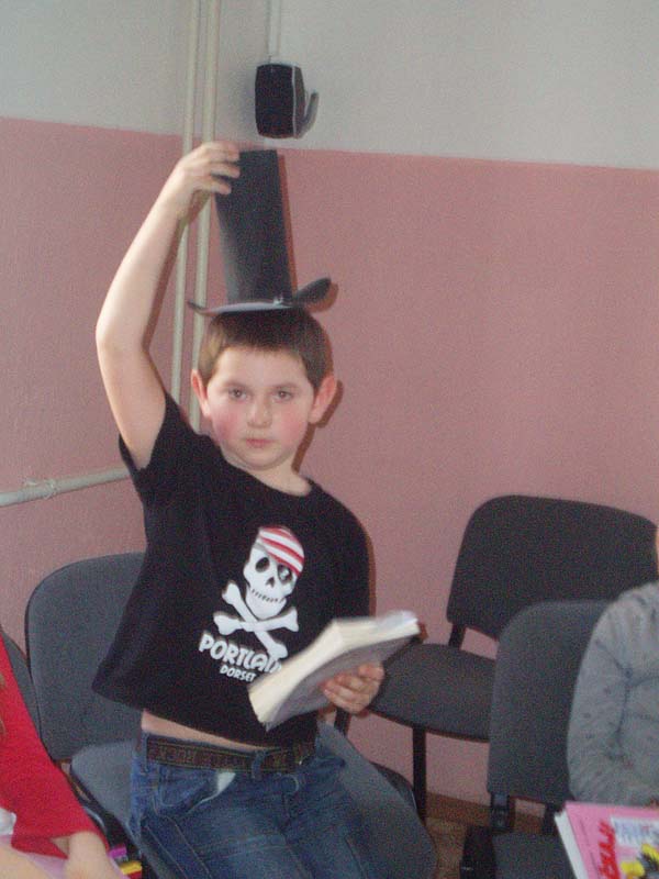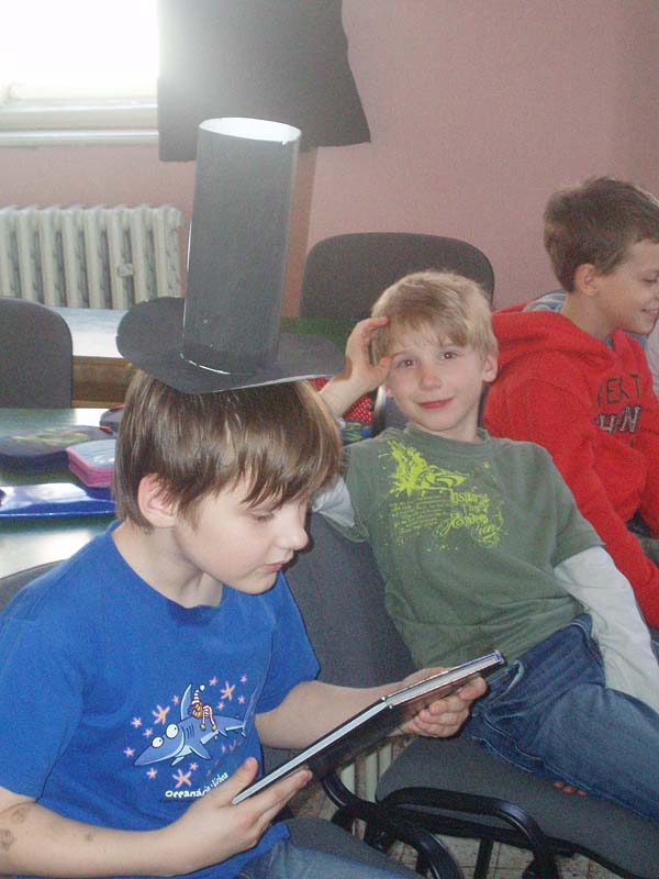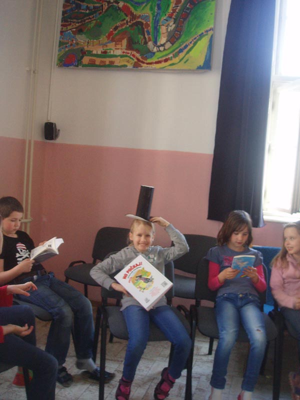 Deti zo školského klubu si v rámci mesiaca knihy priniesli do klubu svoju obľúbenú knihu a vyrobili si rozprávkový klobúčik. Ten, kto ho dostal na hlavu, prečítal nahlas úryvok spolužiakom. Zázračný klobúčik pričaroval deťom dobrú náladu a úsmev na tvári.