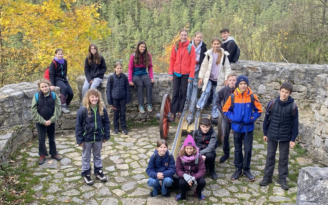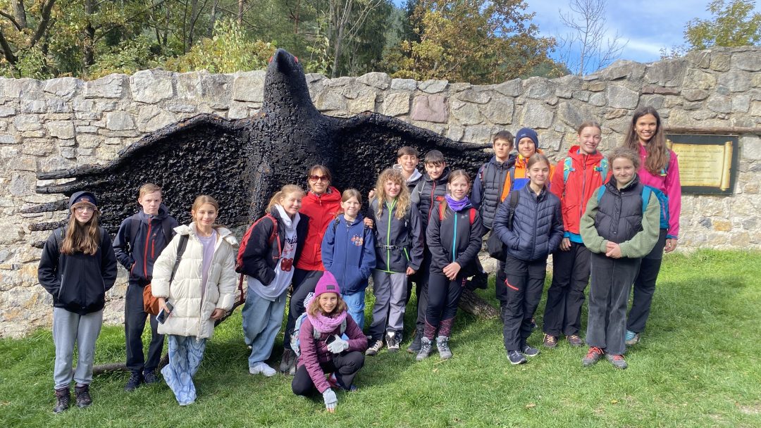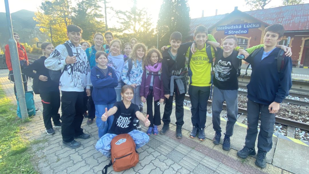 Počas prvého výletu nášho turistického krúžku v tomto školskom roku nás po celý deň sprevádzalo slnečné jesenné počasie. Cieľom výletu bol hrad Strečno a jeho okolie. Na hrade sme absolvovali prehliadku, počas ktorej nám pán sprievodca porozprával mnohé zaujímavosti z histórie hradu. Potom už naše kroky smerovali na rozhľadňu Špicák, ktorá sa nachádza v nadmorskej výške 620m. Strmý výstup na rozhľadňu nám dal zabrať, ale na jeho konci nás potešil panoramatický výhľad na Žilinskú kotlinu, hrebeň Malej Fatry, Strážovské vrchy ako aj unikátny výhľad až na 4 hrady – Budatín, Lietava, Strečno a Starý hrad. Z rozhľadne sme pokračovali k zaujímavému skalnému výtvoru – 7 metrov vysokému Kojšovskému budzogáňu v lokalite Havranie skaly.