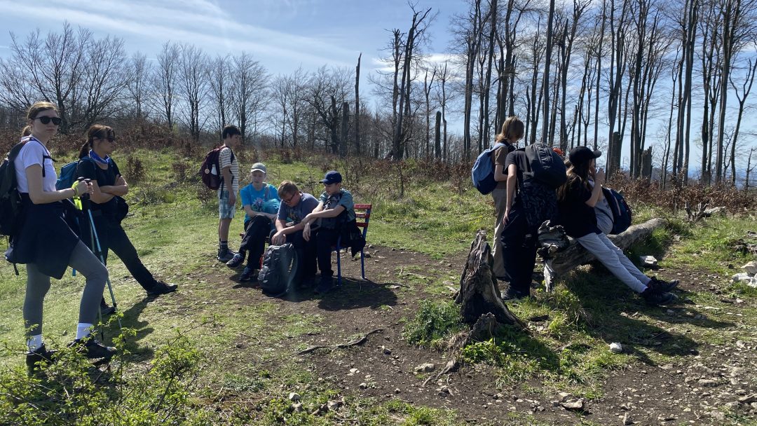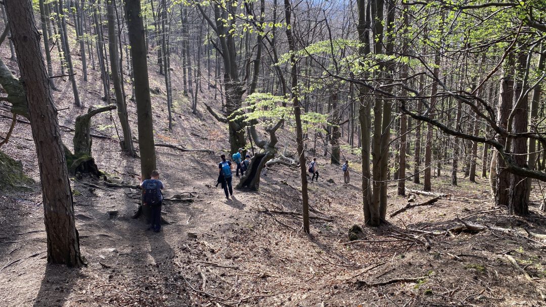 V apríli sme s turistickým krúžkom po čase opätovne navštívili Záhorie. Z Plaveckého Mikuláša sme vystúpili na Jeleniu skalu (475m), kde sme si opiekli prinesené dobroty. Pokračovali sme na Jarabinku, Mon Repos a ďalej až na malokarpatský vrchol Čierna skala (662 m) s nádherným výhľadom na okolité vrchy a lesy Malých Karpát. V závere našej túry sme prešli národnou prírodnou rezerváciou Kršlenica späť do Plaveckého Mikuláša. Prešli sme 14 km s väčším prevýšením.