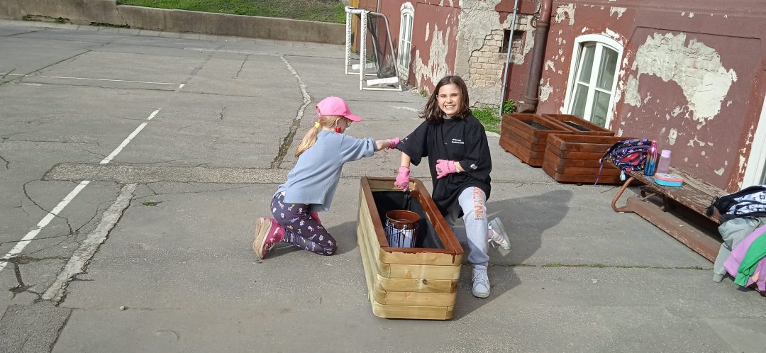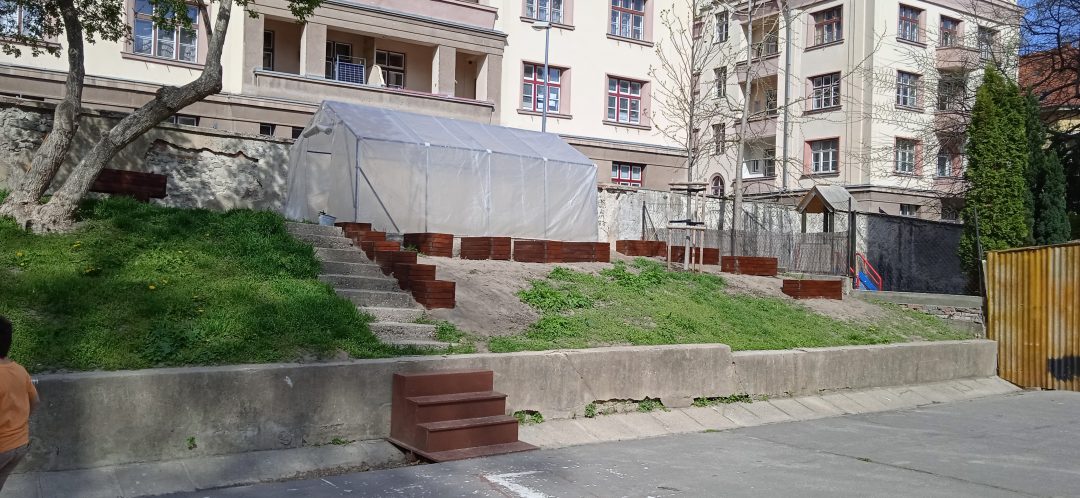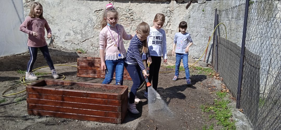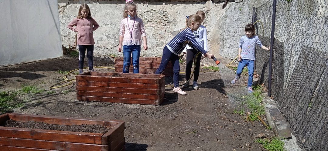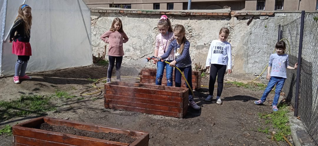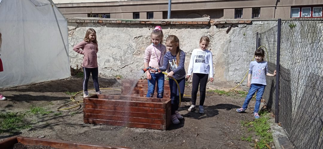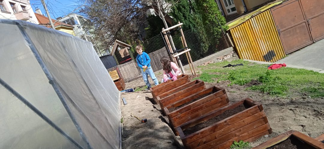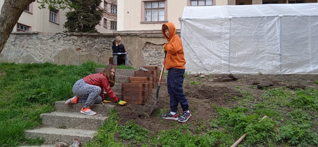Vďaka projektu Deti pre Bratislavu sa záhradka na 1. stupni rozširuje. Štvrtáci opäť uspeli a získali financie na realizáciu svojho zámeru. V minulom roku na školskom dvore vyrástol fóliovník a domček na hračky pre škôlkarov. Tento rok si deti vyhrnuli rukávy a poriadne sa do toho opreli, čoho výsledkom sú krásne záhony, v ktorých pestujú drobné ovocie, hrášok, reďkovku či kvety. Všetci sme nesmierne radi, že môžeme pestovať drobné a najmä chutné ovocie a zeleninu v centre Starého Mesta.
