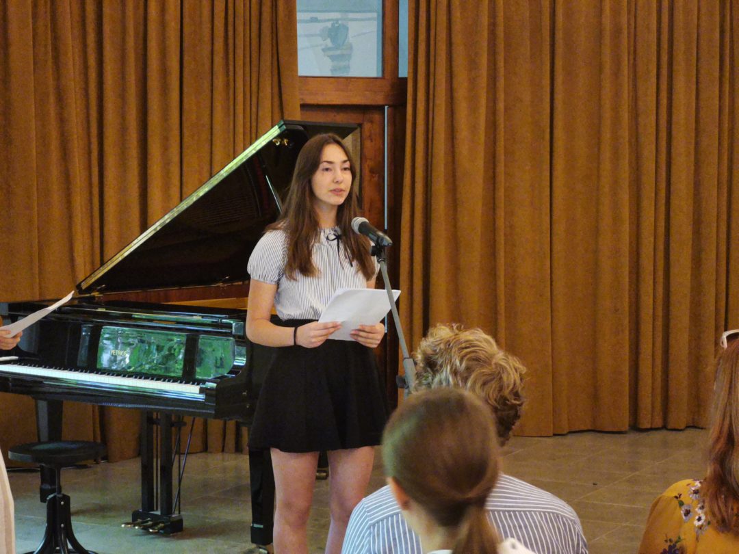 O program sa už tradične postarali žiaci Základnej školy Milana Hodžu. Žiaci sa predstavili pri čítaní úryvkov z ocenených prác. V hudobných číslach sa hrou na klavíri predstavili Kristína Kralovičová zo 7.B a David Pašš z 5.B, hrou na akordeón Yehor Bilinskij z 8.A triedy.