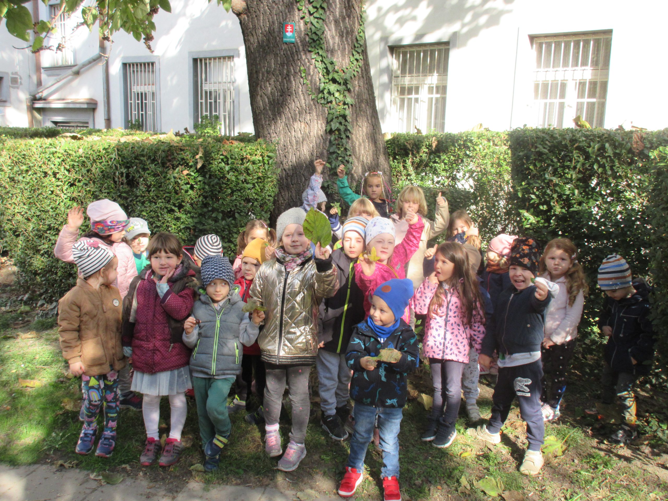 Naši škôlkari sa počas troch októbrových dní stali turistami vo vlastnom meste, kedy spoznávali niektoré chránené stromy našej mestskej časti. Vybrali sa po stopách paulovnie na Škarniclovej ulici, lipy na Partizánskej ulici, ginka na Godrovej ulici a vzdialenejšieho jaseňa na Rudnayovom námestí. Spoznali, že nie každý list a kôra stromu sú rovnaké, či zaujímavosť, že ginko rástlo ešte za pradávnych čias. Na záver boli odmenení papierovou medailou s motívom listu lipy.