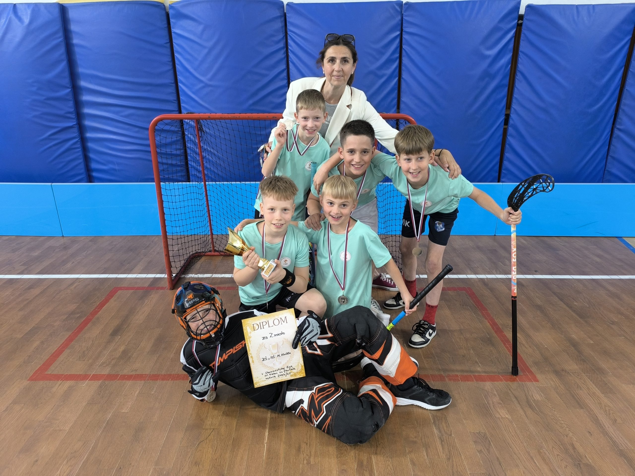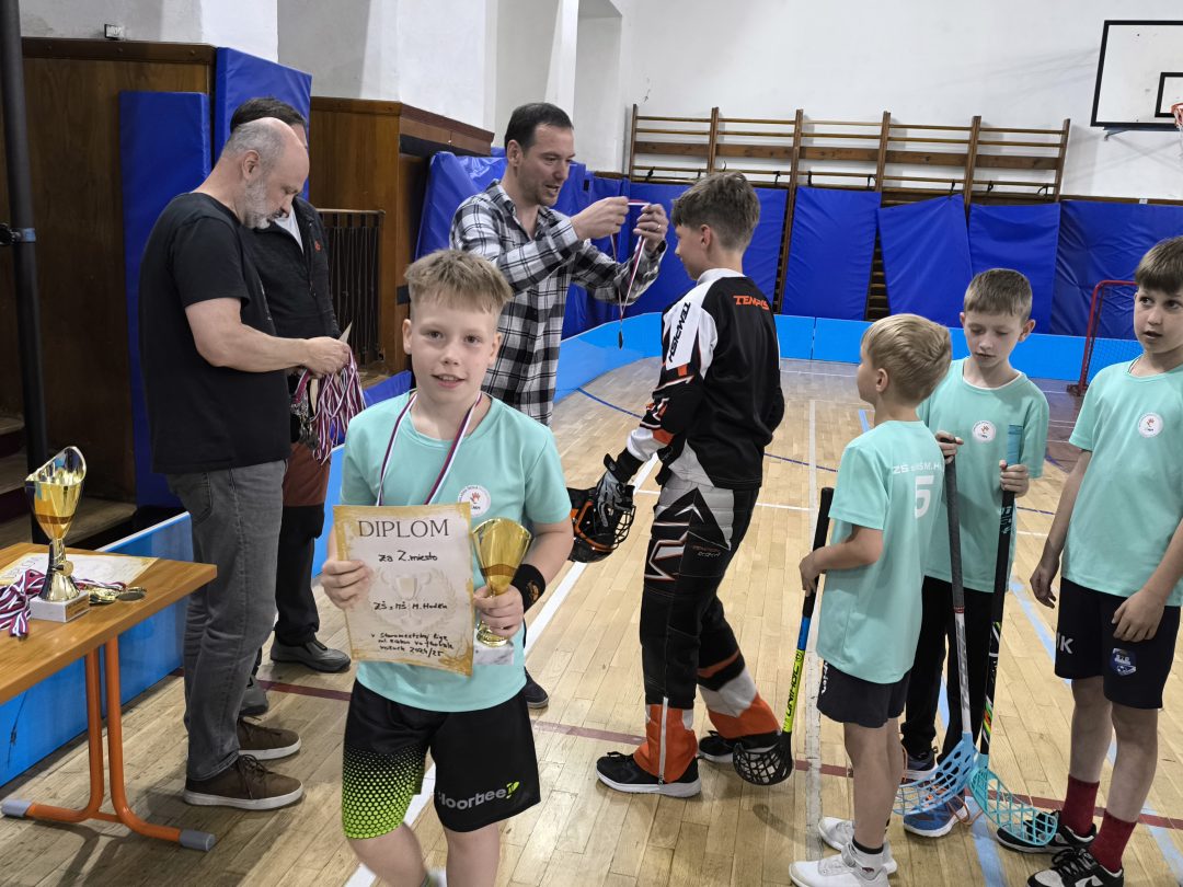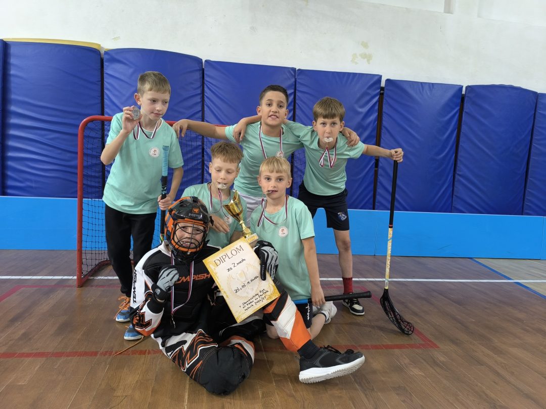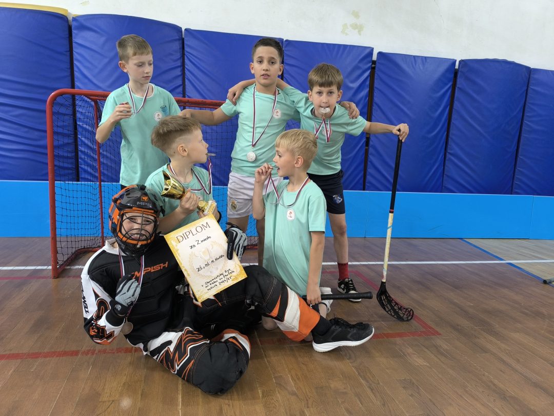 Aj v tomto školskom roku sme sa zapojili do športovej súťaže Staromestská liga vo florbale. Chlapci počas roka jedenkrát mesačne chodili do ZŠ Vazovova, kde sa turnaj uskutočňoval. Hrali zápasy so žiakmi staromestských škôl, ktoré sa na turnaj prihlásili. Darilo sa im veľmi dobre a umiestnili sa už druhýkrát na krásnom 2. mieste. V stredu, 21.05.2025, sa konal Challenge day, kde si všetci súperi zahrali priateľské zápasy a organizátori ocenili víťazné družstvá. Chlapci získali pohár, ktorý pribudne do našej školskej zbierky a medaile, ktoré im budú pripomínať ich vynaložené úsilie a nadšenie pre krásny tímový šport, akým florbal je.