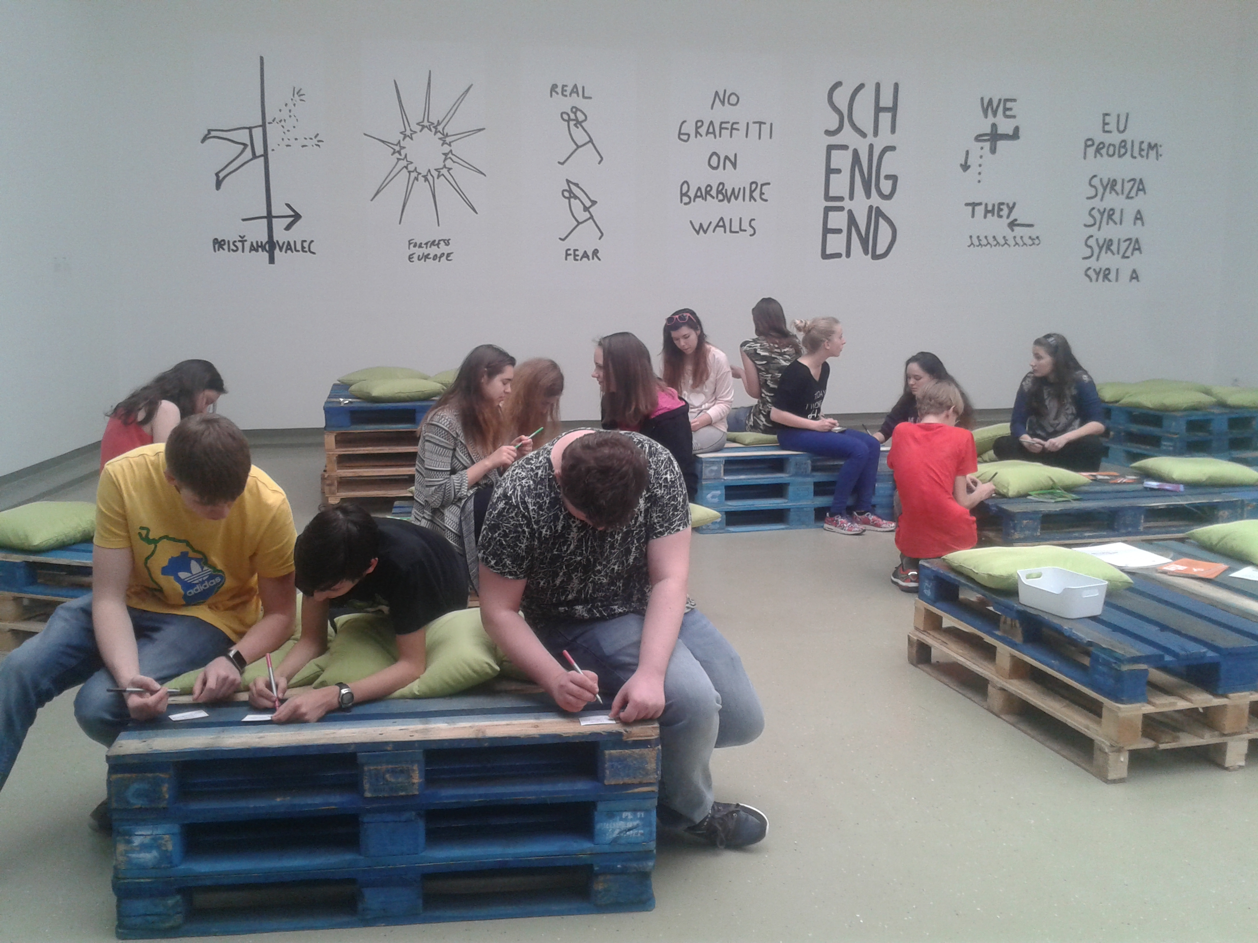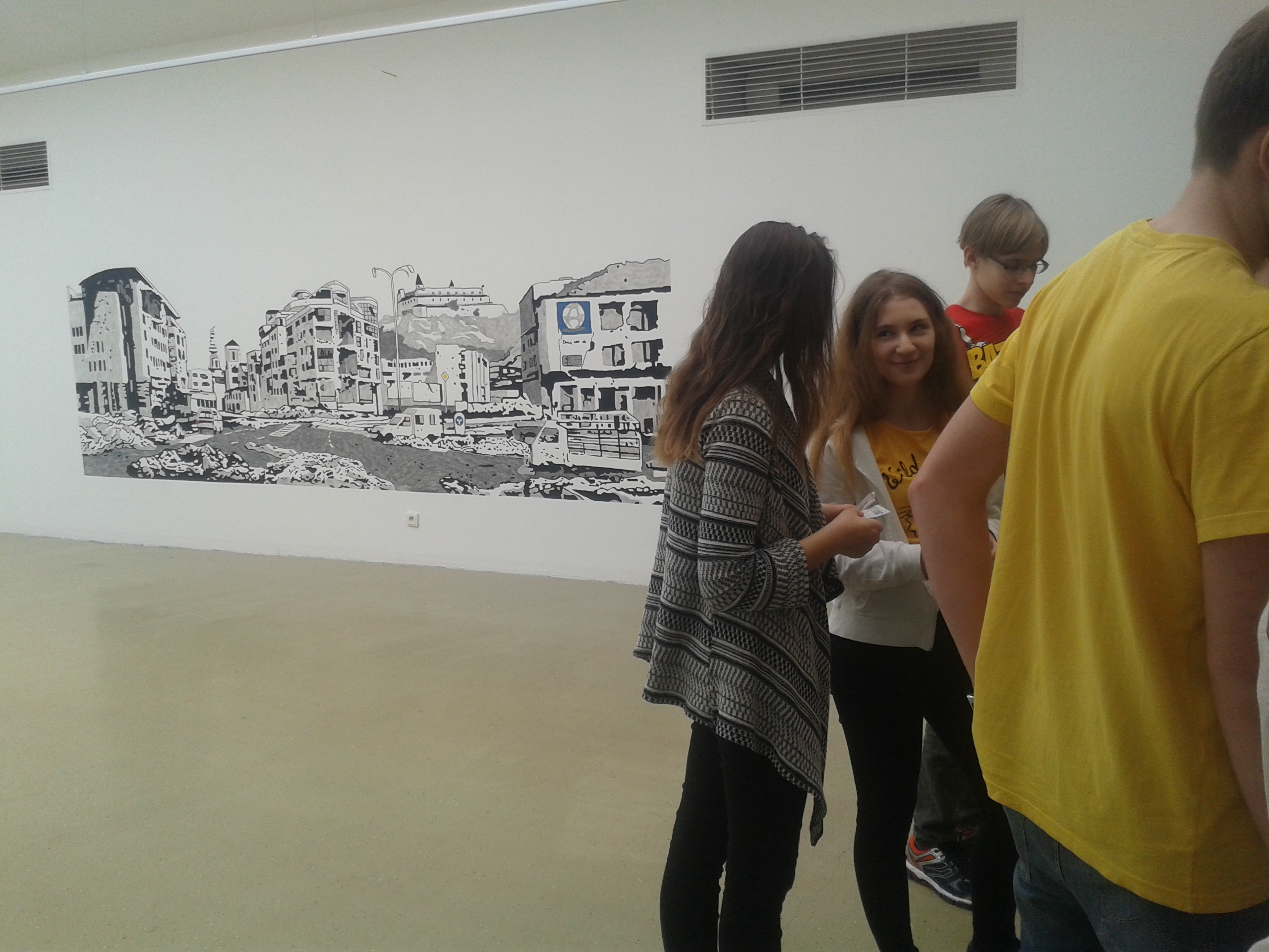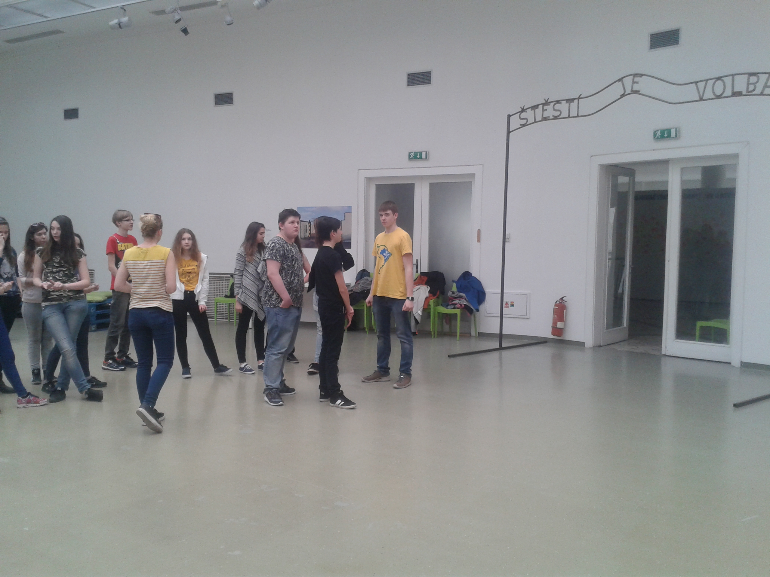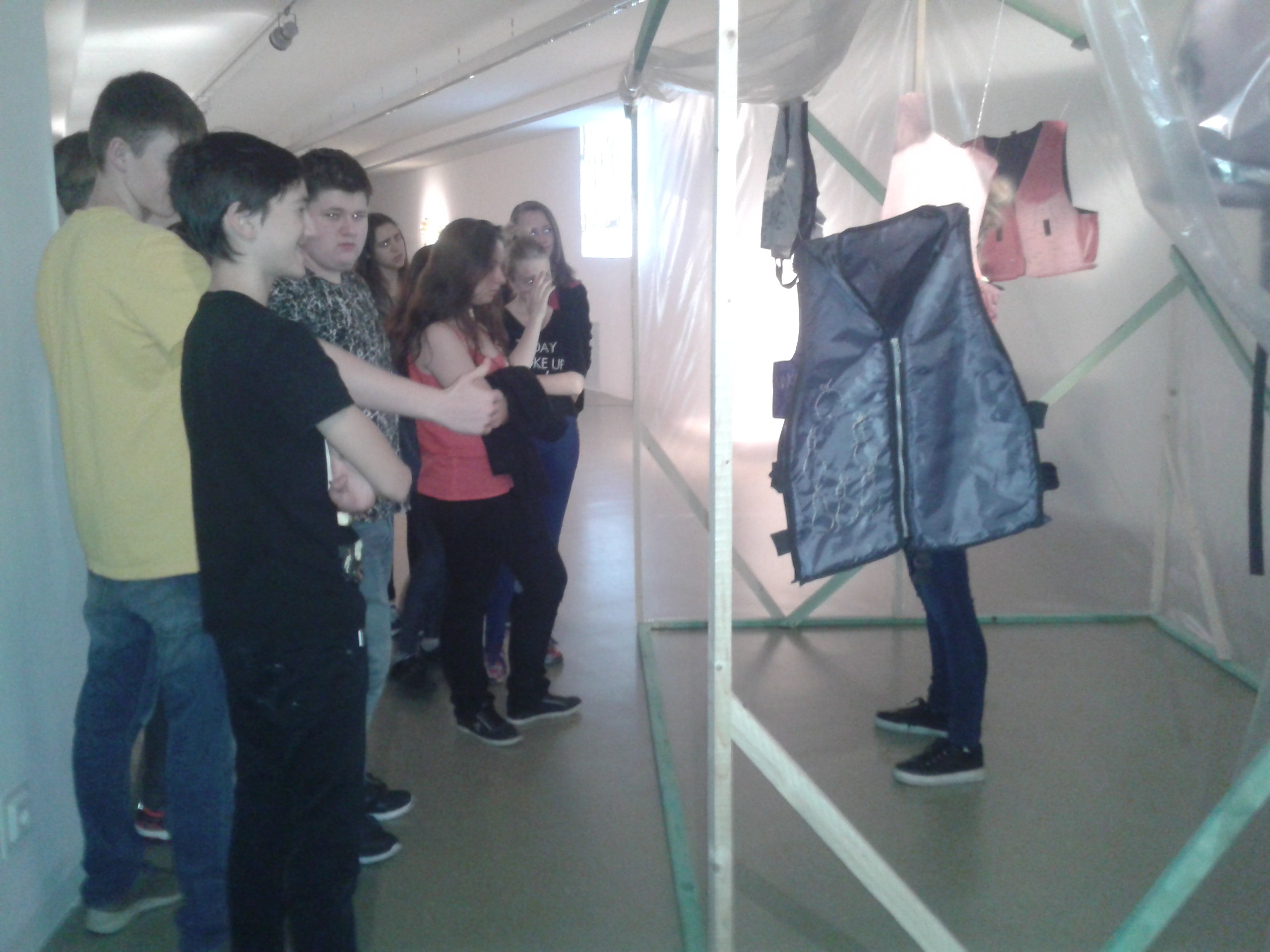 Na výstave žiaci zažili situáciu, pri ktorej niektorí na základe im neznámych dôvodov neboli vpustení sa pozrieť za bránu. Bol to zámer autora diela.Za bránou bolo niečo, čo si mohli predstaviť len na základe reakcií spolužiakov, ktoré však iba počuli. Neskôr ich tam samozrejme pustili. Súčasťou výstavy bol aj vlakový kontajner, určený na prepravu uhlia, ale v ktorom často cestujú nelegálne migranti. Žiaci, ktorí chceli, si vyskúšali byť zatvorení zopár minút v tomto tmavom stiesnenom priestore bez okien sprevádzanom reálnymi zvukmi vlaku v spoločnosti neznámych „figurín“. Emočne ich zasiahol aj obraz zbombardovanej Bratislavy.
