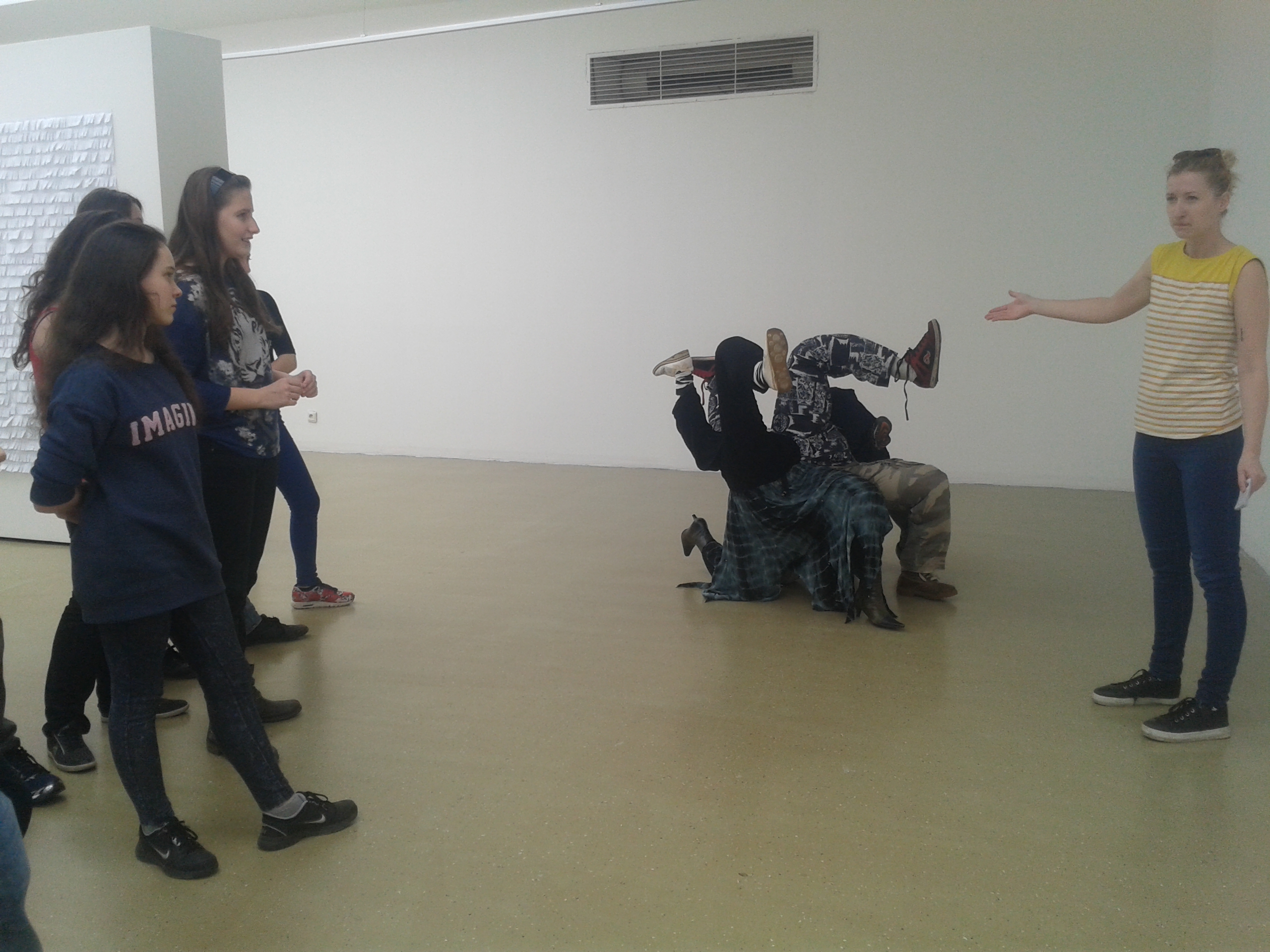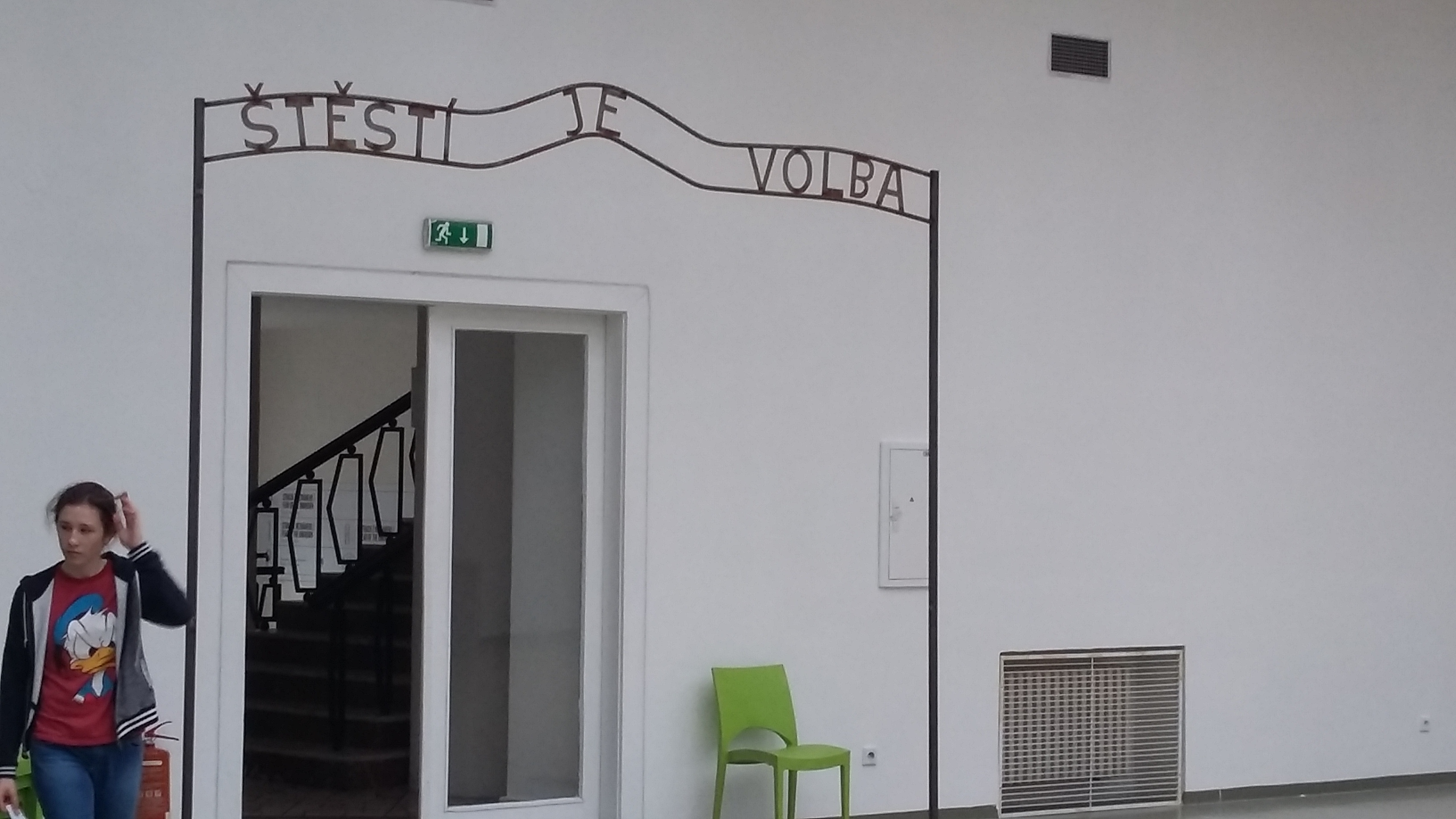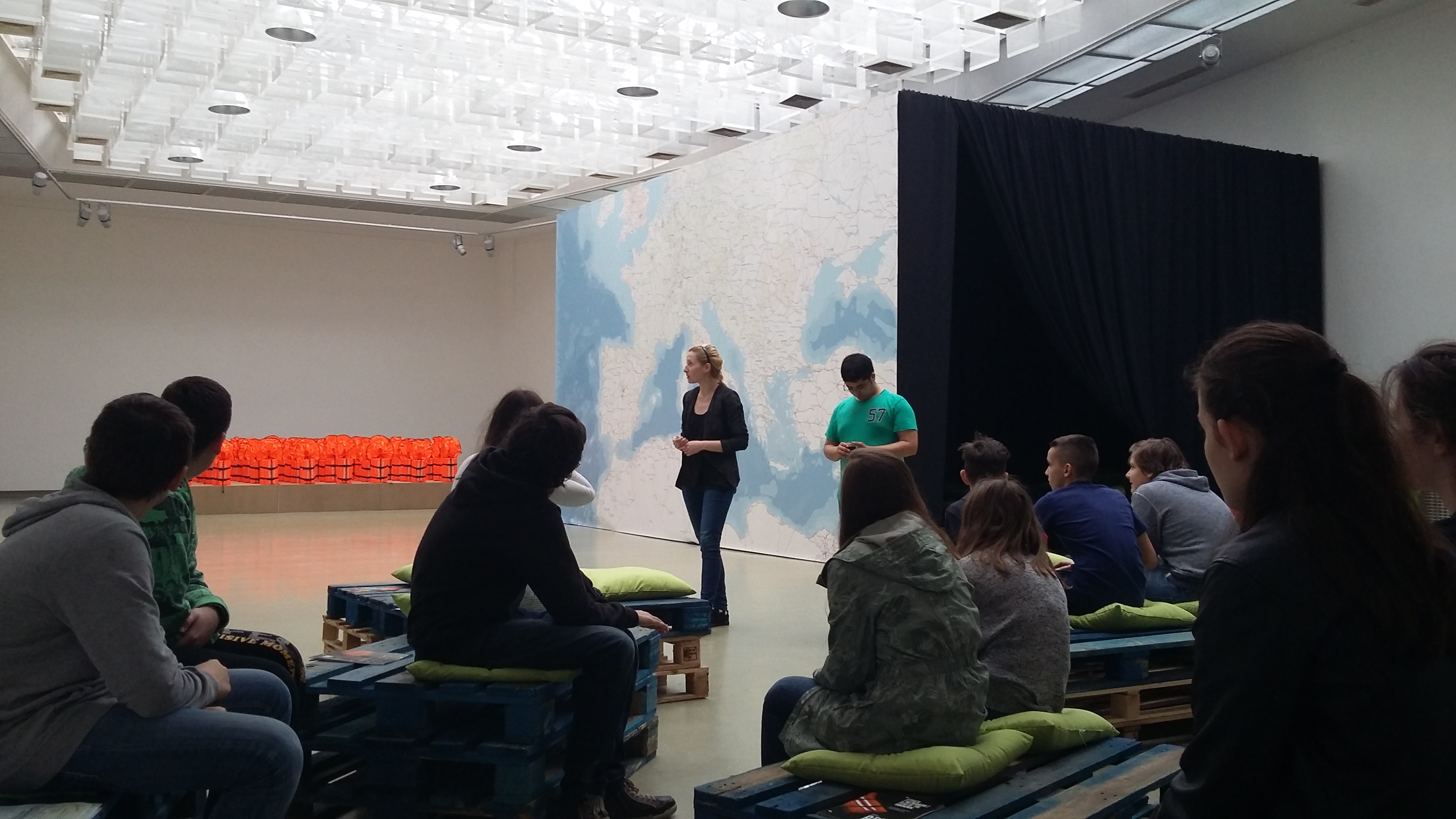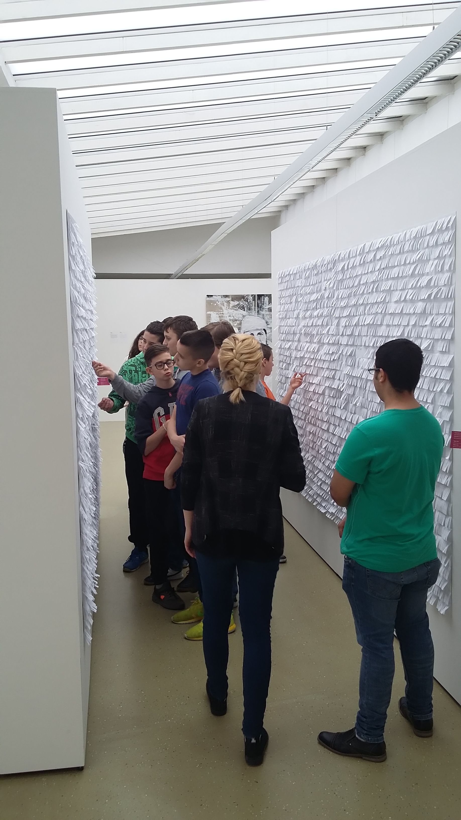 Na výstave žiaci zažili situáciu, pri ktorej niektorí na základe im neznámych dôvodov neboli vpustení sa pozrieť za bránu. Bol to zámer autora diela.Za bránou bolo niečo, čo si mohli predstaviť len na základe reakcií spolužiakov, ktoré však iba počuli. Neskôr ich tam samozrejme pustili. Súčasťou výstavy bol aj vlakový kontajner, určený na prepravu uhlia, ale v ktorom často cestujú nelegálne migranti. Žiaci, ktorí chceli, si vyskúšali byť zatvorení zopár minút v tomto tmavom stiesnenom priestore bez okien sprevádzanom reálnymi zvukmi vlaku v spoločnosti neznámych „figurín“. Emočne ich zasiahol aj obraz zbombardovanej Bratislavy.