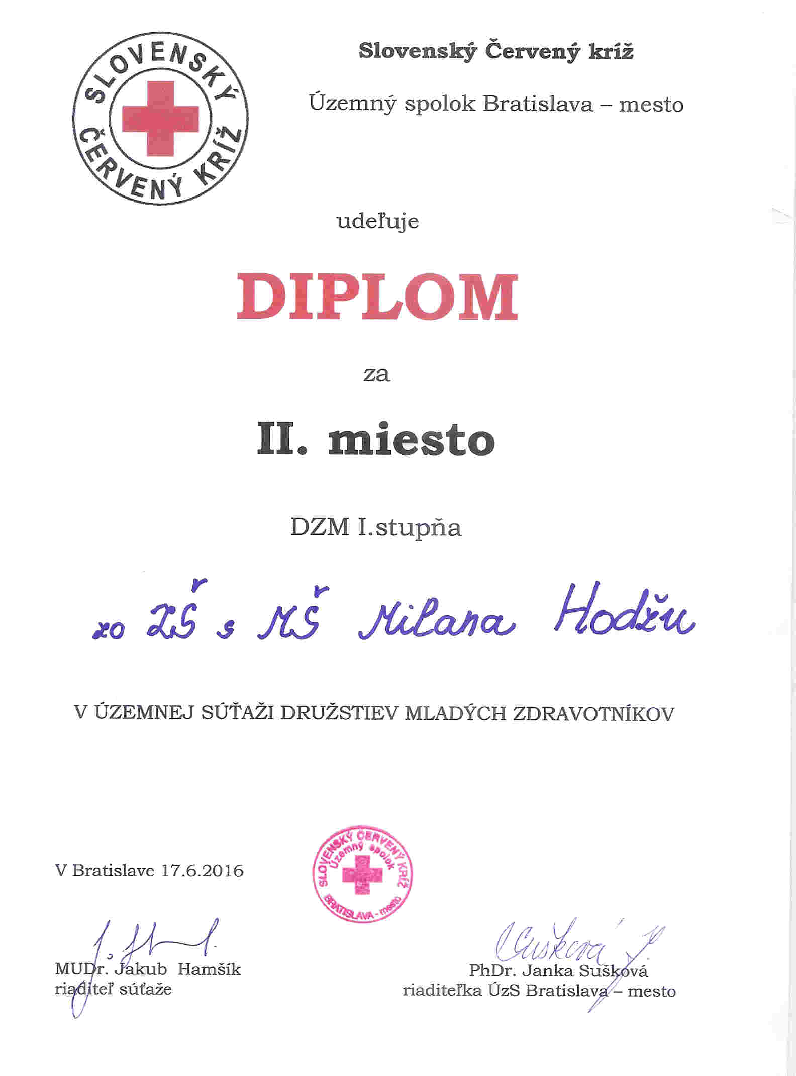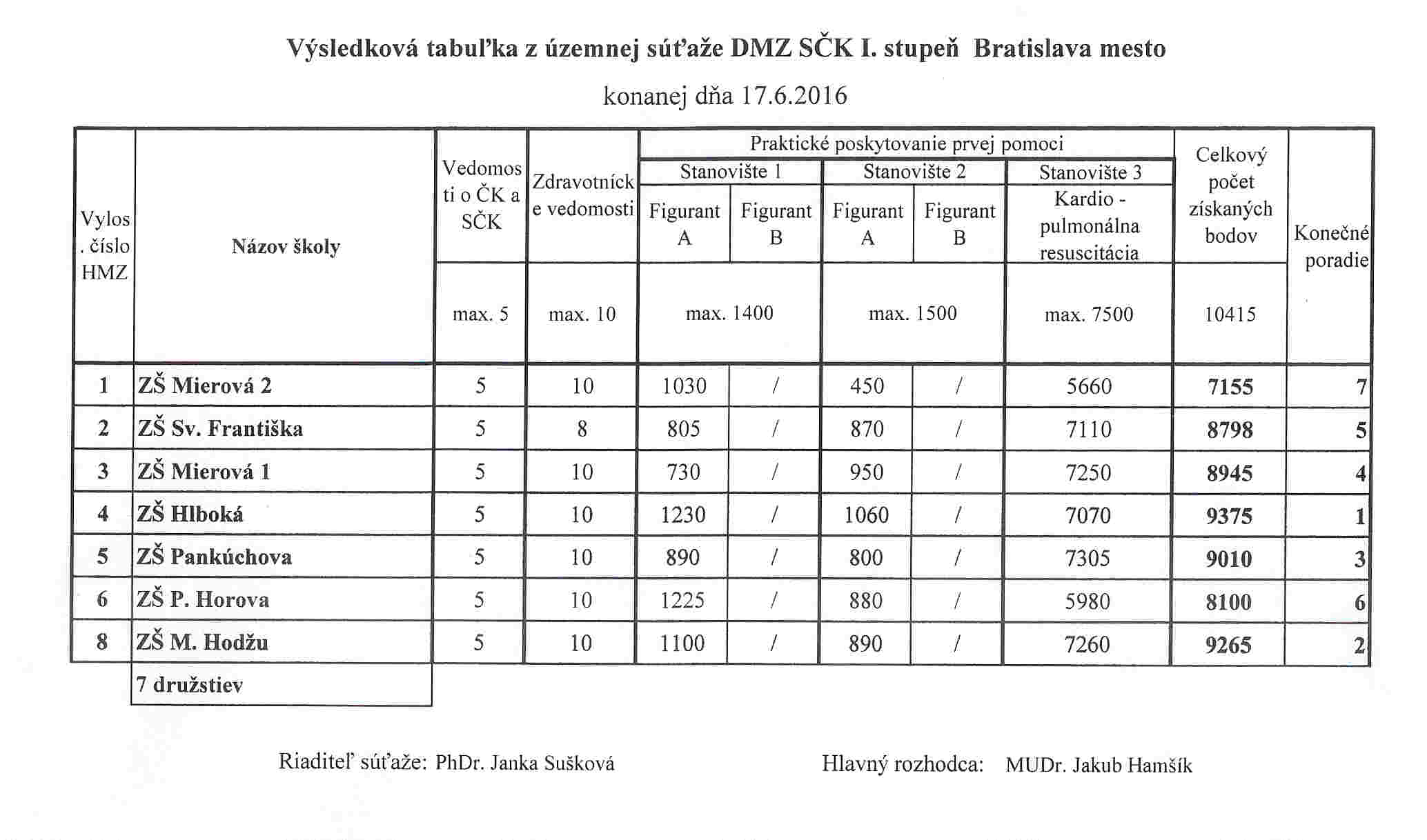 V piatok, 17.6. 2016, sa žiaci našej školy zúčastnili na územnej súťaži družstiev mladých zdravotníkov Bratislava-mesto, ktorú každoročne organizuje SČK.