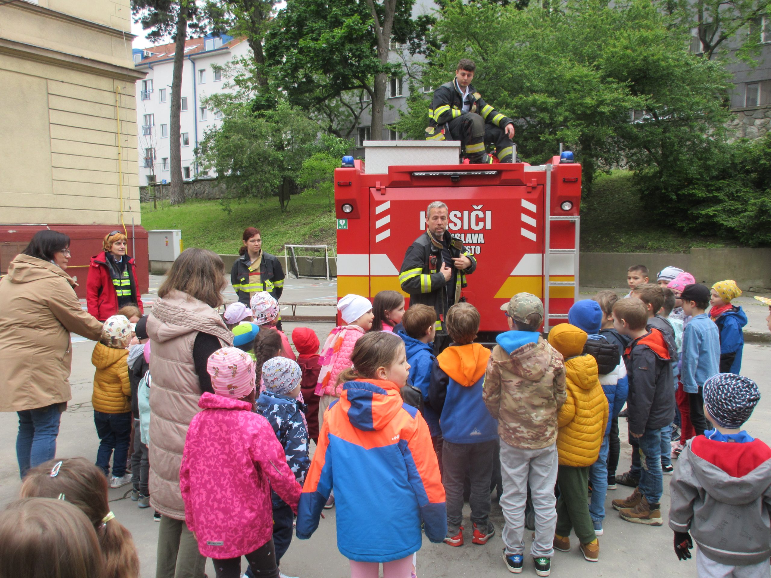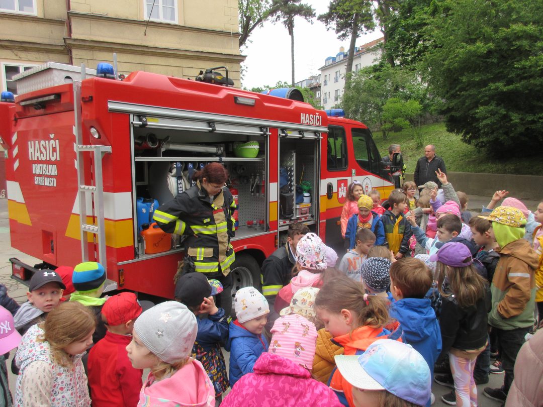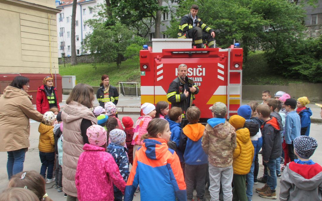 Dňa 19. mája sme na školskom dvore, spolu s deťmi a pani učiteľkami z 1. stupňa, privítali vzácnu návštevu. Zavítali k nám hasiči, ktorí nám zaujímavo porozprávali o svojej práci a ukázali, čo pri nej používajú.