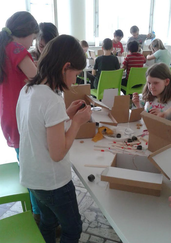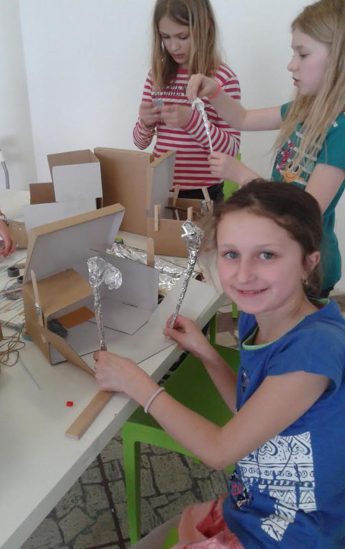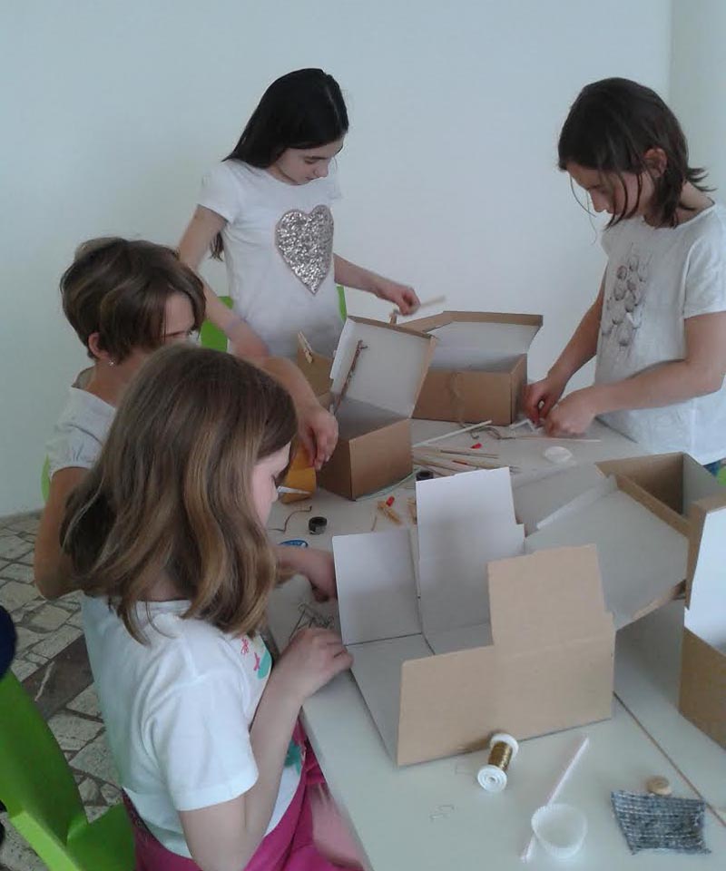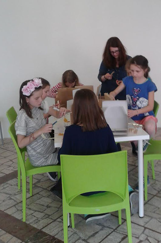 Pripravili si pre ne program zameraný na diela vytvorené z každodenných, aj nevšedných, prírodných a človekom vytvorených materiálov a predmetov. Skúmali, ako veci fungujú a z čoho sú vytvorené. Vyskúšali si prácu s rôznymi materiálmi.