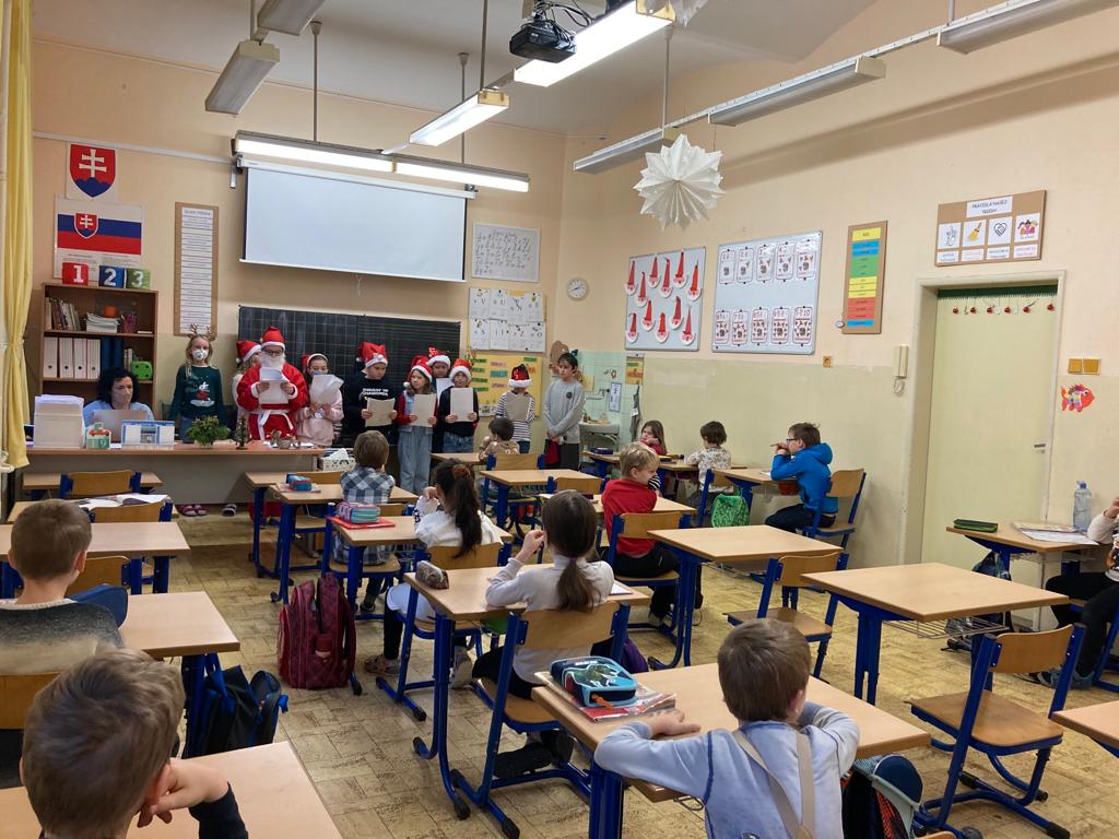V predvianočnom čase žiaci 4.A čítali prvákom z knižky Príbeh Santa Clausa. Deti sa dozvedeli skutočný príbeh o Santovi. Veľkí spolužiaci  ich povzbudili v úsilí naučiť sa všetky písmenka a neskôr aj slová a vety, aby si čo najskôr prečítali túto knižku aj ony.
