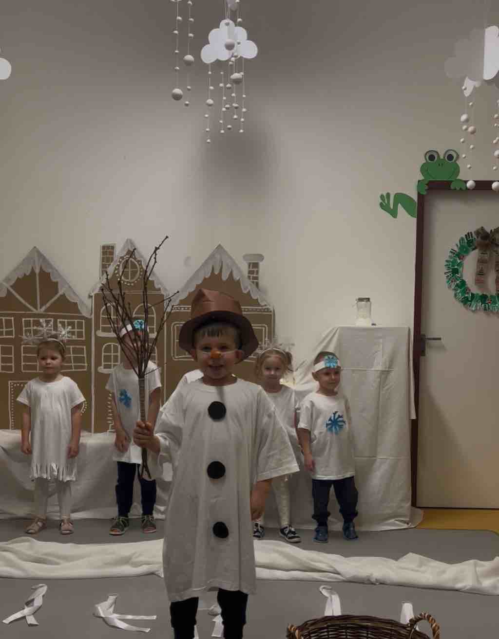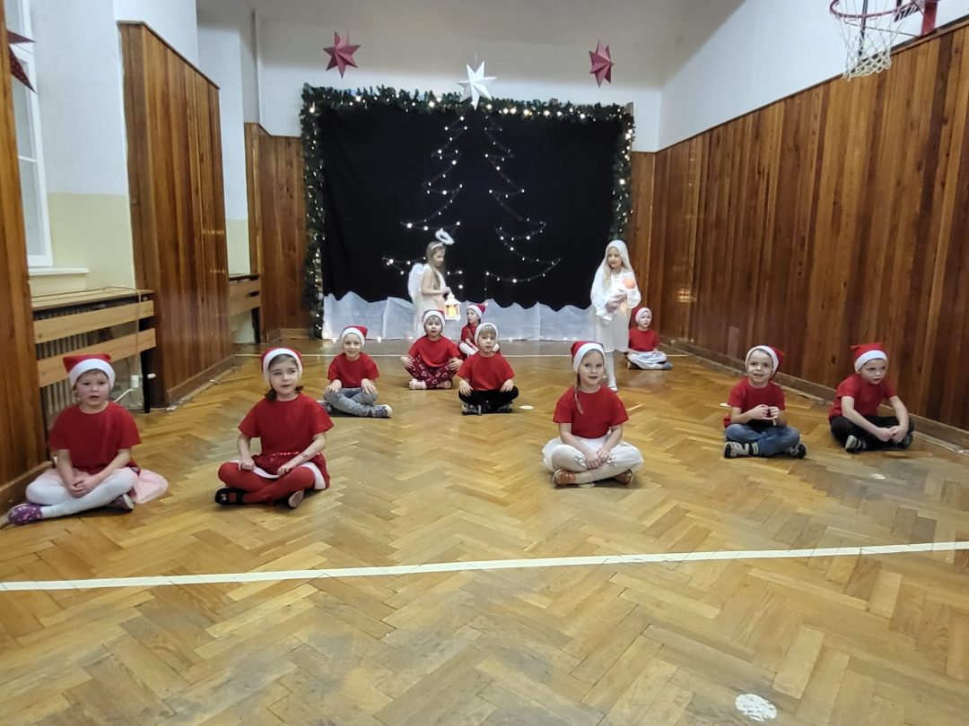 Počas besiedky mladších detí sme sa preniesli do zasneženej zimnej krajiny plnej básničiek, pesničiek a scénky. Posledná časť vystúpenia patrila piesni Tichá noc, ktorú sme si pri zhasnutých svetlách, iba za svetla lampášikov, zaspievali všetci spoločne. Sovičky roztancovali na vianočné melódie všetkých hostí v telocvični, čím vytvorili nezabudnuteľnú sviatočnú atmosféru. Záver besiedok patril pohosteniu a radosti z vianočnej fotografie, ktorú si deti odniesli domov na pamiatku.