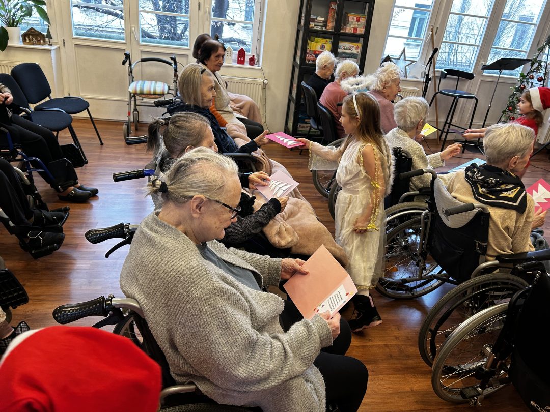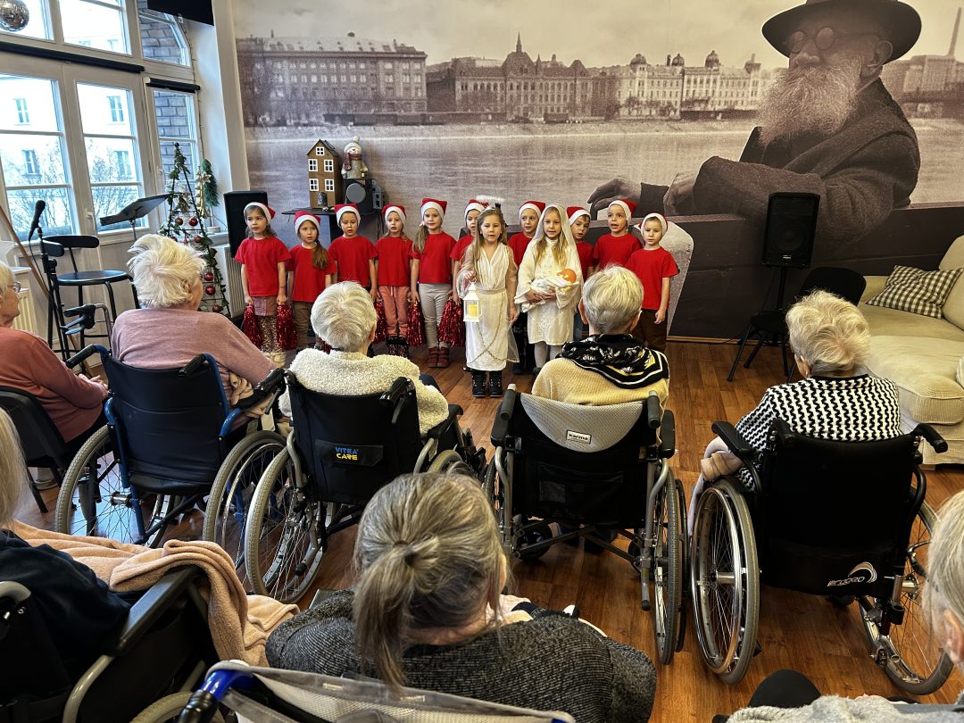 Starší škôlkari priniesli sviatočnú náladu tiež starkým, ktorých navštívili v neďalekom zariadení a potešili ich vystúpením a krásnou Vianočnou pohľadnicou.